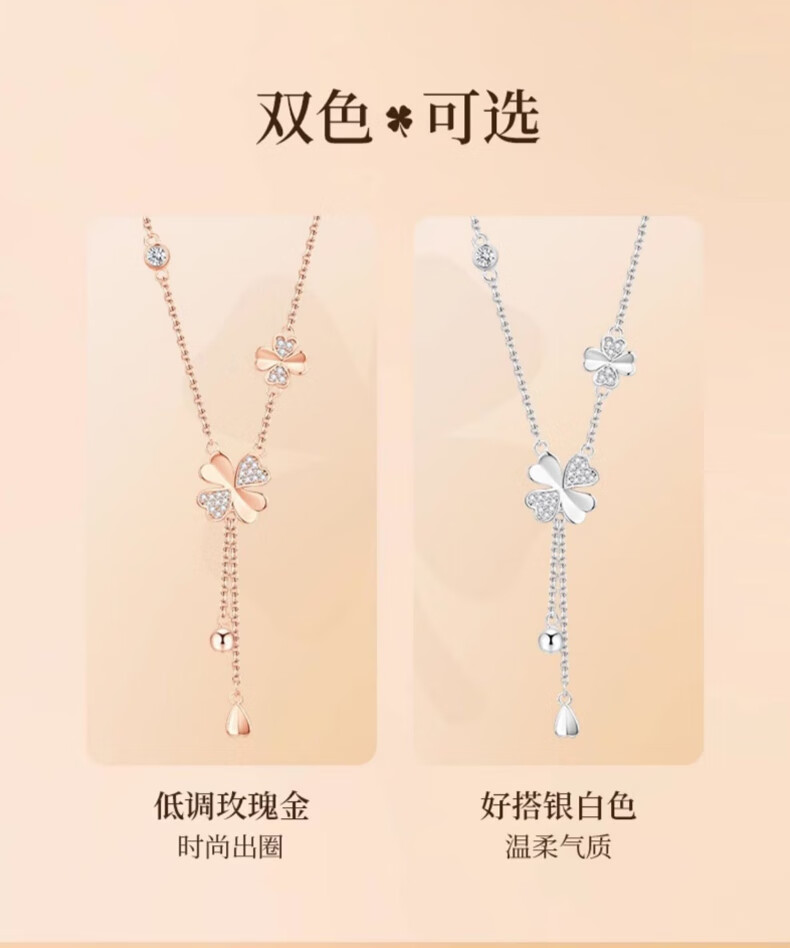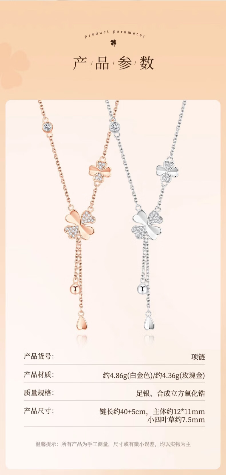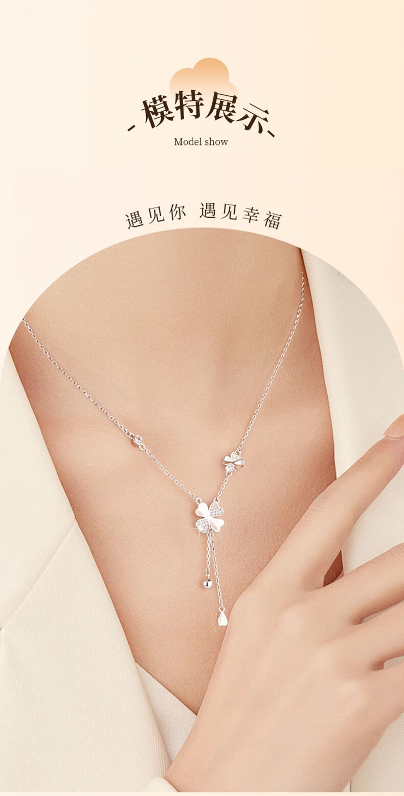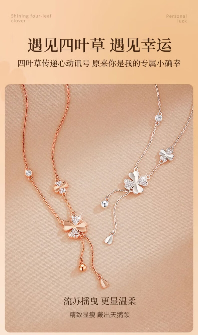 Djin999 pure silver four-leaf clover necklace for women light luxury tassel pendant clavicle chain female birthday gift for girlfriend and wife D243 silver white sparkling four-leaf clover necklace