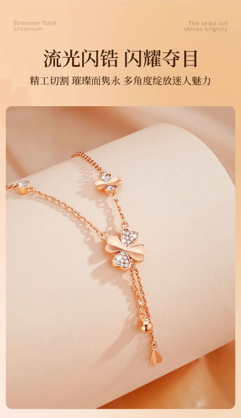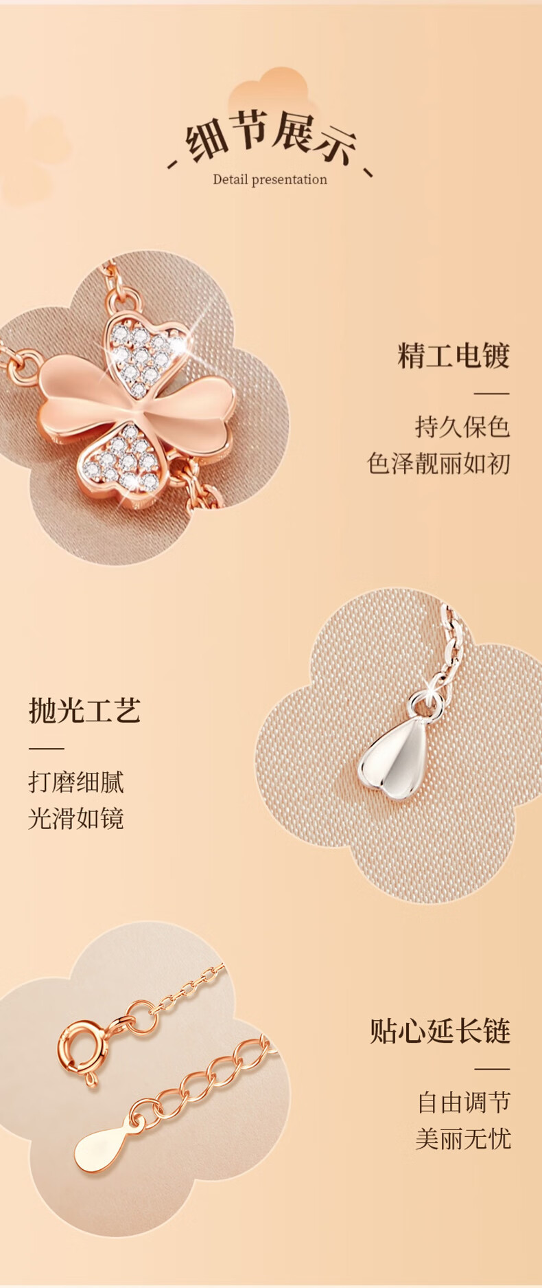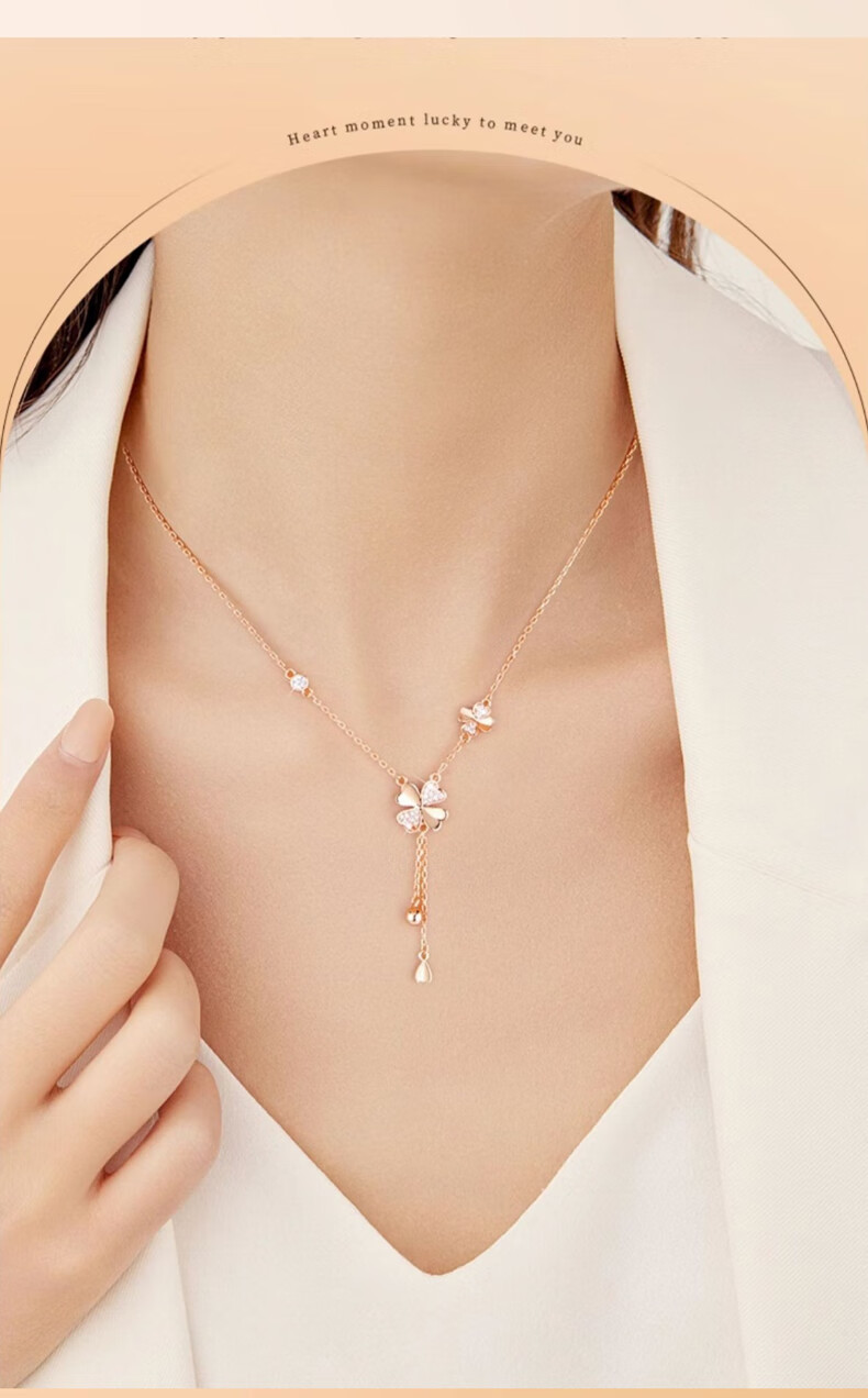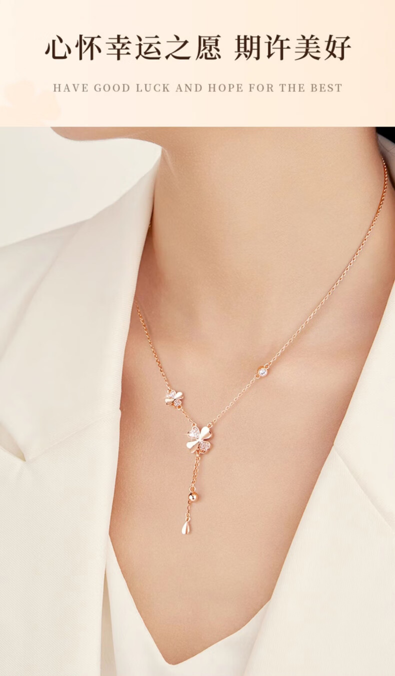 Djin999 pure silver four-leaf clover necklace for women light luxury tassel pendant clavicle chain female birthday gift for girlfriend and wife D243 silver white sparkling four-leaf clover necklace
