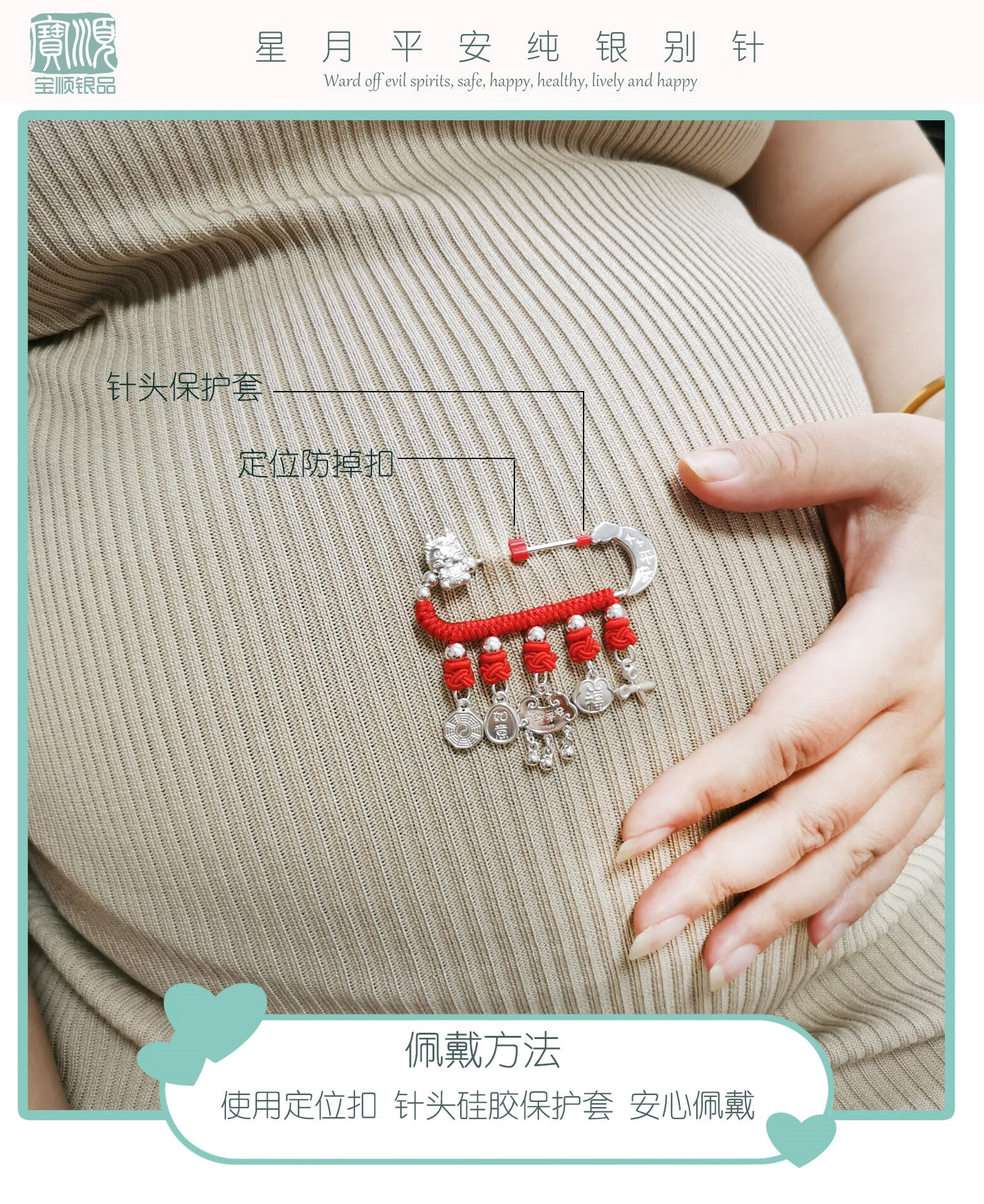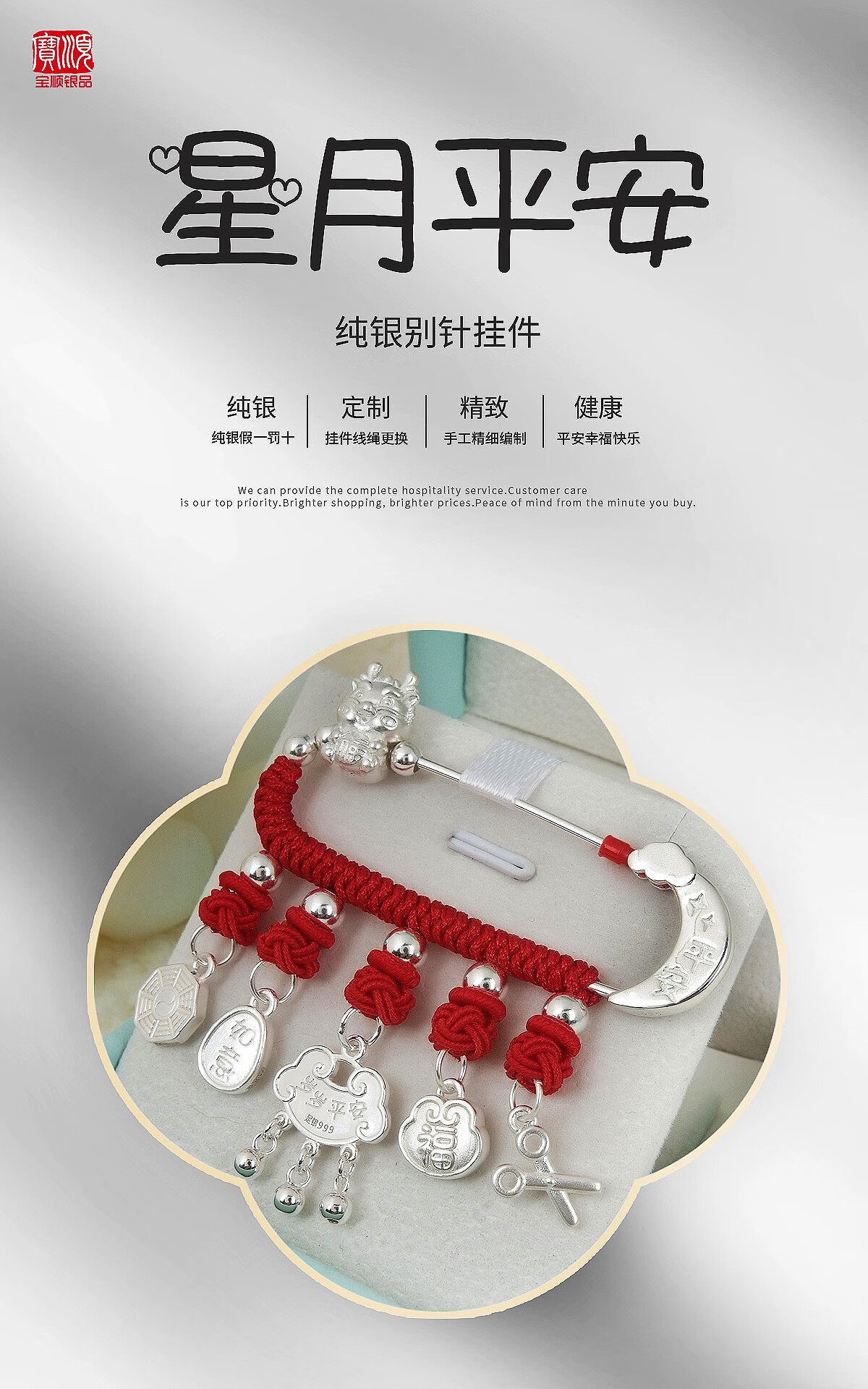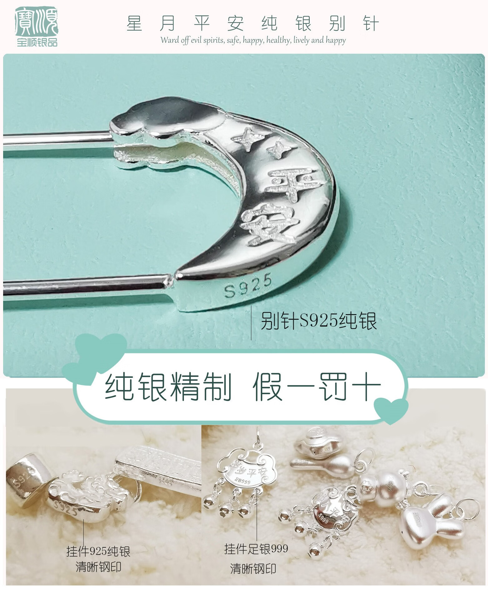 Tris newborn dragon treasure zodiac snake treasure star and moon sterling silver pin pregnant women foot silver pendant infant brooch anti-frightening dragon treasure for the Year of the Dragon can change the zodiac sign