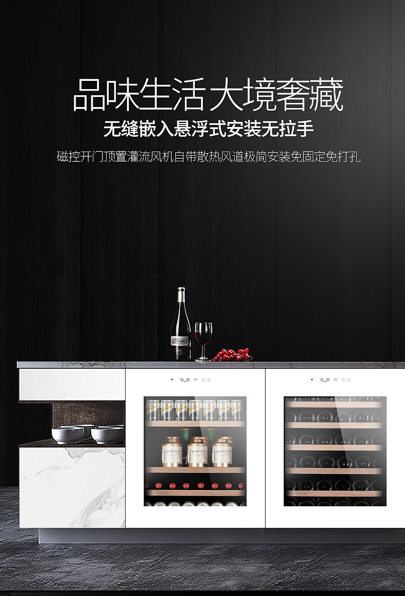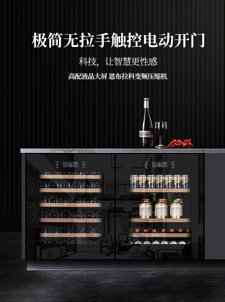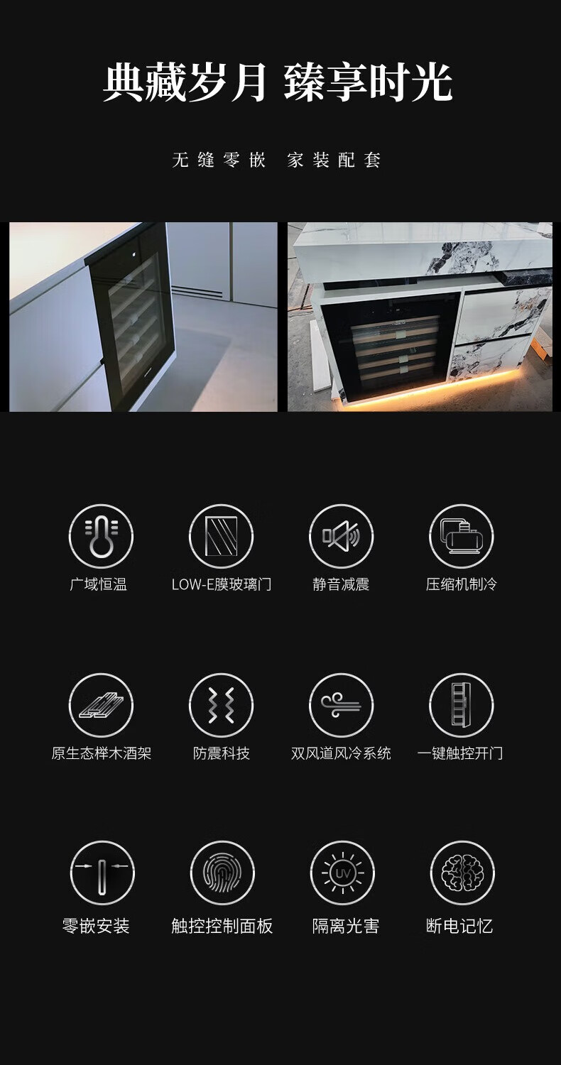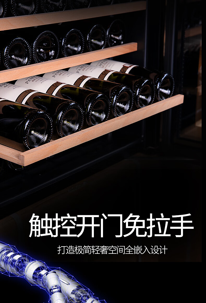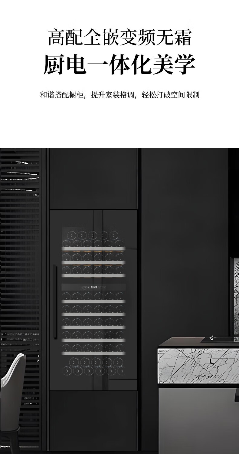 Seclusion and fame handleless touch door embedded red wine cabinet constant temperature wine cabinet tea beverage cabinet frost-free air-cooled heat-free frequency conversion wine cabinet fully embedded wine cabinet 696 height single temperature black/variable frequency 36 bottles