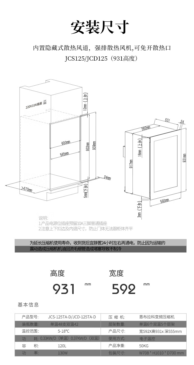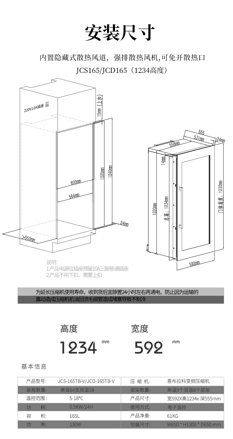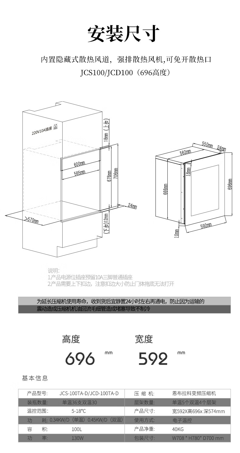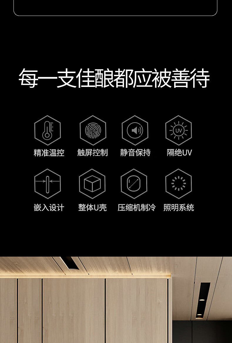 Seclusion and fame handleless touch door embedded red wine cabinet constant temperature wine cabinet tea beverage cabinet frost-free air-cooled heat-free frequency conversion wine cabinet fully embedded wine cabinet 696 height single temperature black/variable frequency 36 bottles