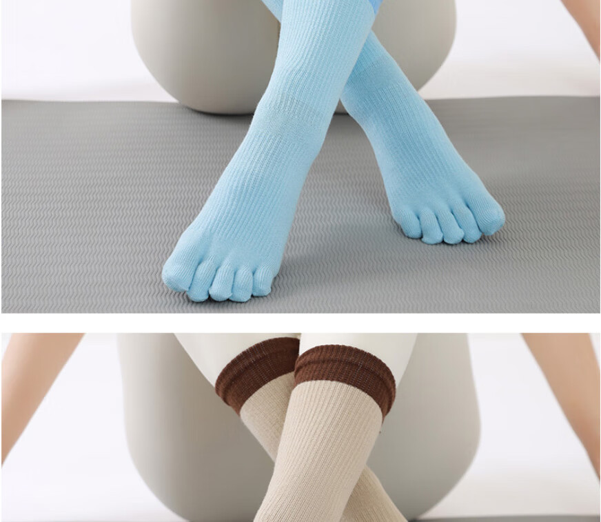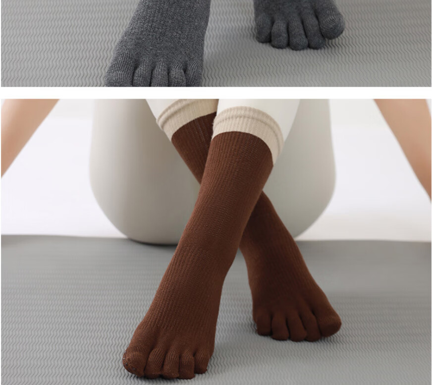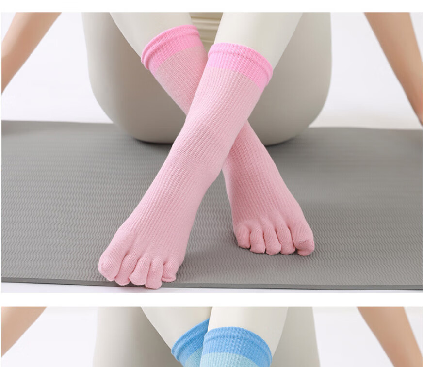 Huodiniao autumn and winter yoga five-finger socks, professional non-slip women's mid-calf Pilates socks, indoor fitness sports adult floor socks, choose three pairs, color, contact customer service for remarks