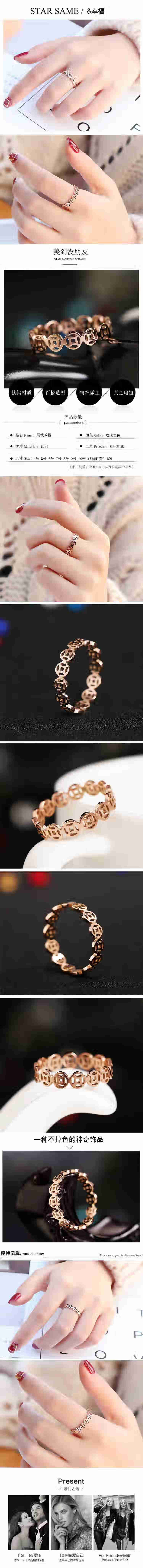 KERLA Old Phoenix Gold Store Model 18k Rose Gold Plated Copper Money Ring Women's Niche Design Fashion Personality Internet Celebrity Titanium Steel Rose Gold No. 8 (U.S. Size)