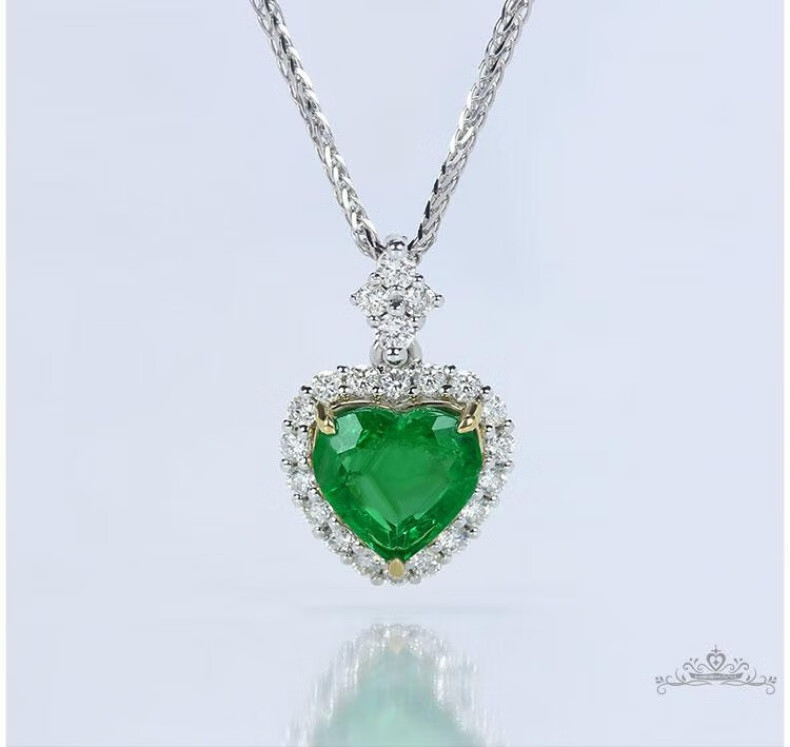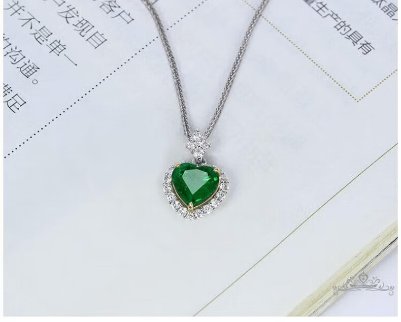 Haikai Necklace Women's Emerald Necklace Zambian Luxury Jewelry Chinese Valentine's Day Birthday Gift for Wife Zambian Emerald Heart-Shaped Necklace