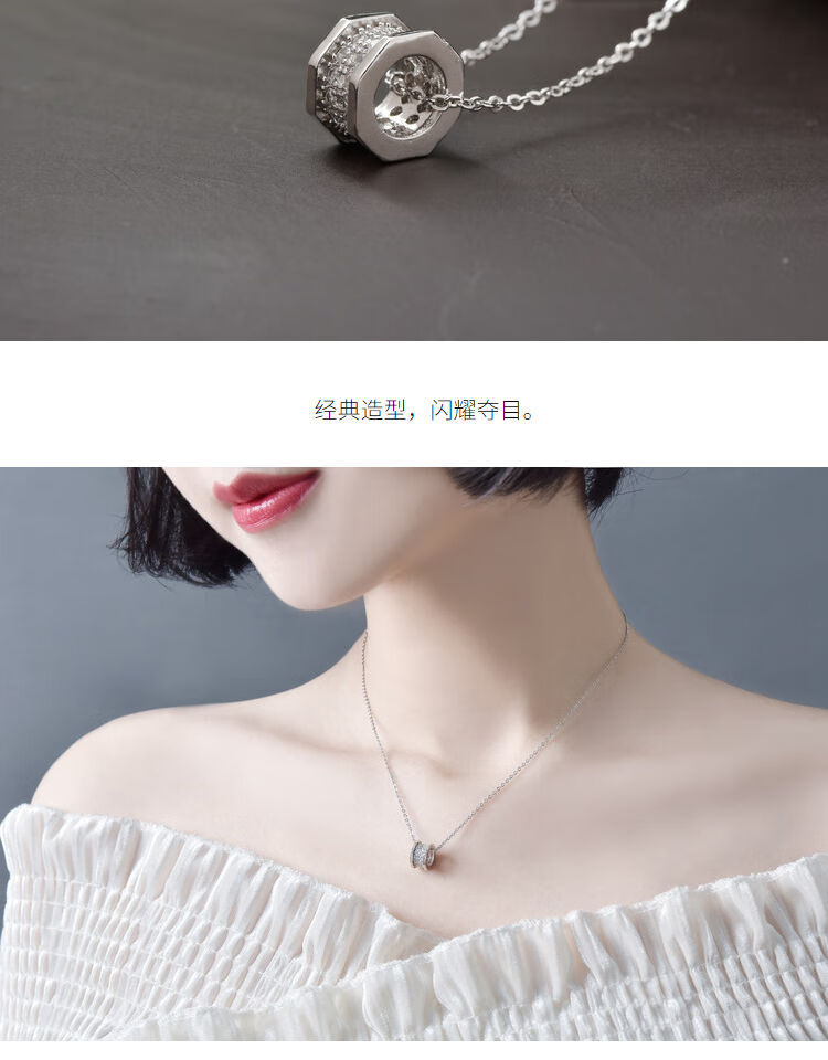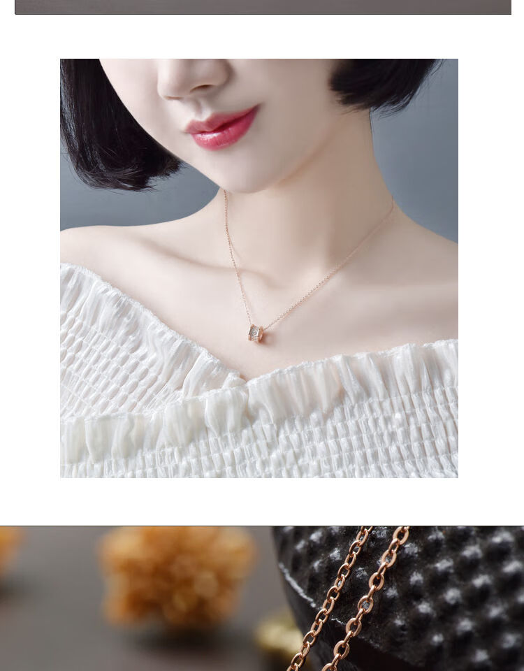 Luruo sterling silver necklace women's pendant 18K rose gold inlaid gemstone clavicle chain light luxury high-end 2023 new trend white gold