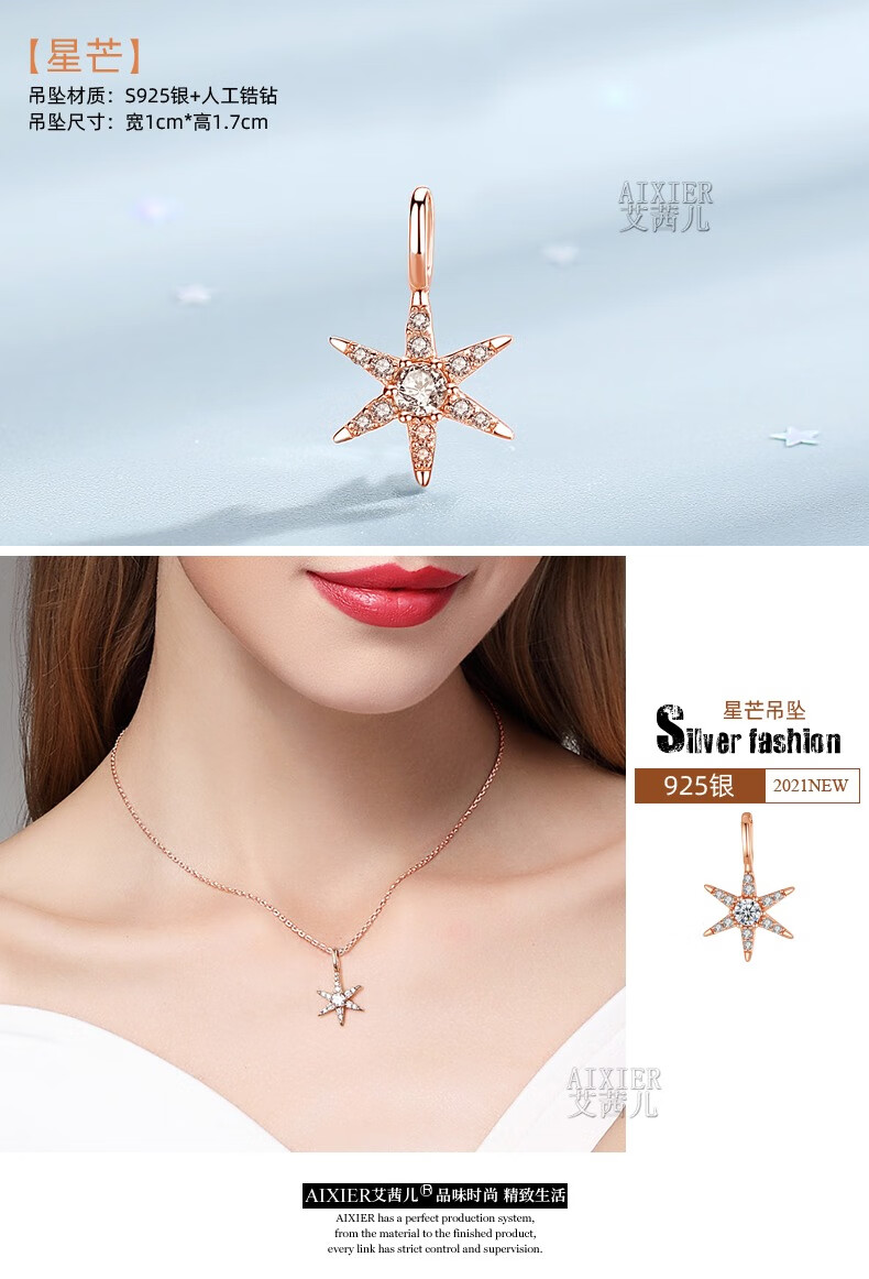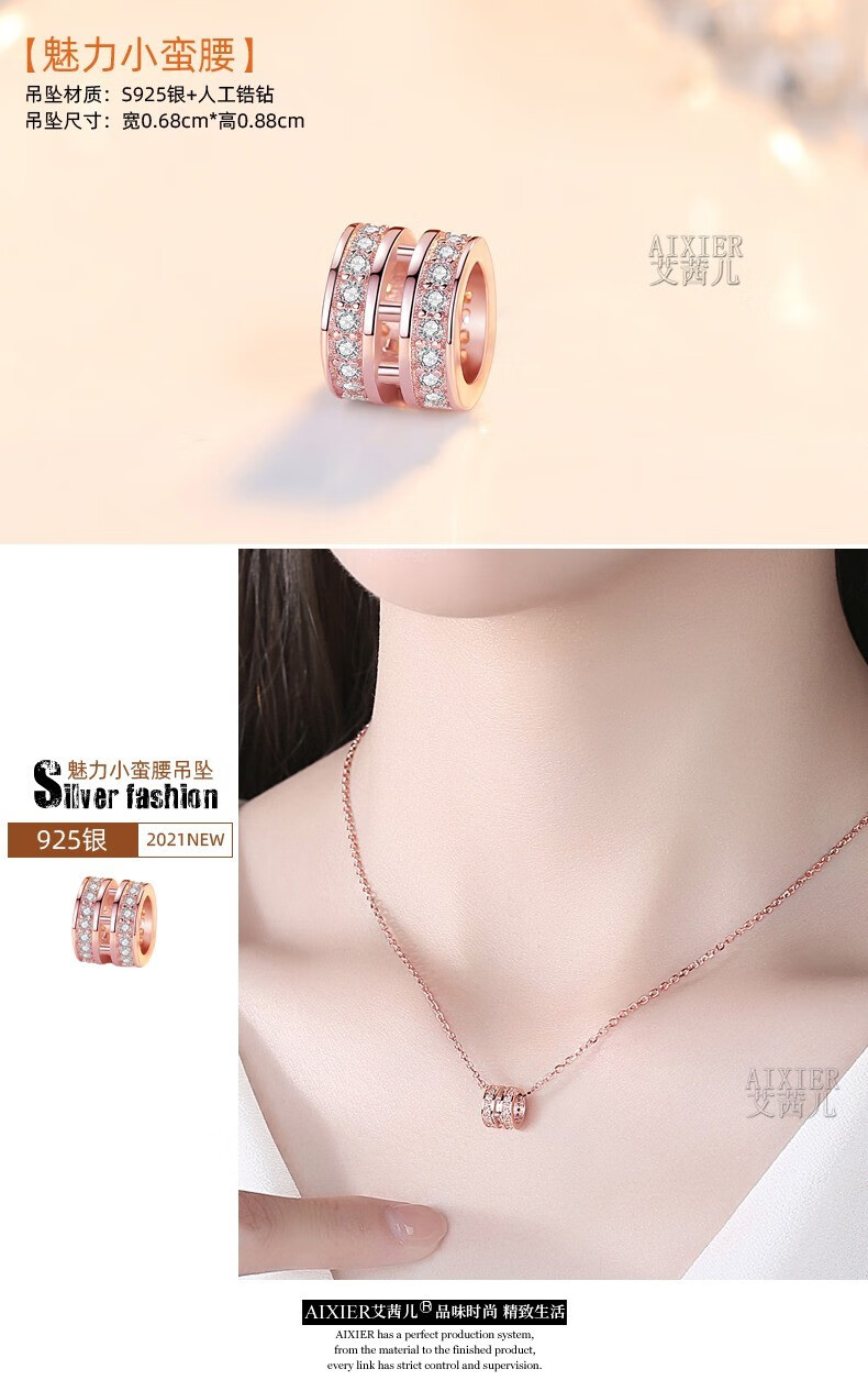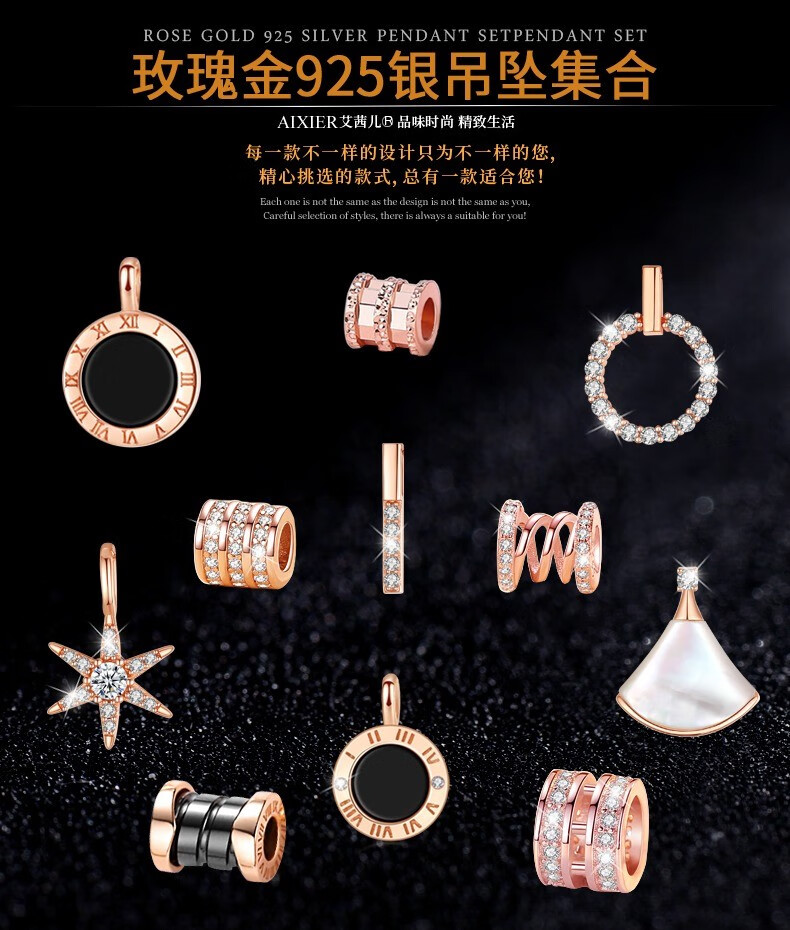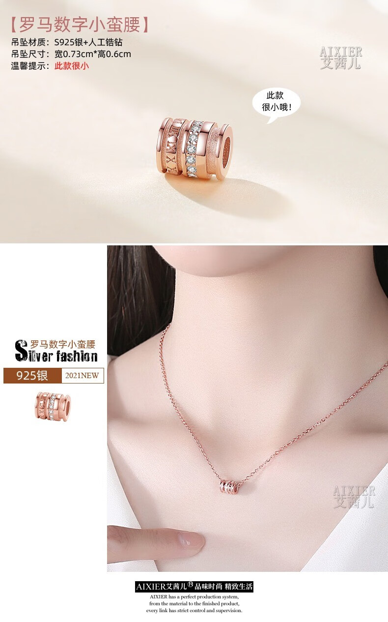 Luruo single pendant single pendant for women sterling silver necklace color gold pendant without chain 18K rose gold color gold pendant accessories S925 silver single chain rose gold 38+5cm extension