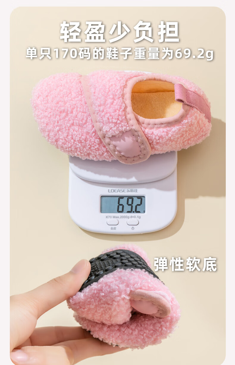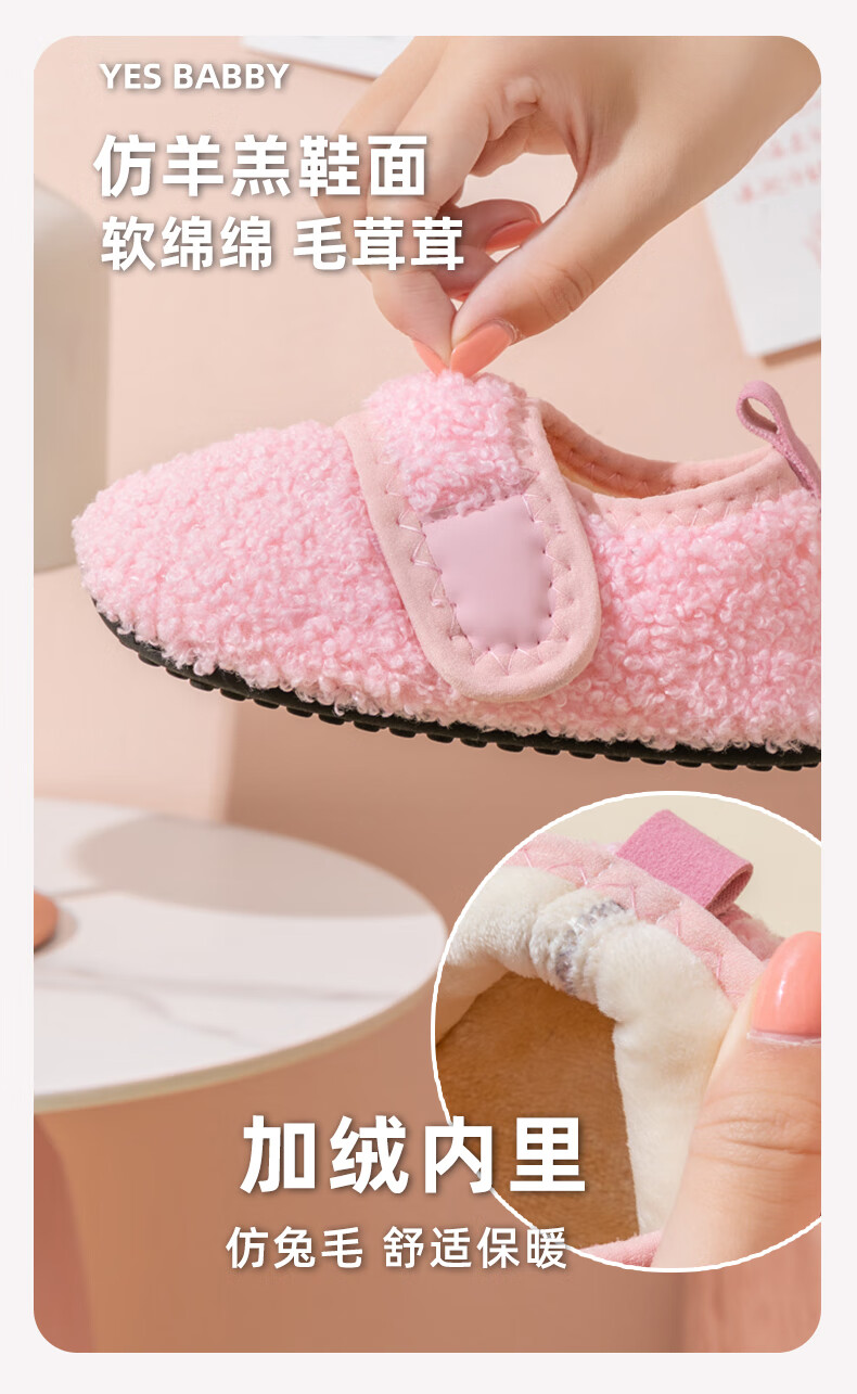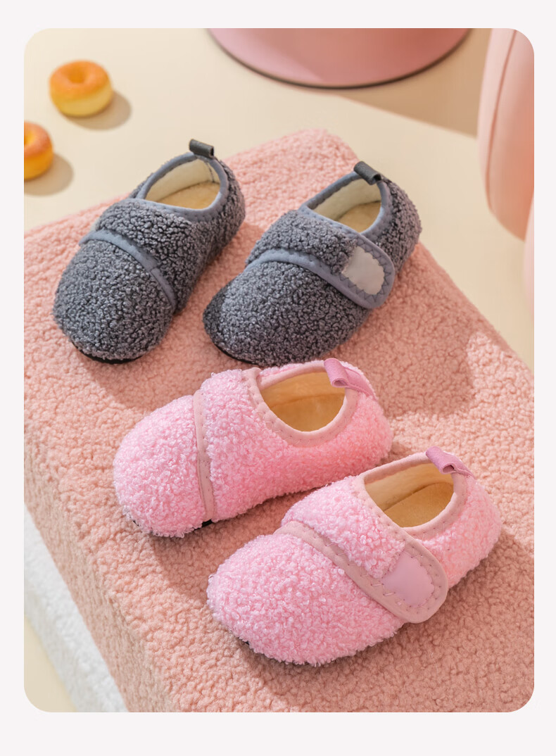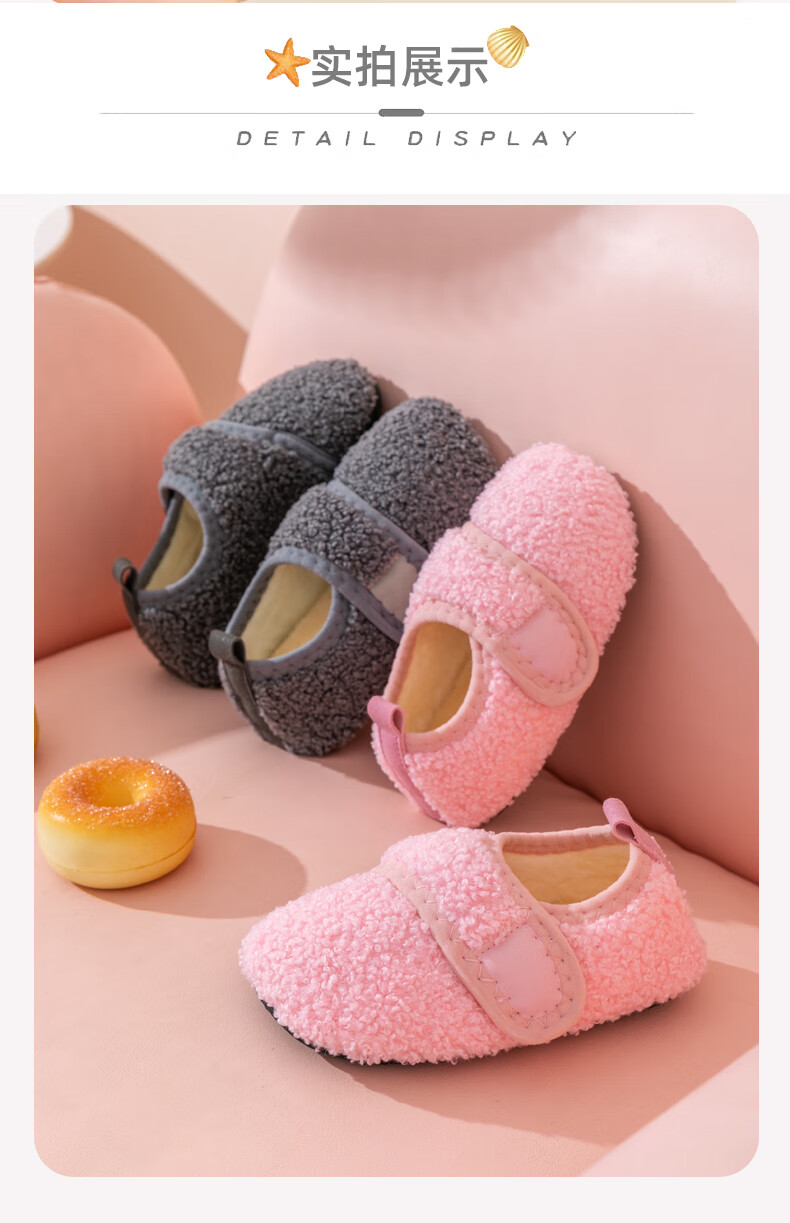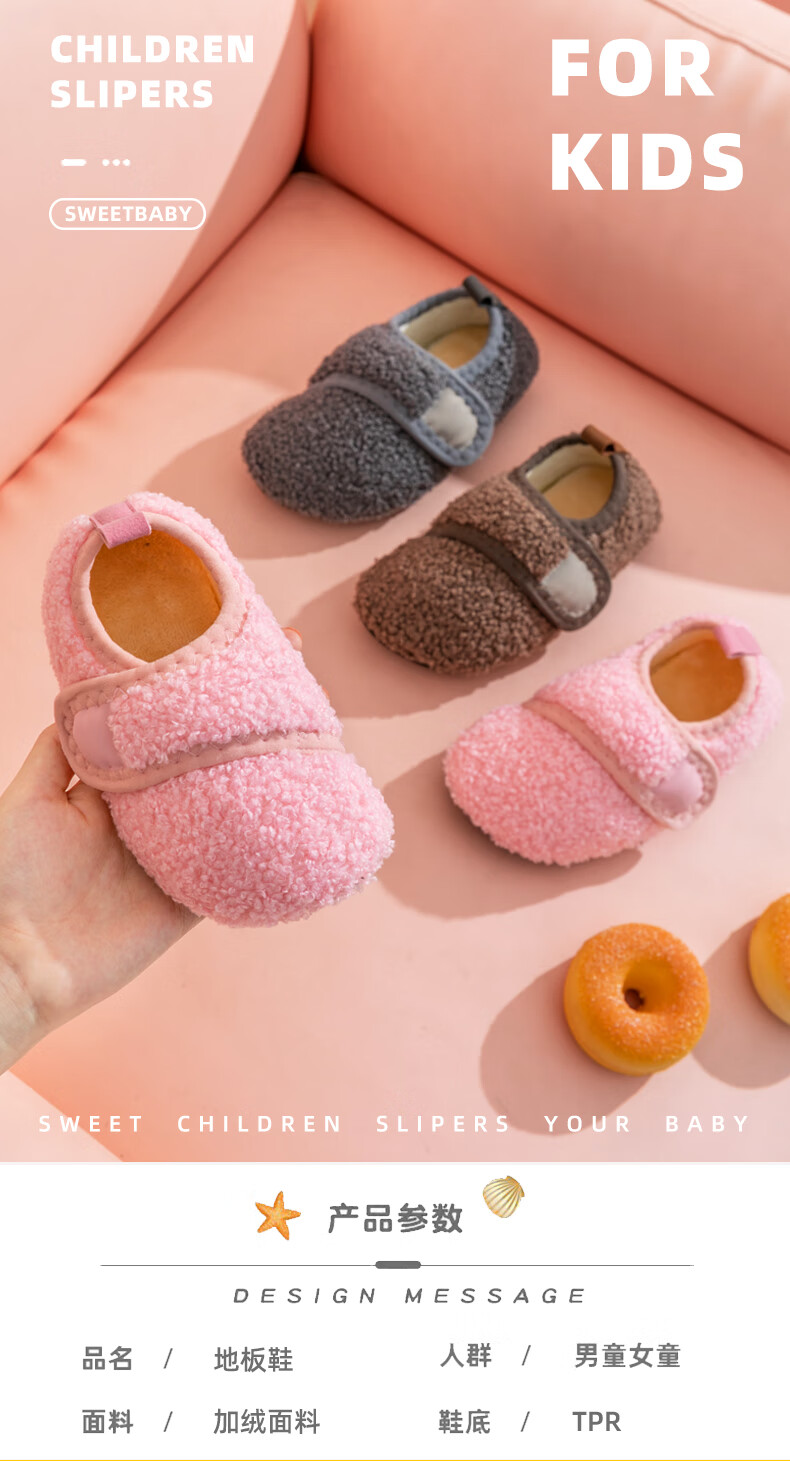 Velcro children's floor shoes plus velvet floor heating socks and overshoes for boys and girls winter indoor cotton slippers and cool soft bottom socks pink 220 suitable for feet length 20.9-21.8