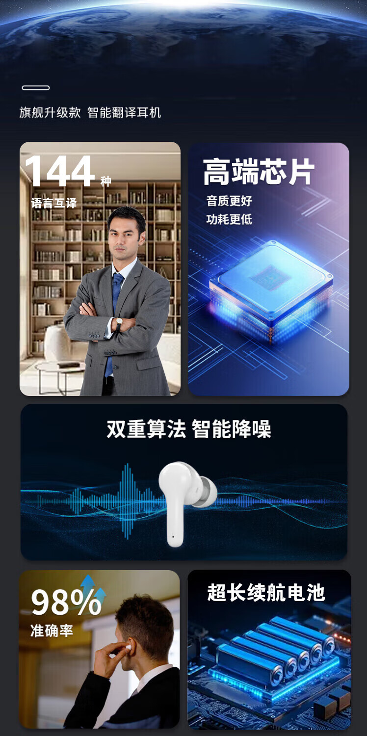 SNZESKE in-ear Bluetooth translation headset 144 languages ​​mutual translation simultaneous interpretation overseas travel artifact multi-language foreign language translator Translation electroplating white gift box/Beijing warehouse delivery/next day delivery