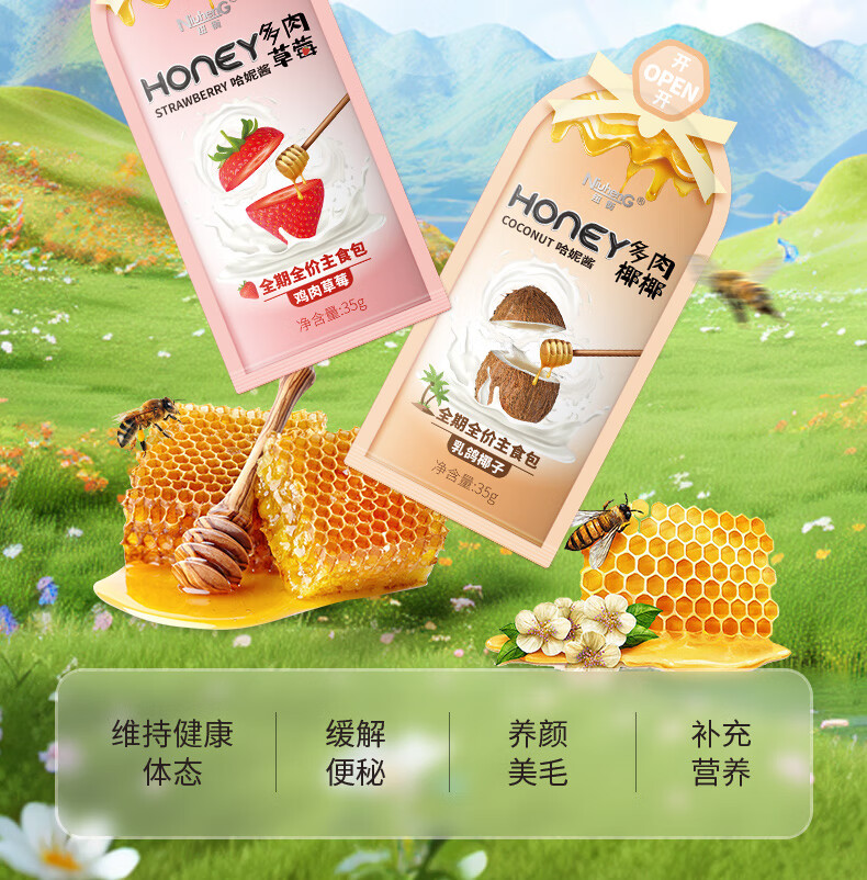 Niuheng (NiuhenG) full-price staple food package Manuka Honey Chicken Strawberry Honey Sauce Mixed Food Sauce into Kitten Wet Food Can Honey Sauce Squab Coconut High Protein Low Fat 350g (35g*10 bags/1 box)