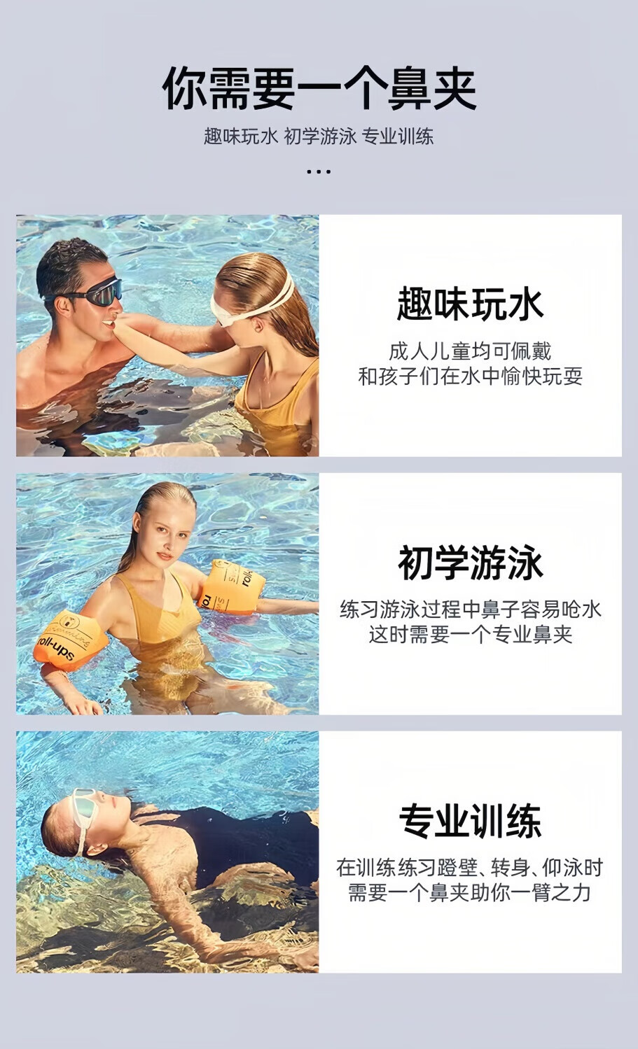 Upgraded silicone swimming nose clip earplugs, snorkeling and anti-choking set equipment for diving, men, women and children, upgraded version - nose clip blue