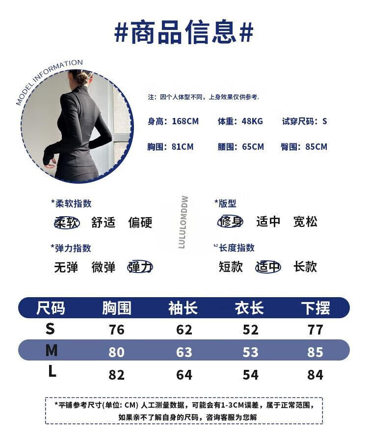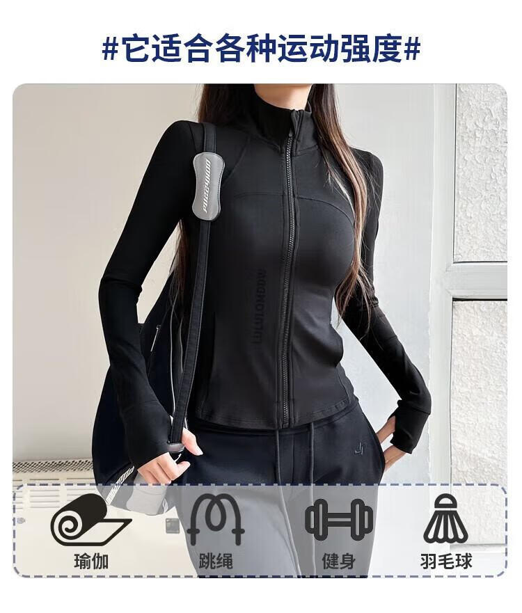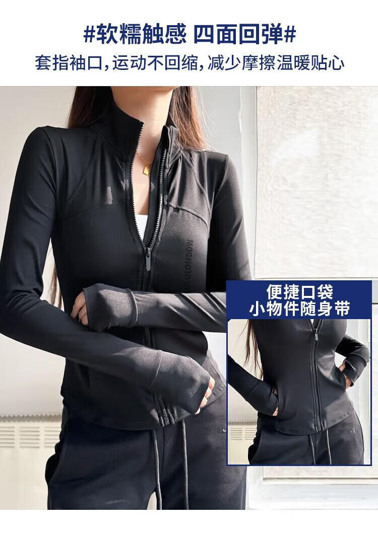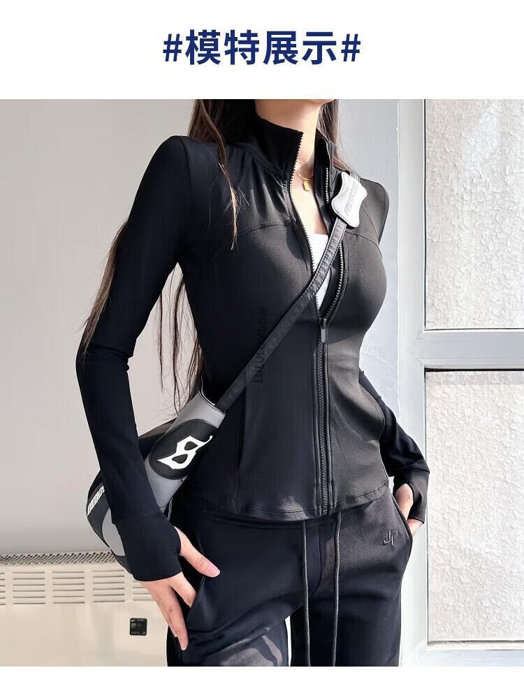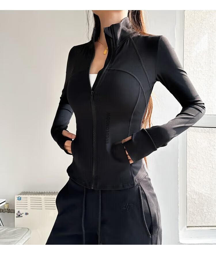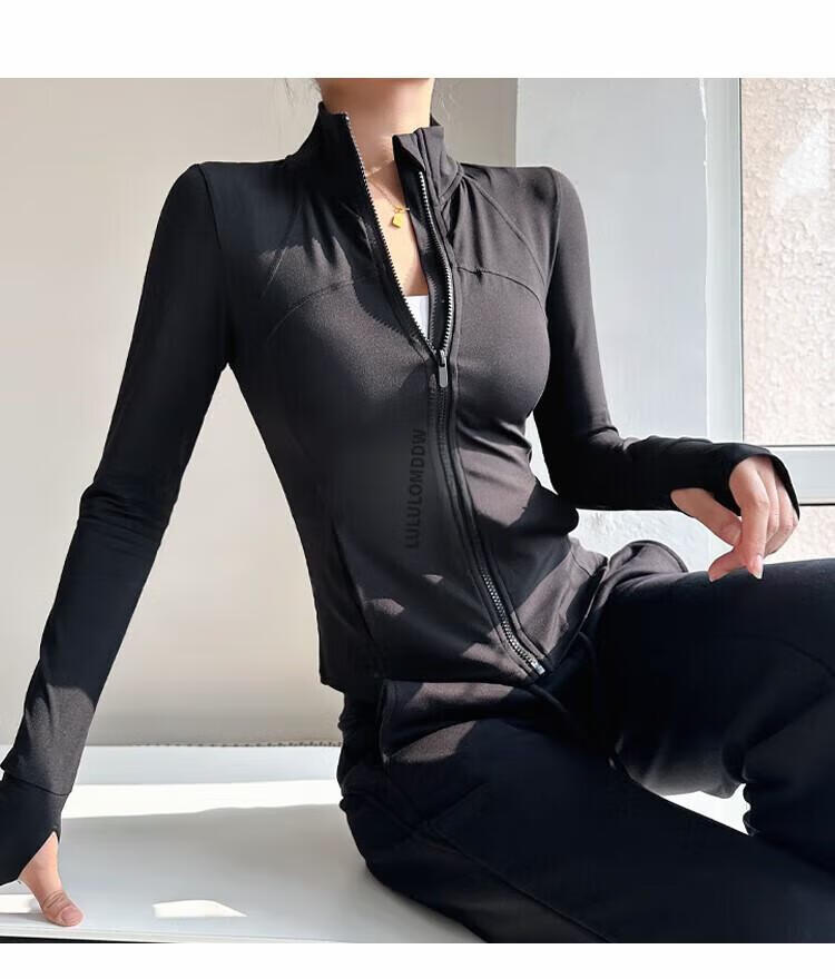 LULULOMDDW Yoga Top Women's Long Sleeve Pilates Professional Training Stand Collar Tight Running Sports Jacket Women Black L