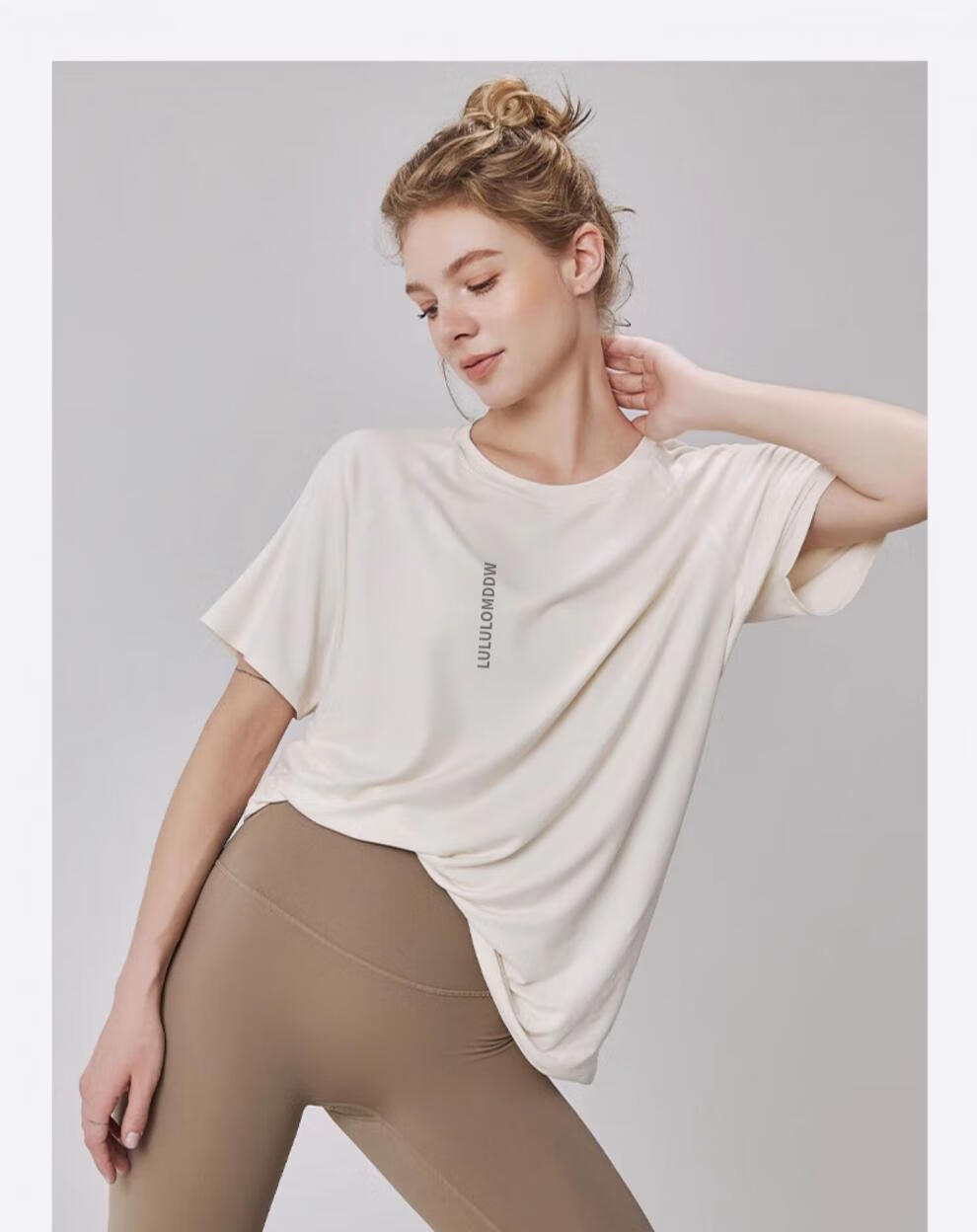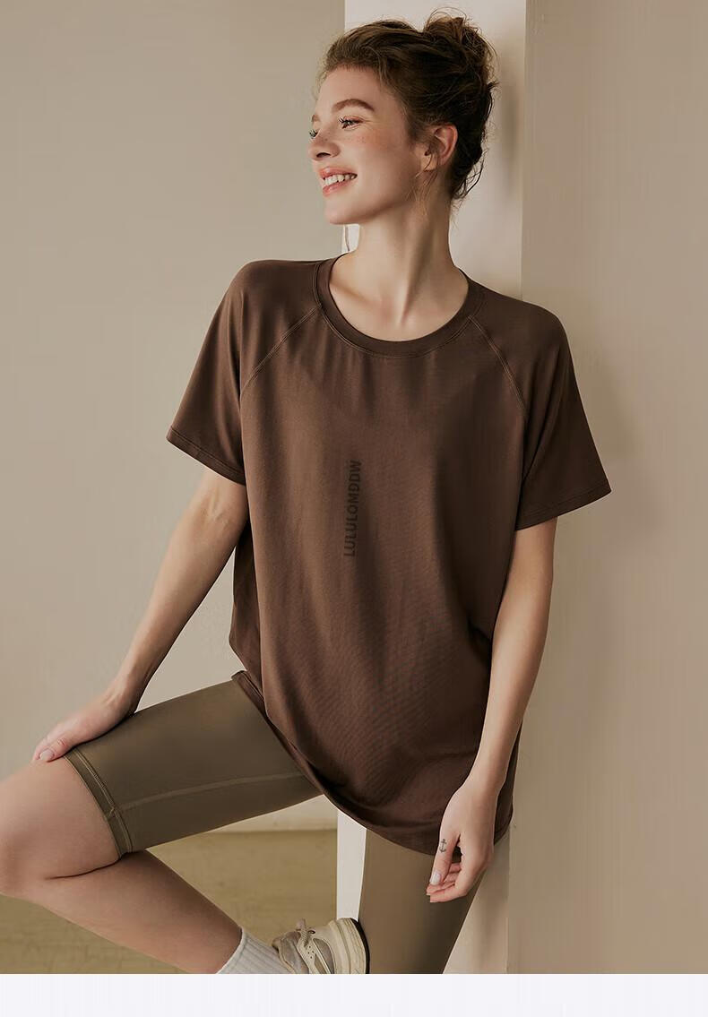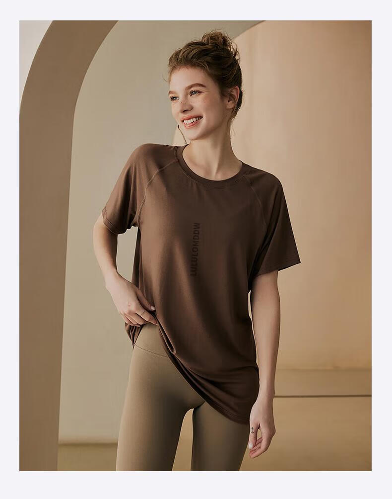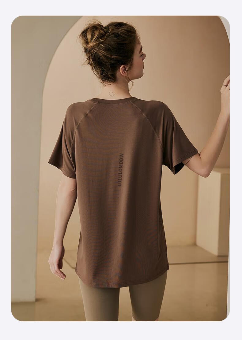 LULULOMDDW yoga top women's loose slimming sports short-sleeved women's Pilates professional fitness running breathable blouse summer brown coffee L