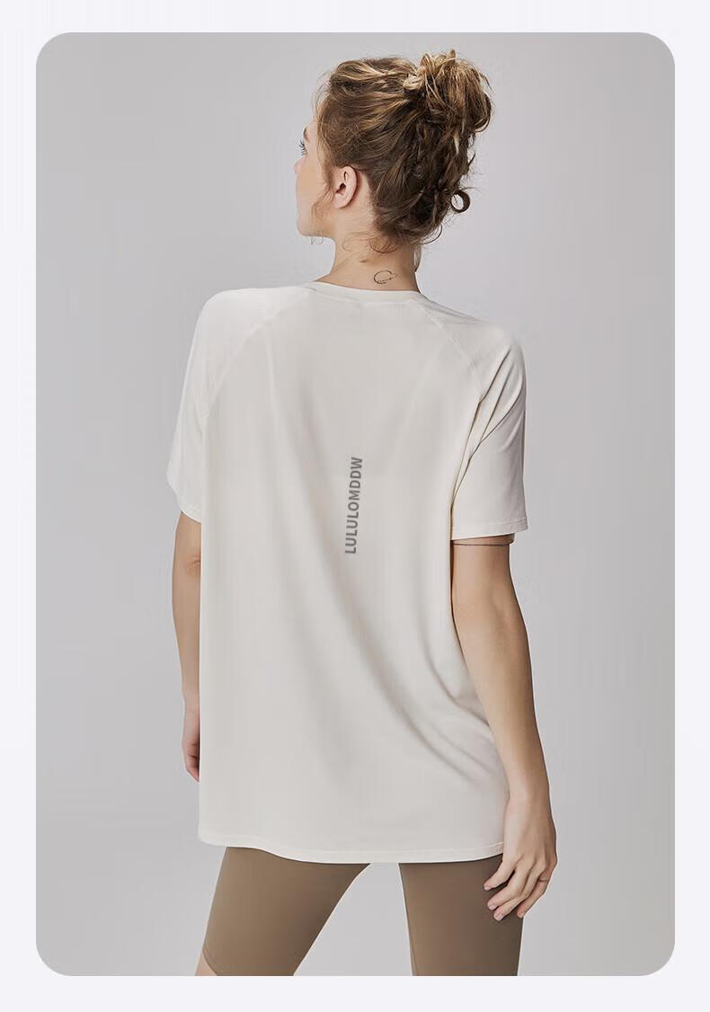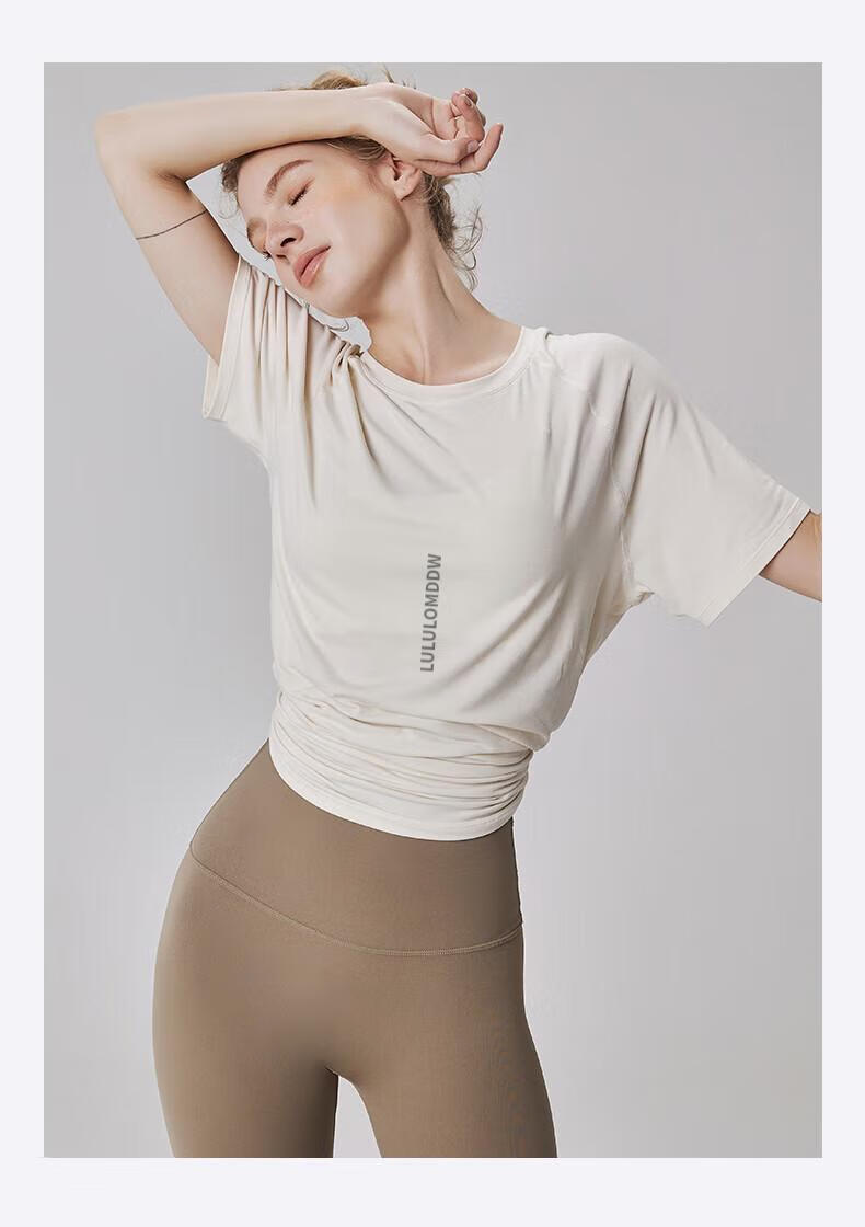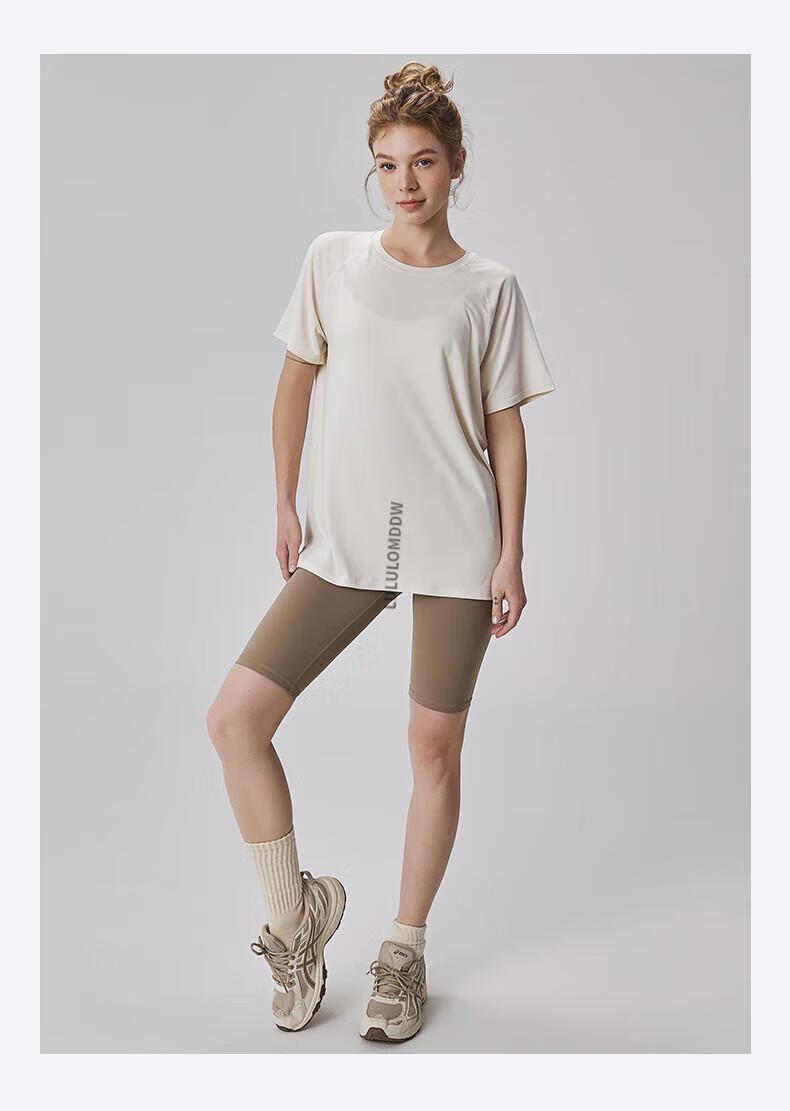 LULULOMDDW yoga top women's loose slimming sports short-sleeved women's Pilates professional fitness running breathable blouse summer brown coffee L