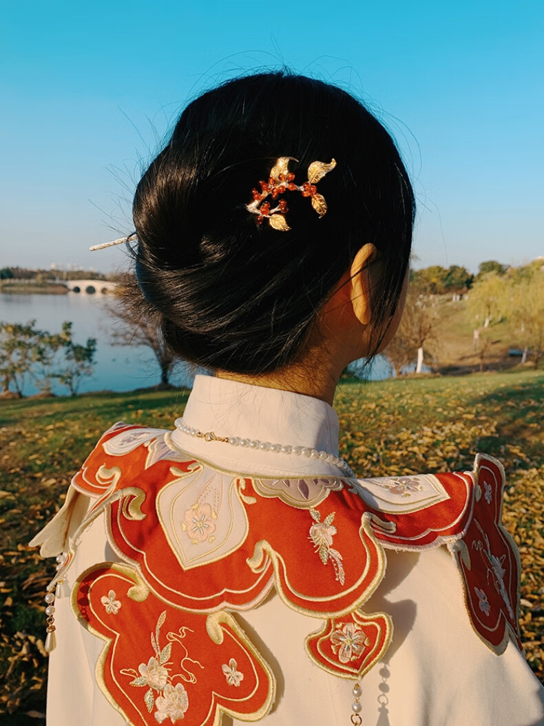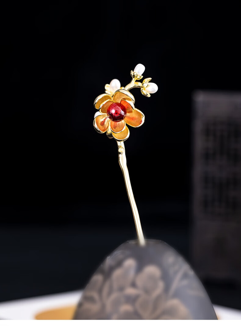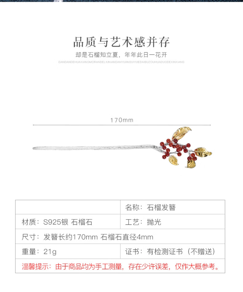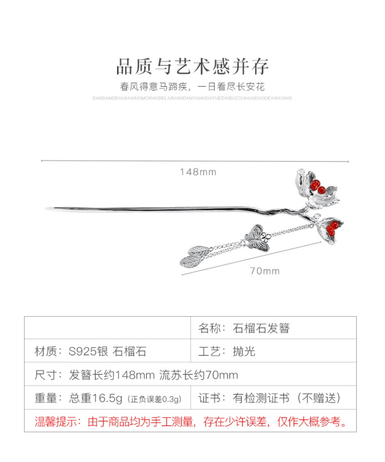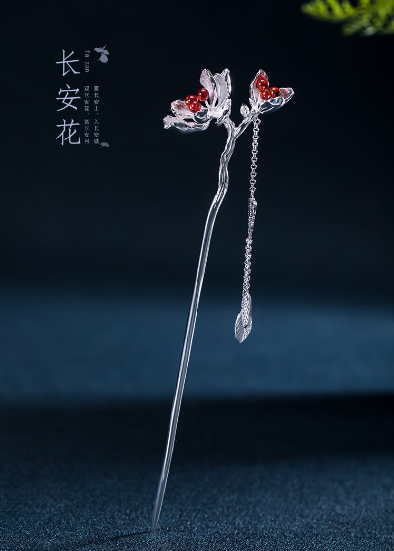 Shaofan E.YL light luxury sterling silver hairpin, ancient style Hanfu cheongsam, new Chinese style hairpin for girlfriend, high-end gift red red bean branch and leaf hairpin