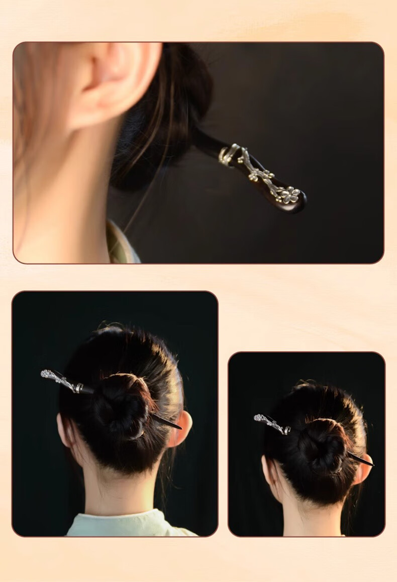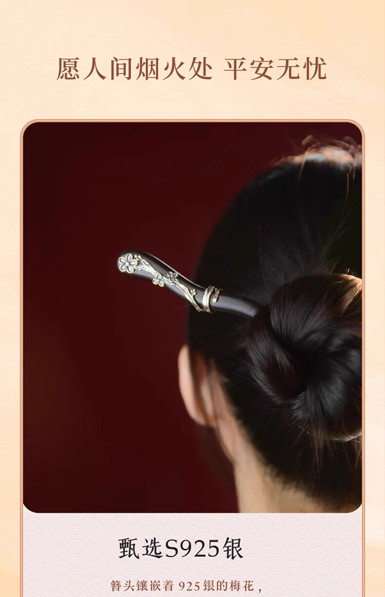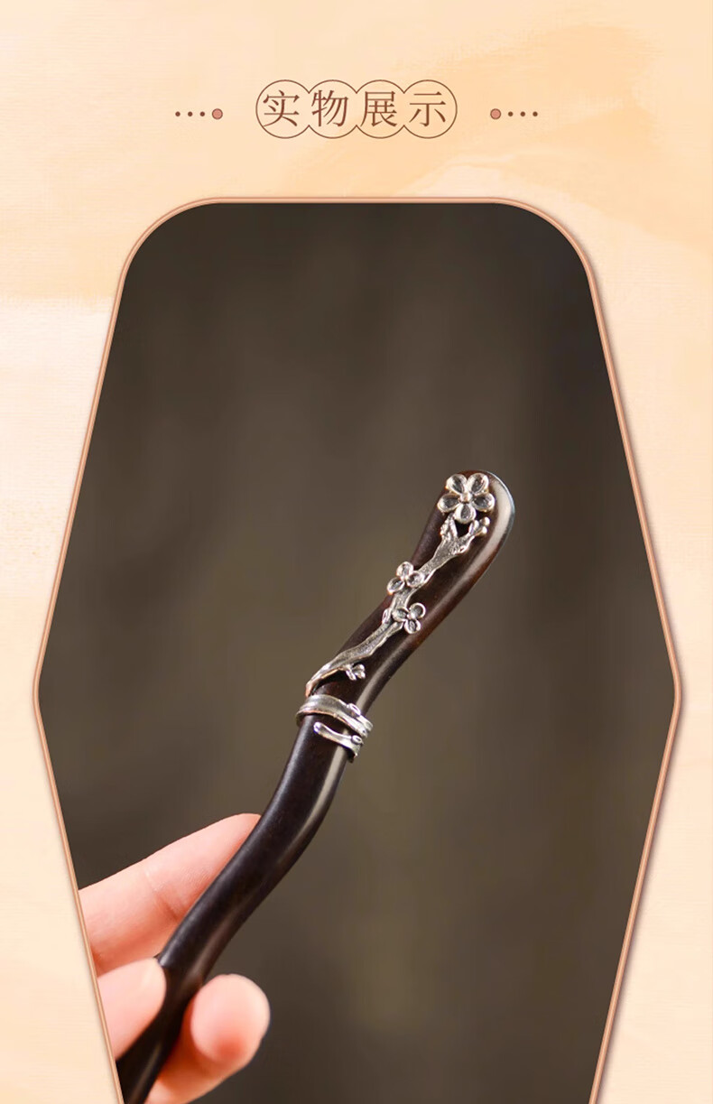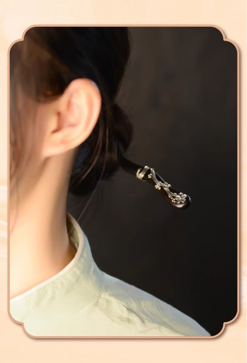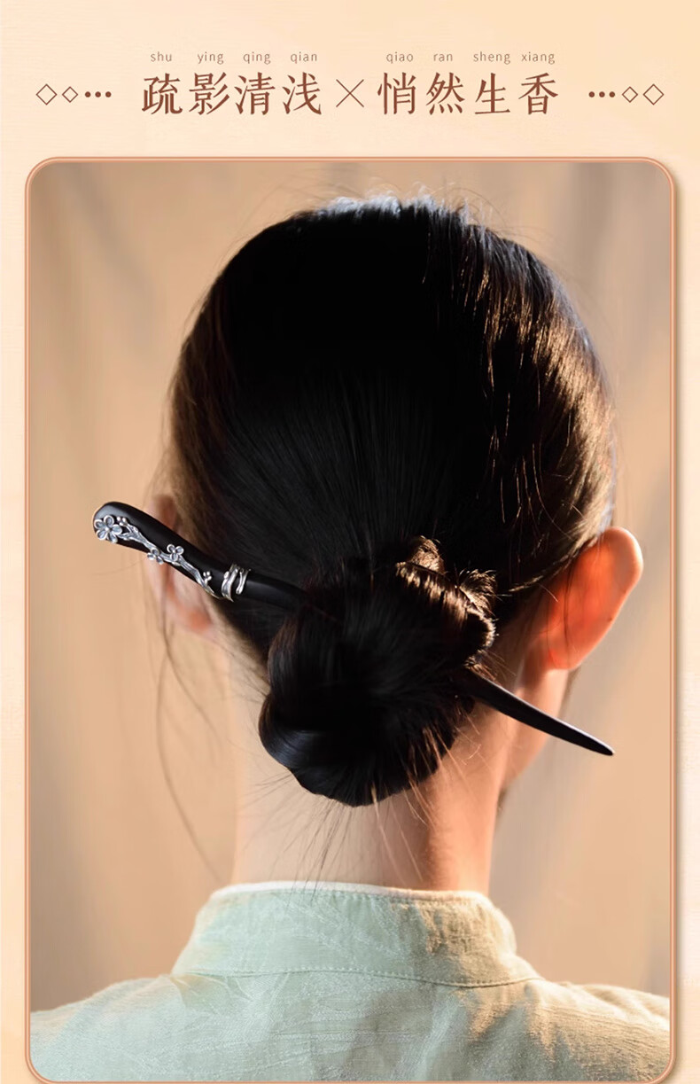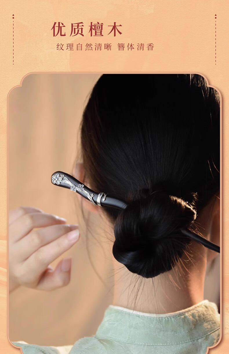 Shaofan Yimei Sandalwood Silver Hairpin Girls Daily Hairpin Hanfu Cheongsam Horse Face Skirt Accessories Headdress Birthday Gift Yimei Sandalwood Silver Hairpin