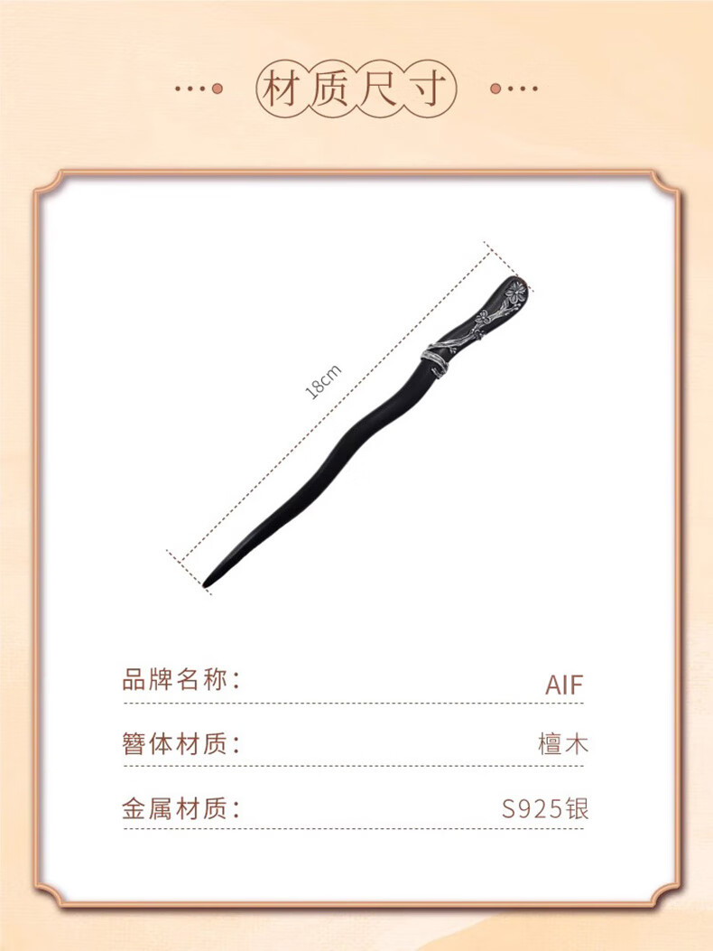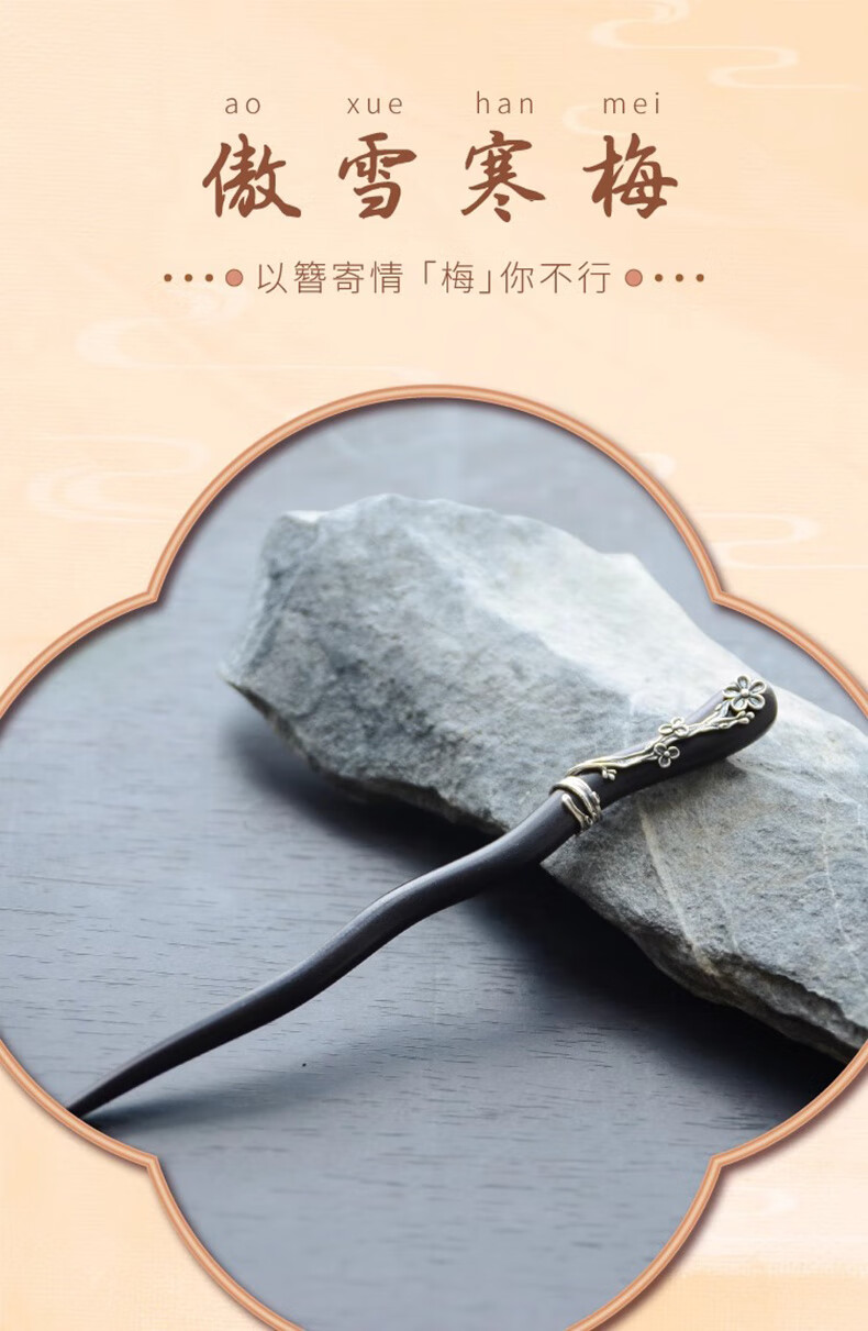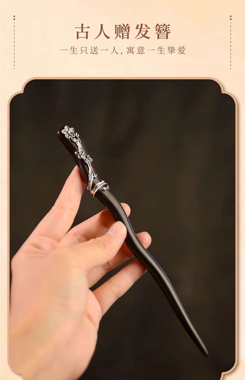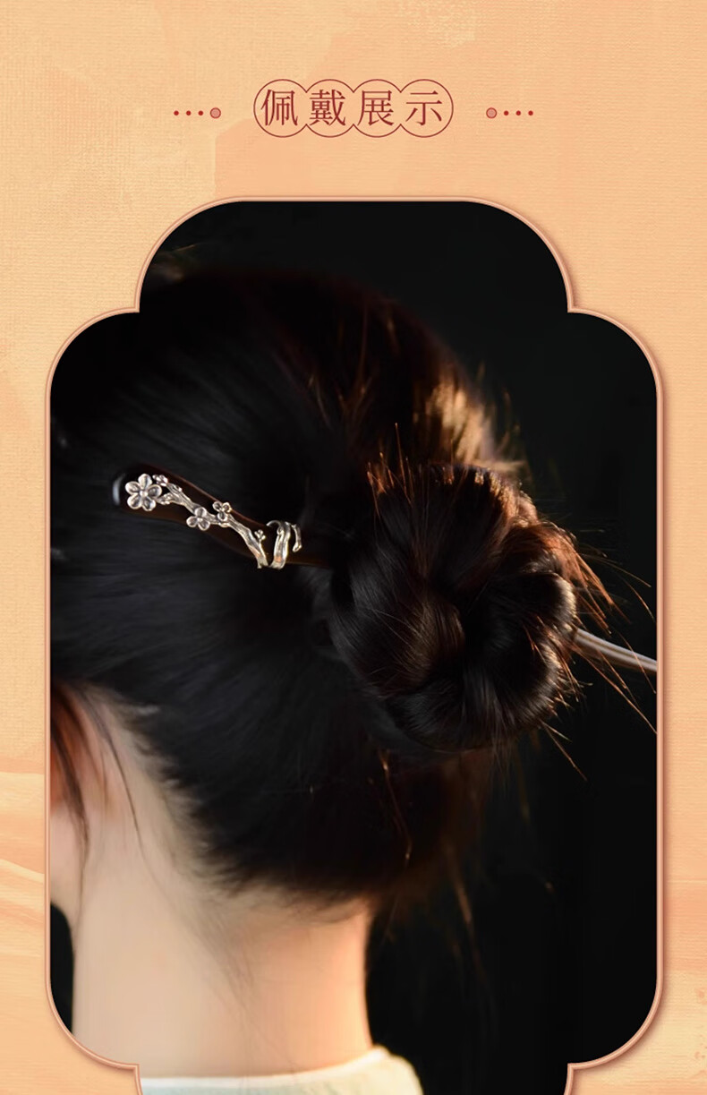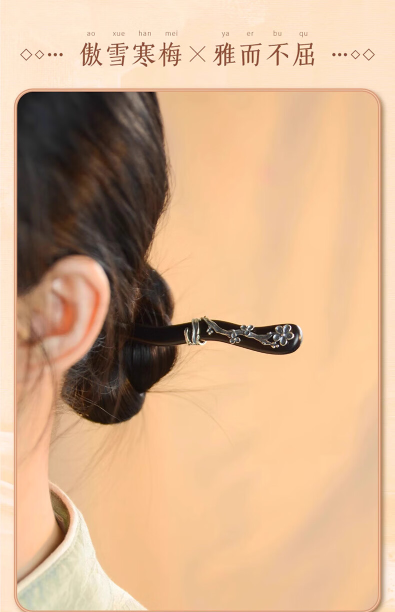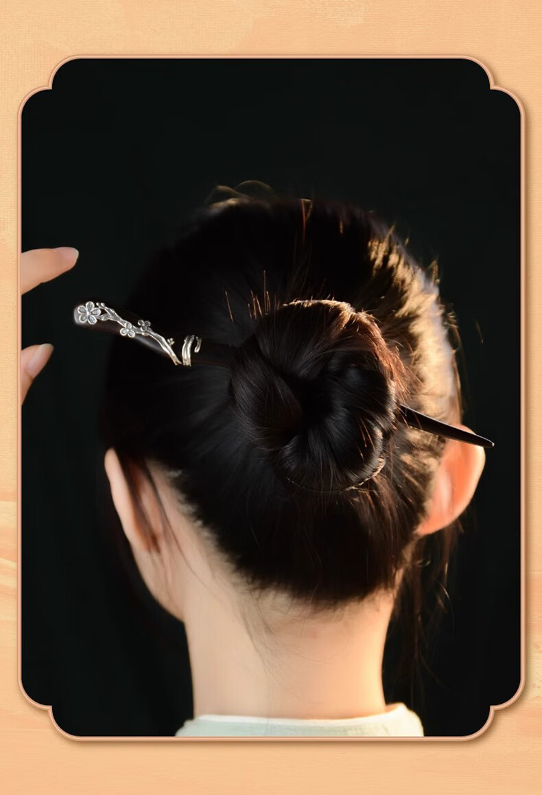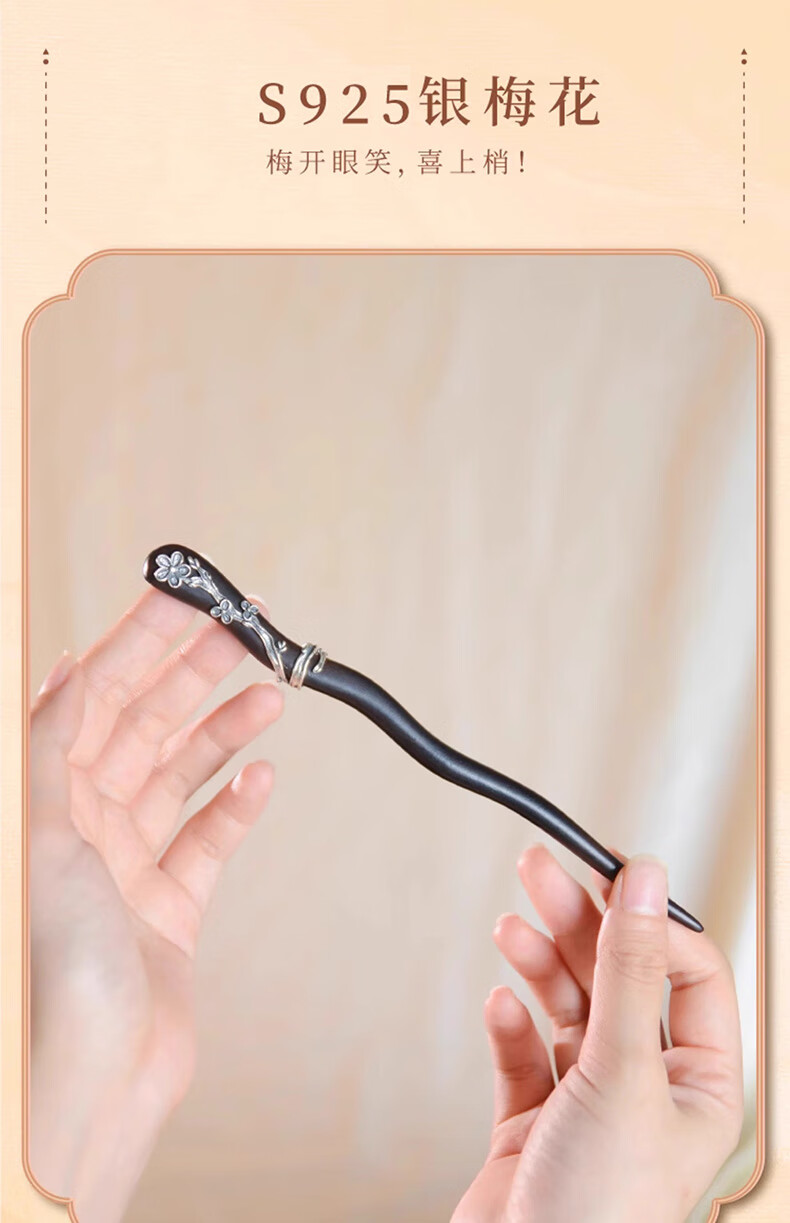 Shaofan Yimei Sandalwood Silver Hairpin Girls Daily Hairpin Hanfu Cheongsam Horse Face Skirt Accessories Headdress Birthday Gift Yimei Sandalwood Silver Hairpin