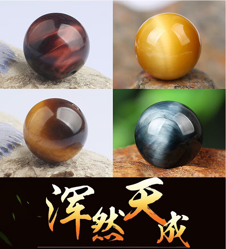 Shaofan Natural Tiger Eye Stone Single Bead Gold Blue Red Yellow Cat's Eye Loose Bead DIY Bracelet Tiger Eye Stone Crystal Bead Disciple Bead Collection Grade Red Tiger Eye 16mm/1