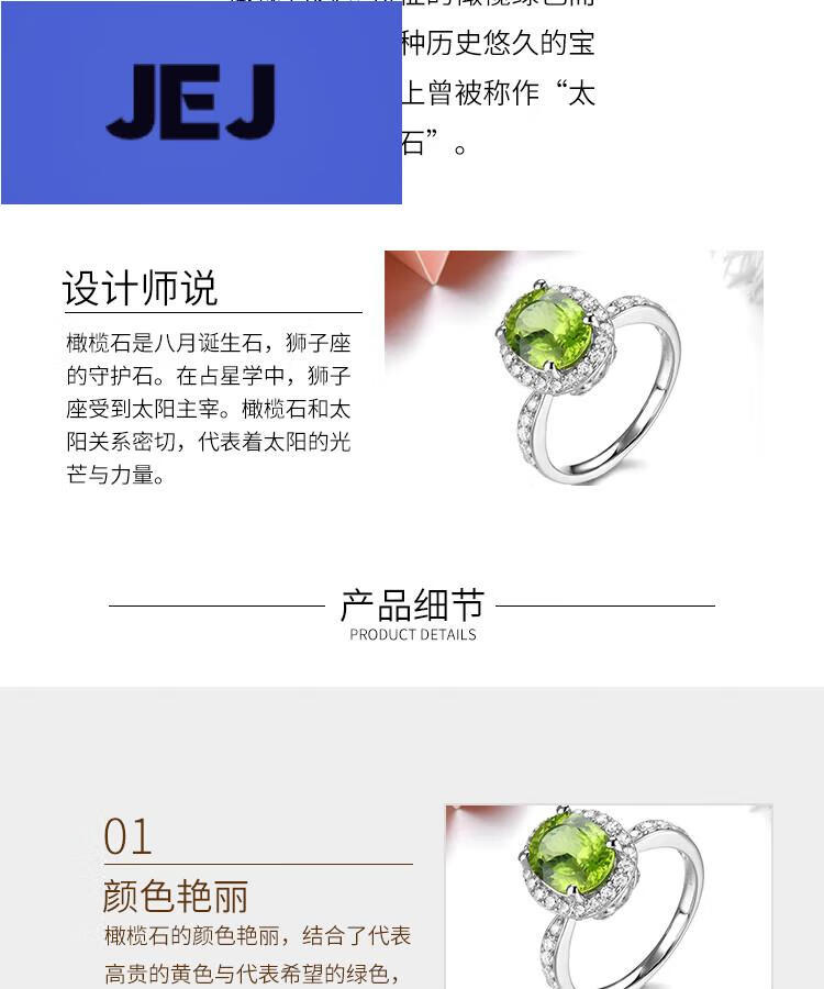 Yulong Carat Peridot Ring Women's Colorful Jewelry Gemstone Silver Inlaid 520 Valentine's Day Birthday Gift No. 17 No. 13