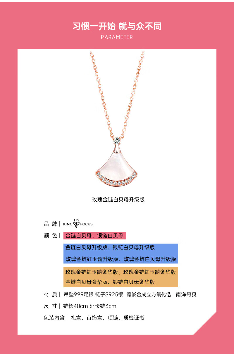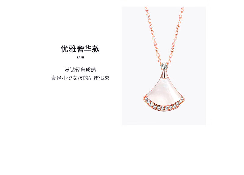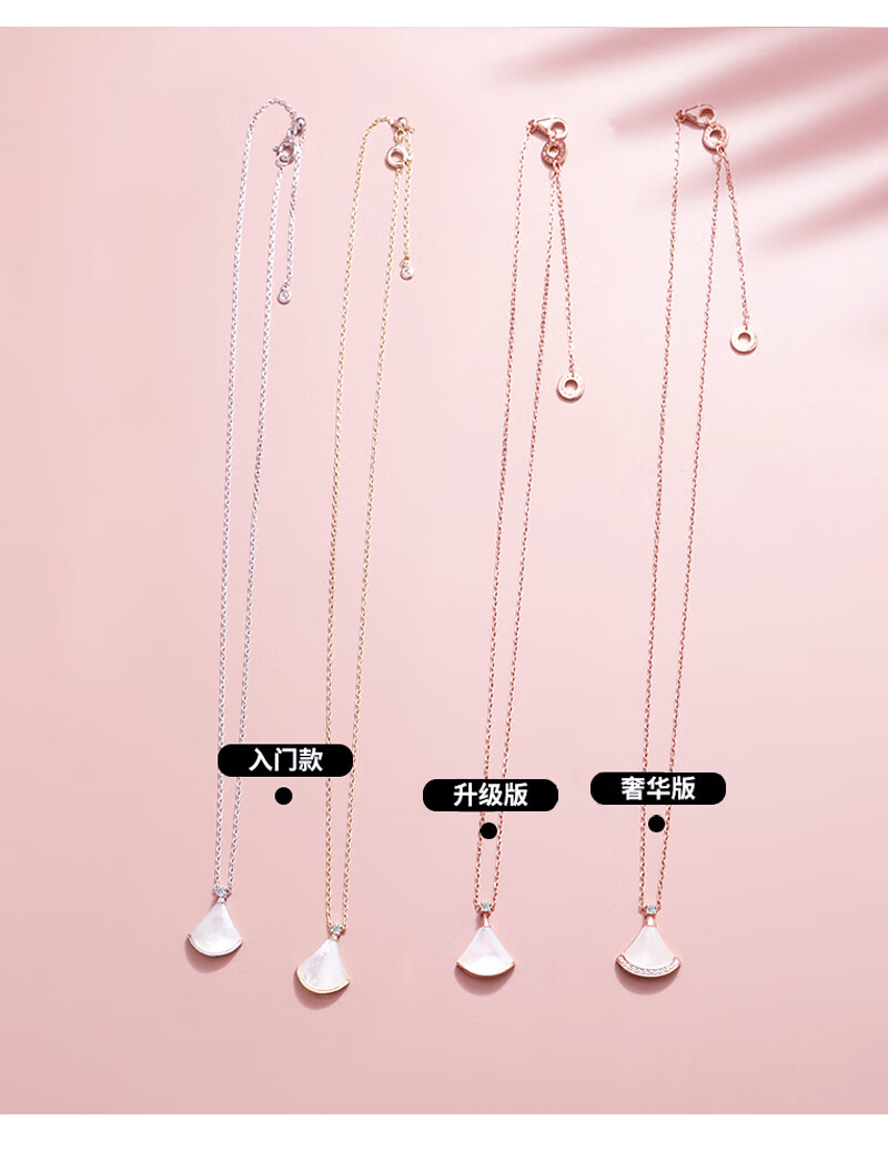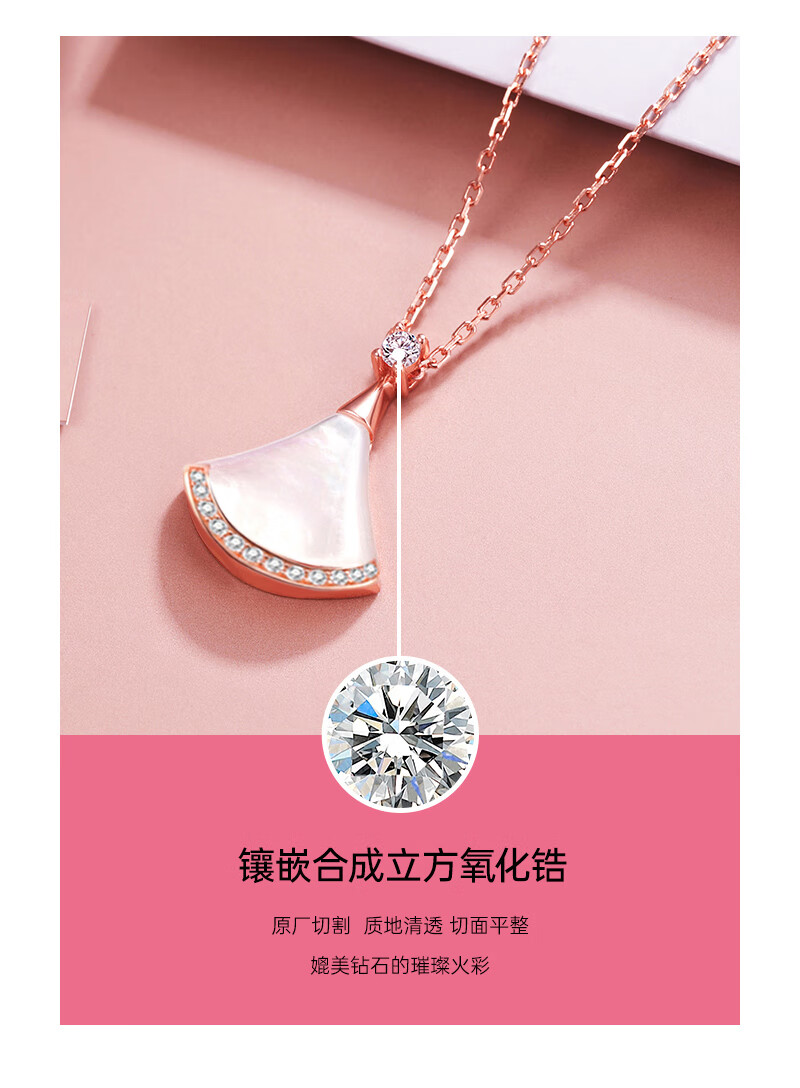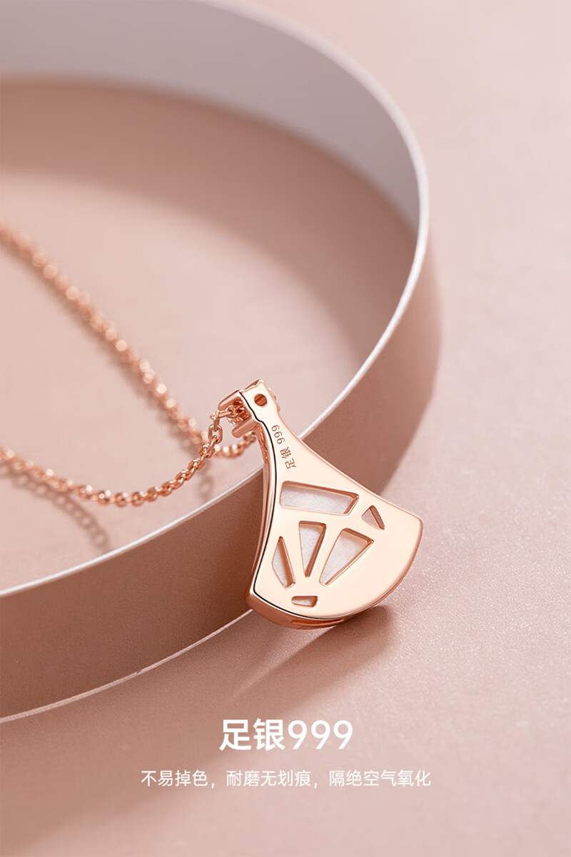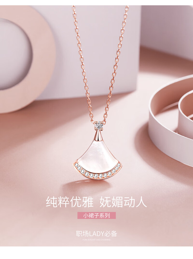 Triskin store model small skirt mother-of-pearl silver necklace women's clavicle chain girl's shell white fan Chinese Valentine's Day gift 999 pure silver-rose gold white mother-of-pearl necklace collection