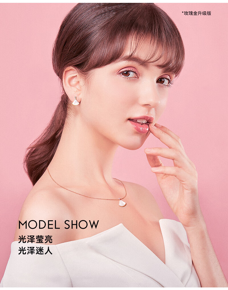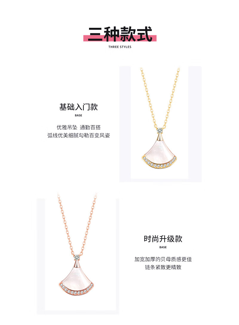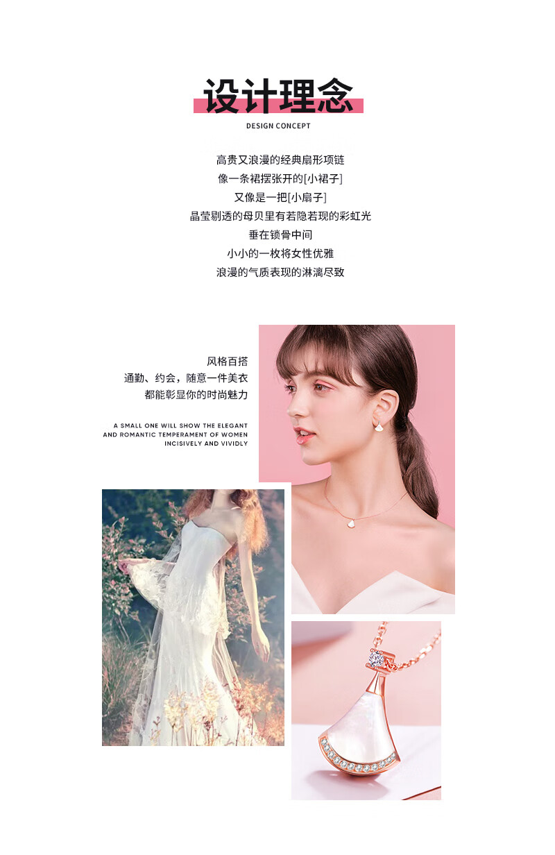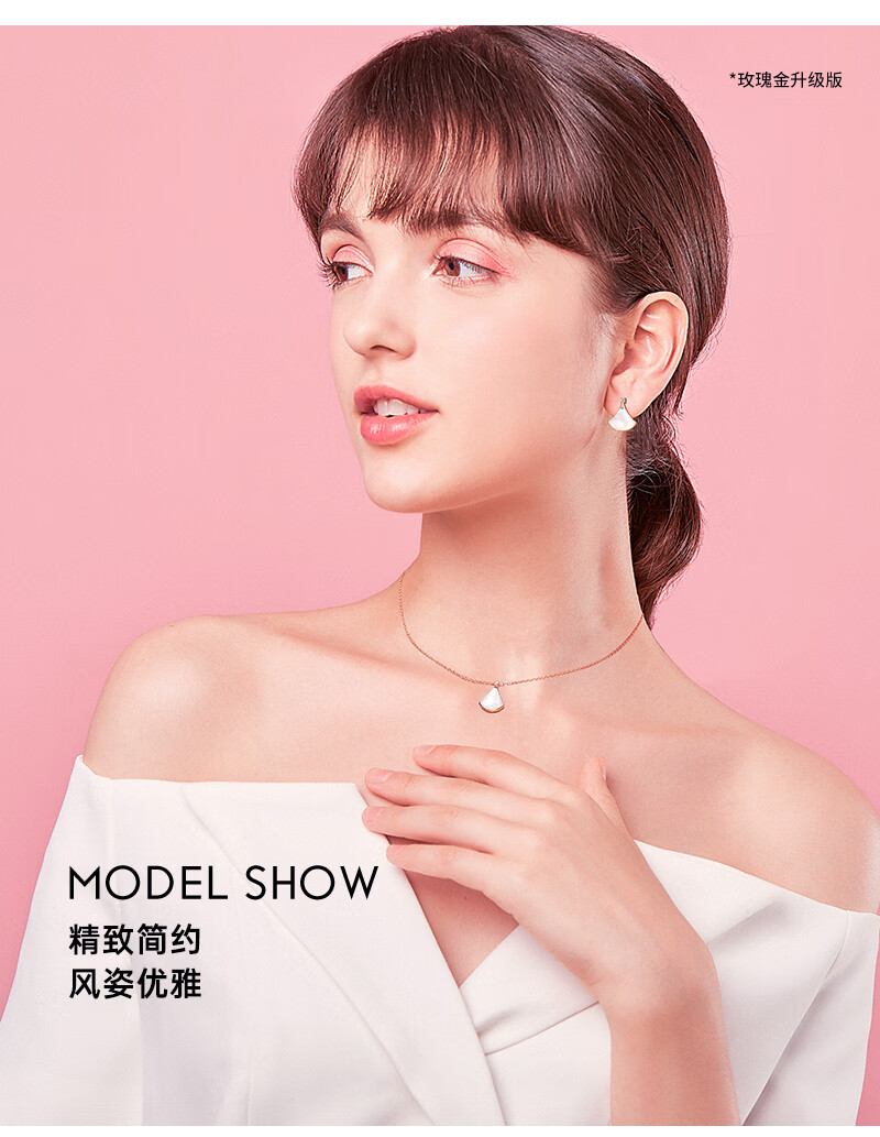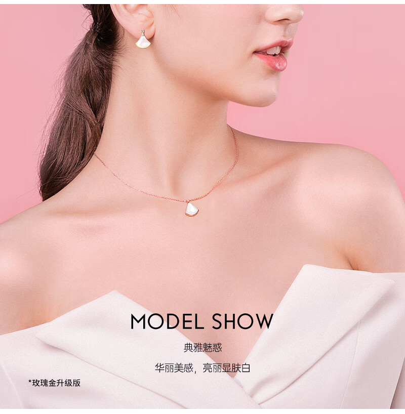 Triskin store model small skirt mother-of-pearl silver necklace women's clavicle chain girl's shell white fan Chinese Valentine's Day gift 999 pure silver-rose gold white mother-of-pearl necklace collection