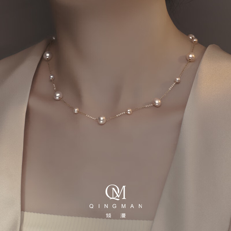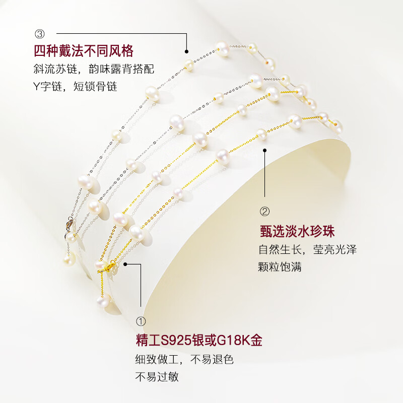 Yulong Gold Store Styles Freshwater Pearl Gypsophila Necklace for Women Light Luxury Niche Design Chinese Valentine's Day Gift 925 Silver Gold Gypsophila Pearl Necklace Main Image