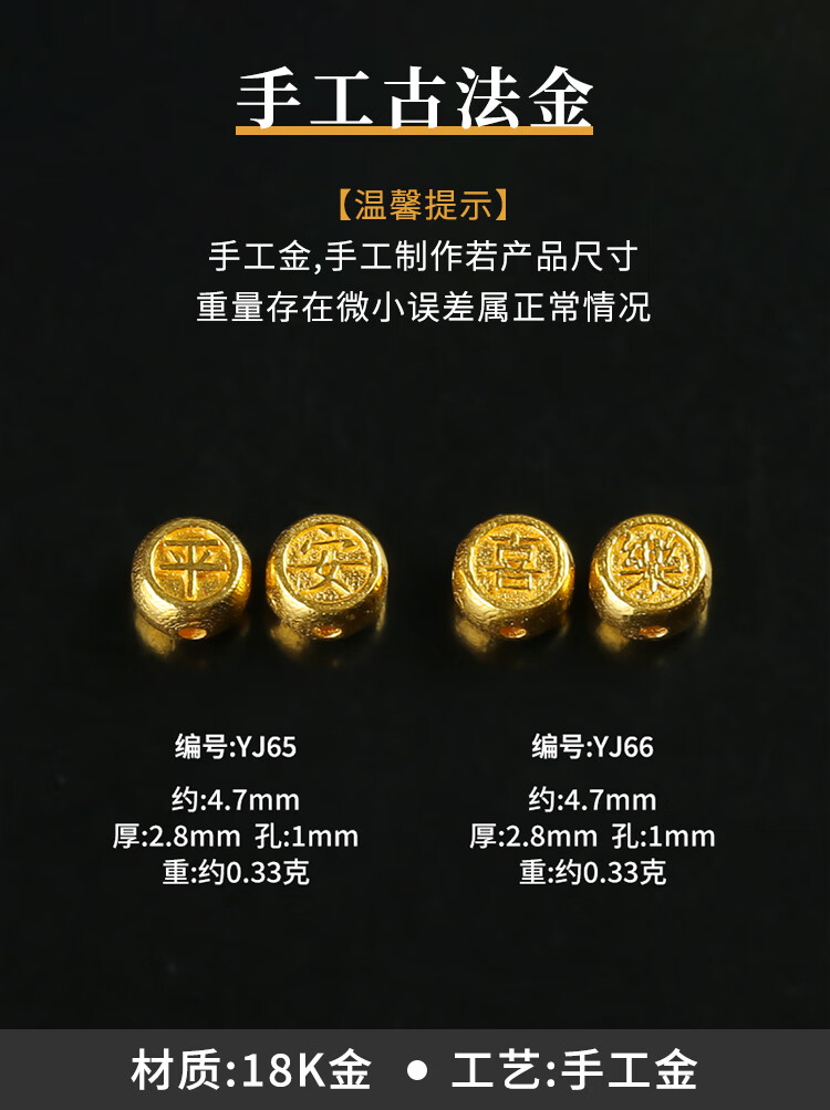 Tris 18k gold ancient gold peace and joy separation beads zodiac year diy handmade jewelry accessories hand rope bracelet bracelet with beads positive and negative safety model/single