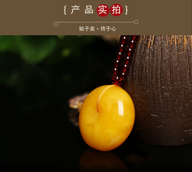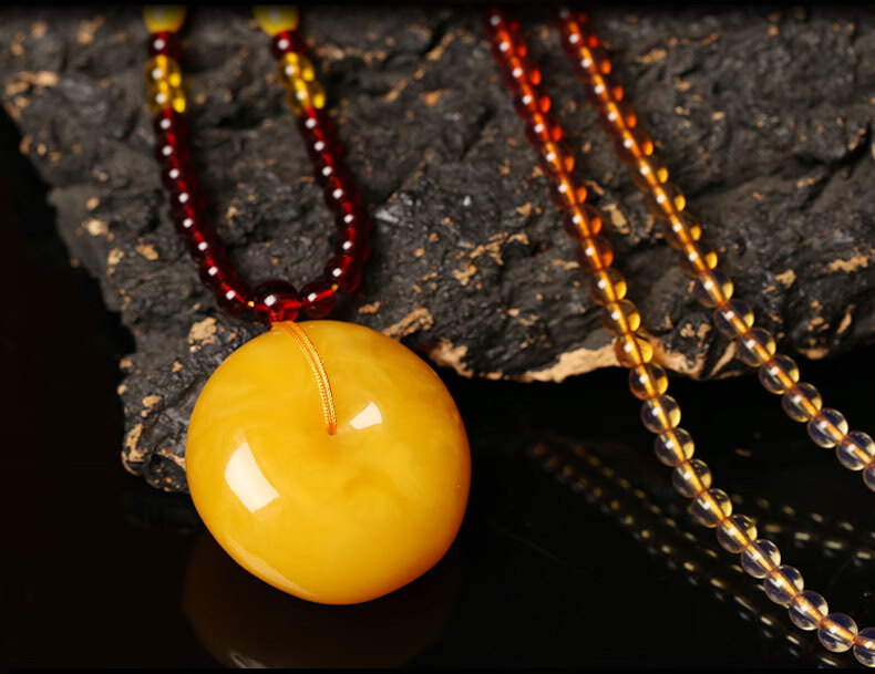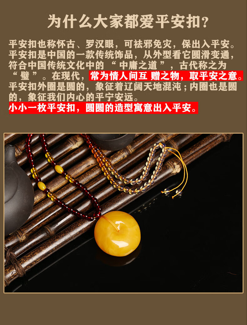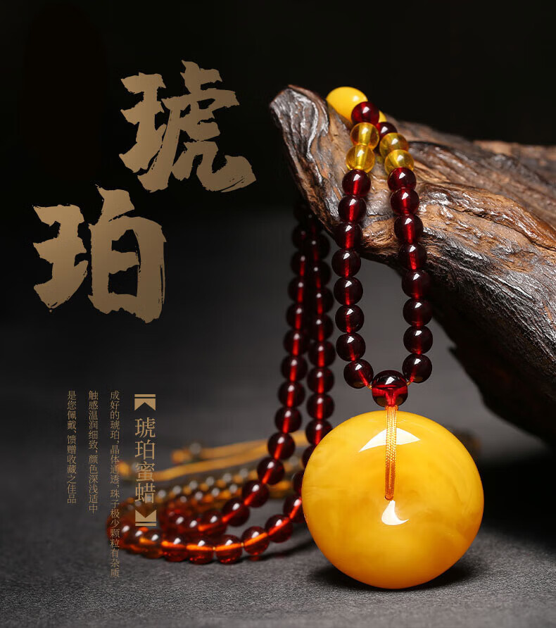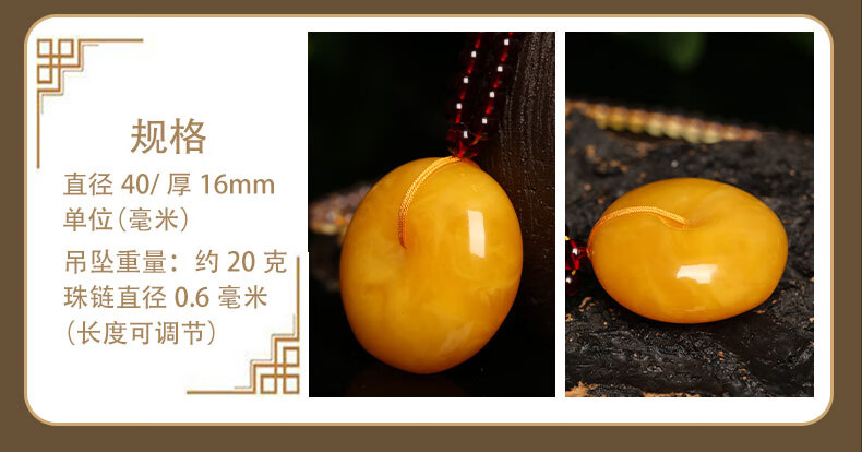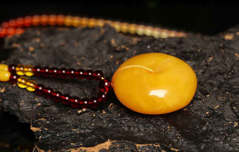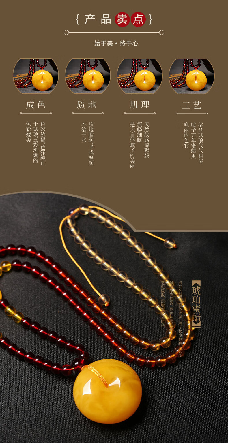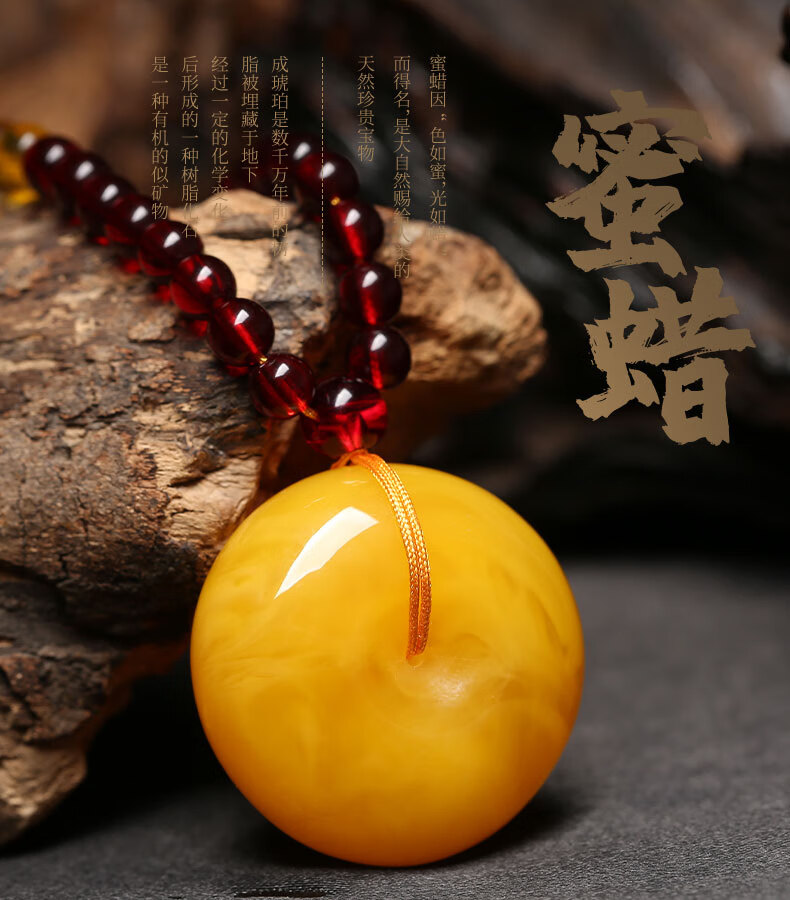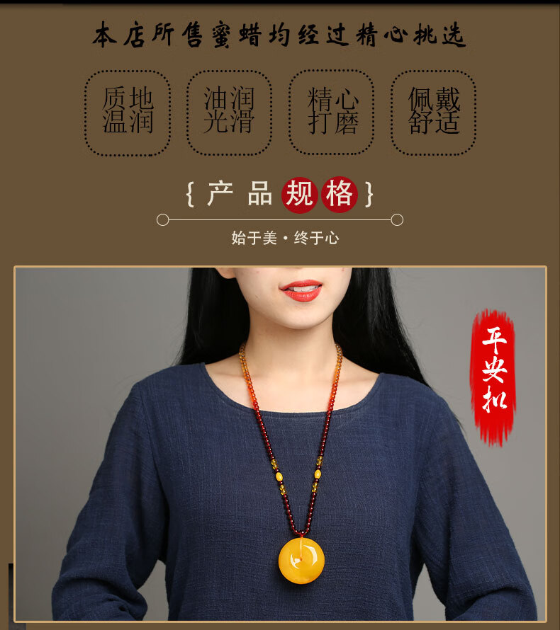 Mengpao original stone chicken fat yellow beeswax peace buckle pendant natural amber necklace old honey sweater chain pendant for men and women couples