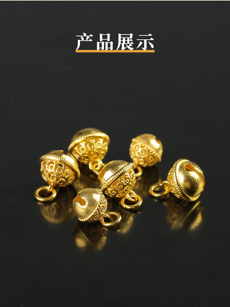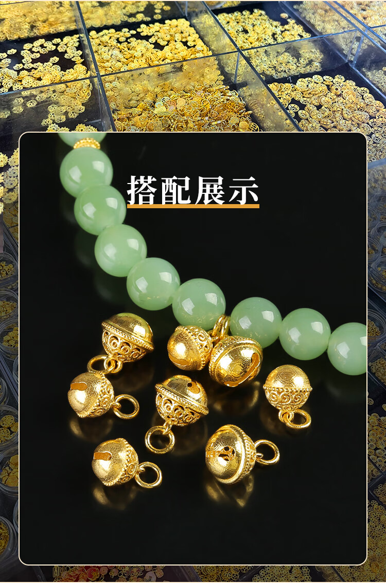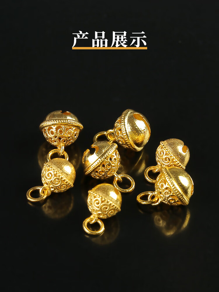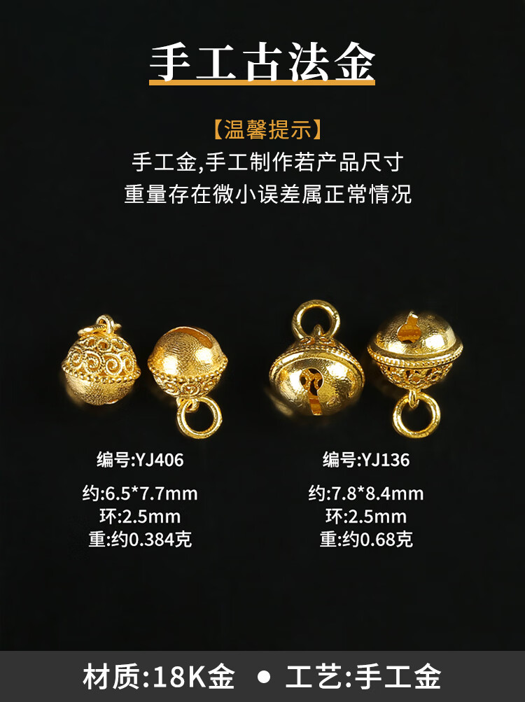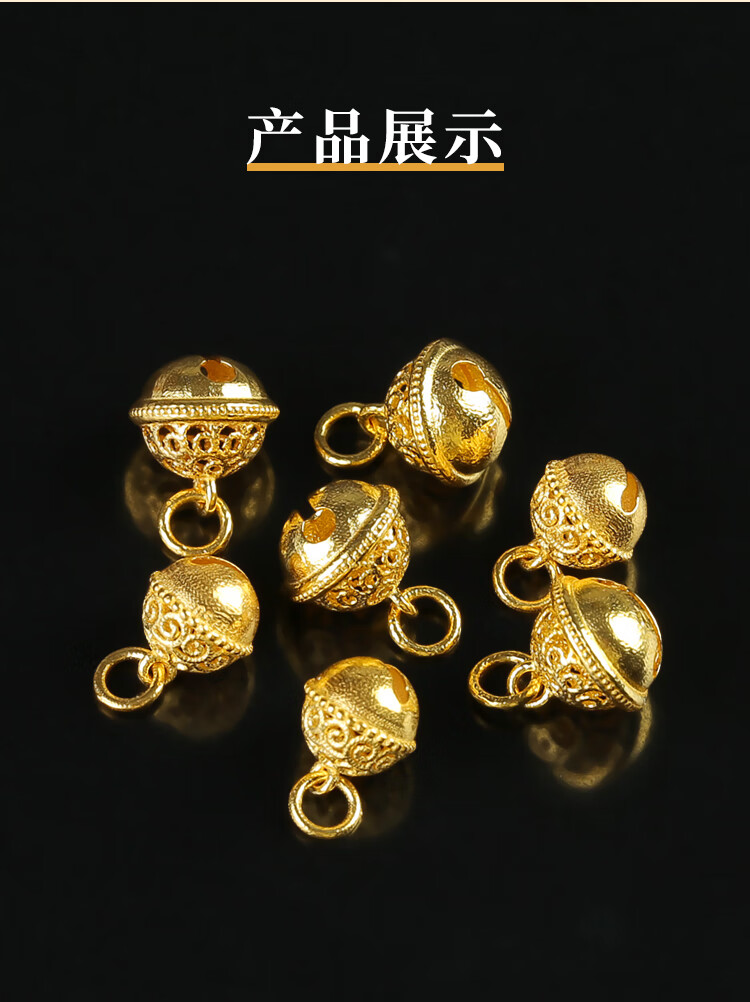 Yulong 18k gold handmade ancient gold bell pendant bracelet pendant diy jewelry material accessories bracelet bracelet with loose beads small / single