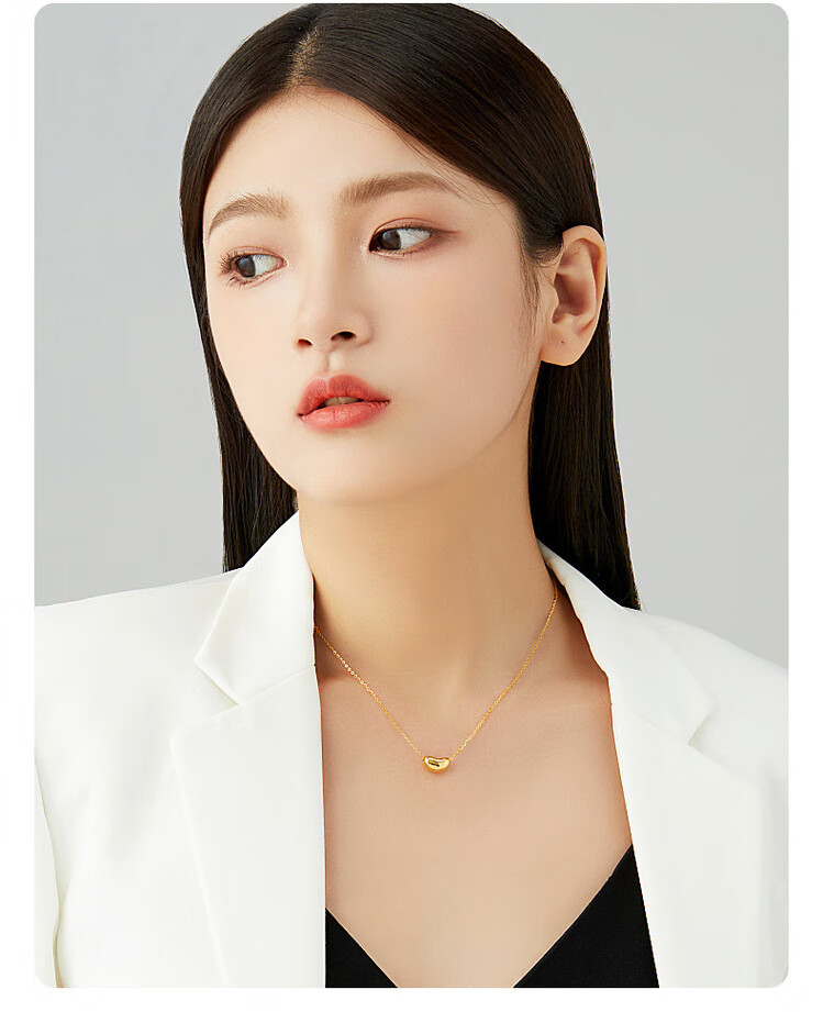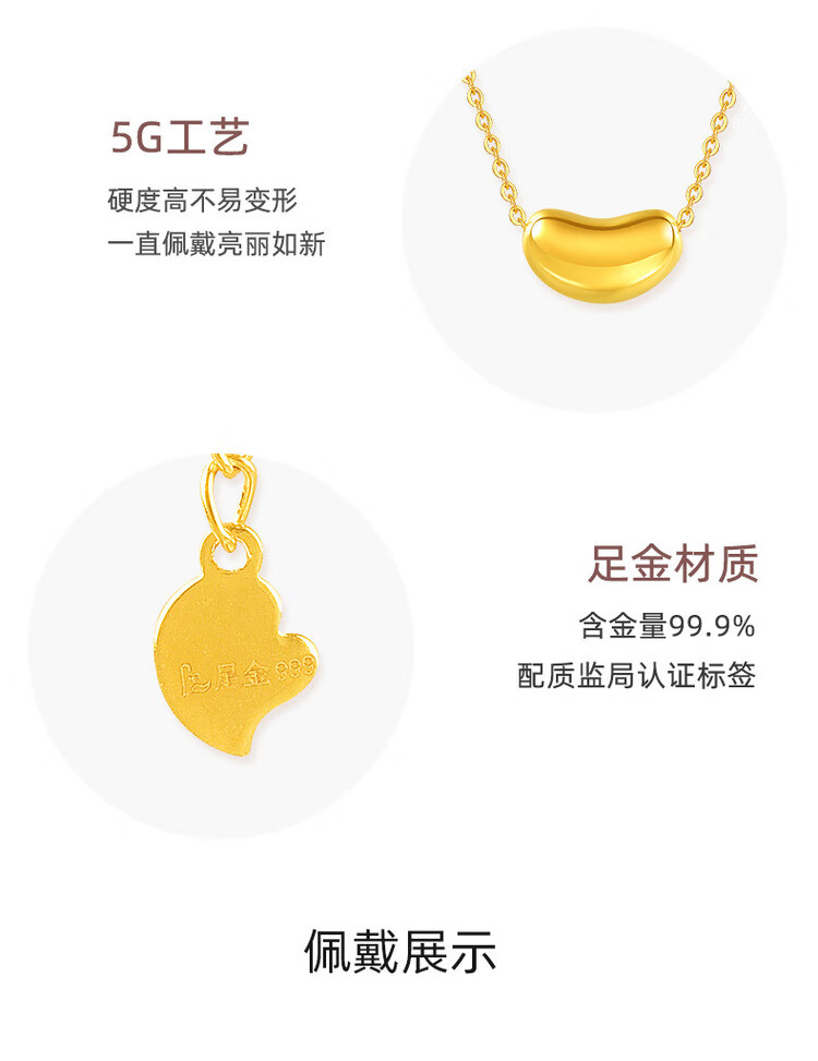 Prodigal Heart 999 Pure Gold Acacia Bean Pendant 3D Hard Gold Transfer Bead Necklace Gold Gold Bean Couple Gift Betting Large Edition 9 Large Edition 999 Pure Gold Red Bean + 18K Gold Necklace Set Chain