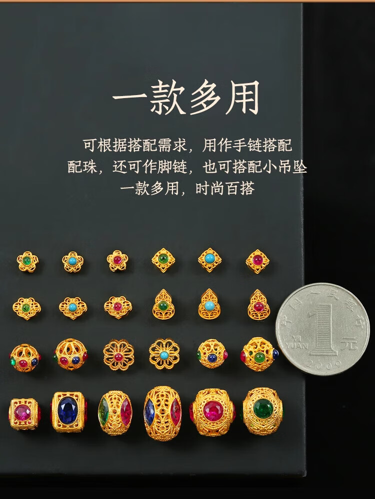 Mengpao 18K gold old gold gold dragonfly eyes hollow separated beads loose beads handmade DIY bracelet bracelet necklace accessories accessories gourd gourd turquoise style/piece (No. GZ76)