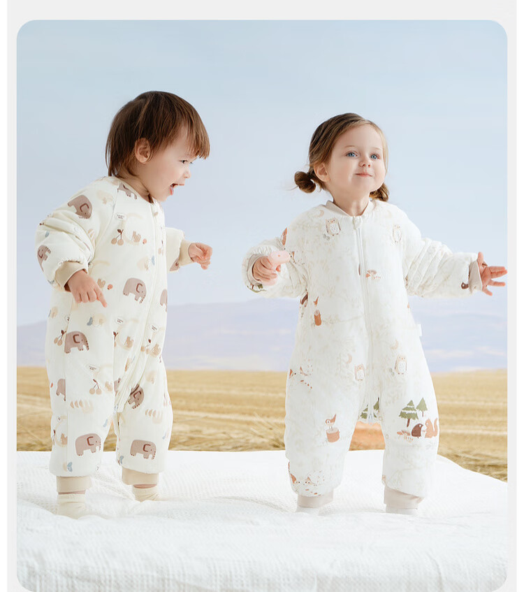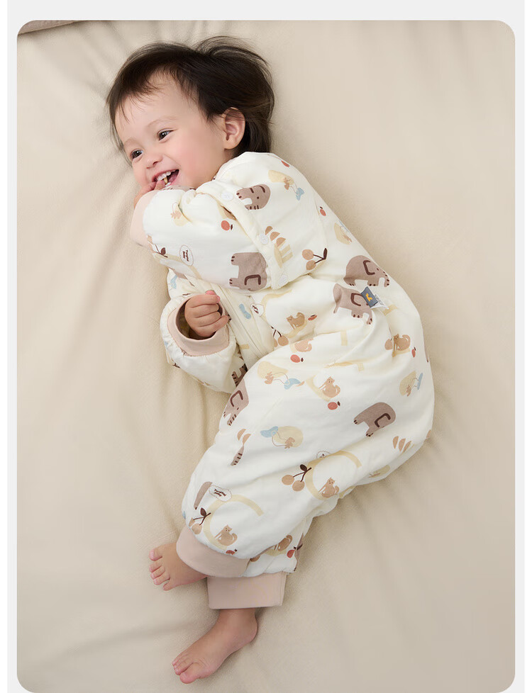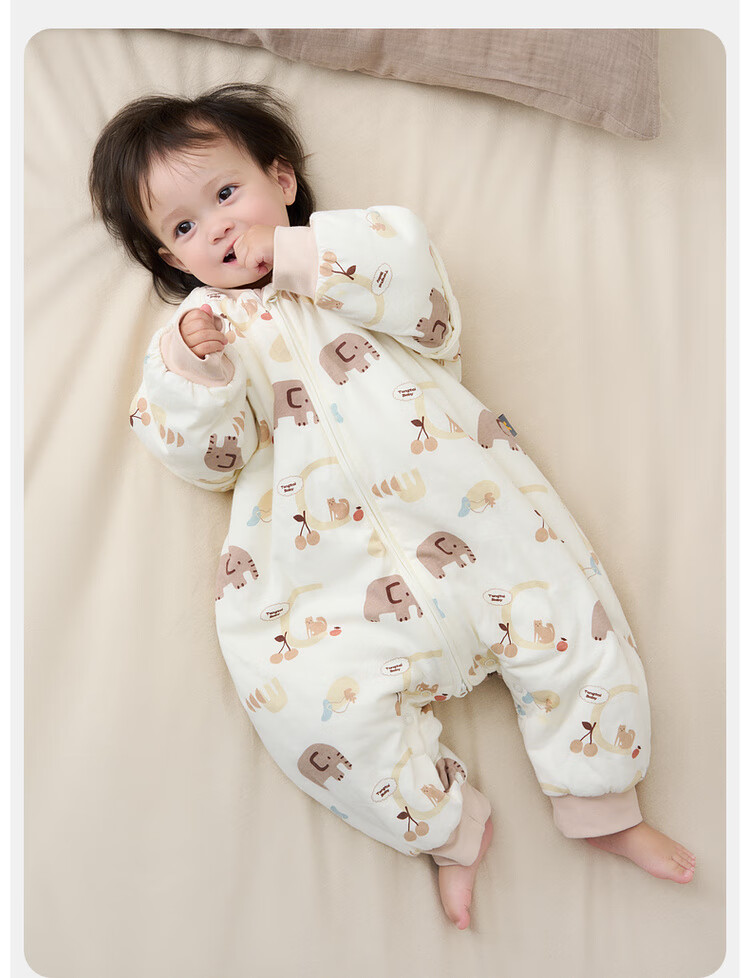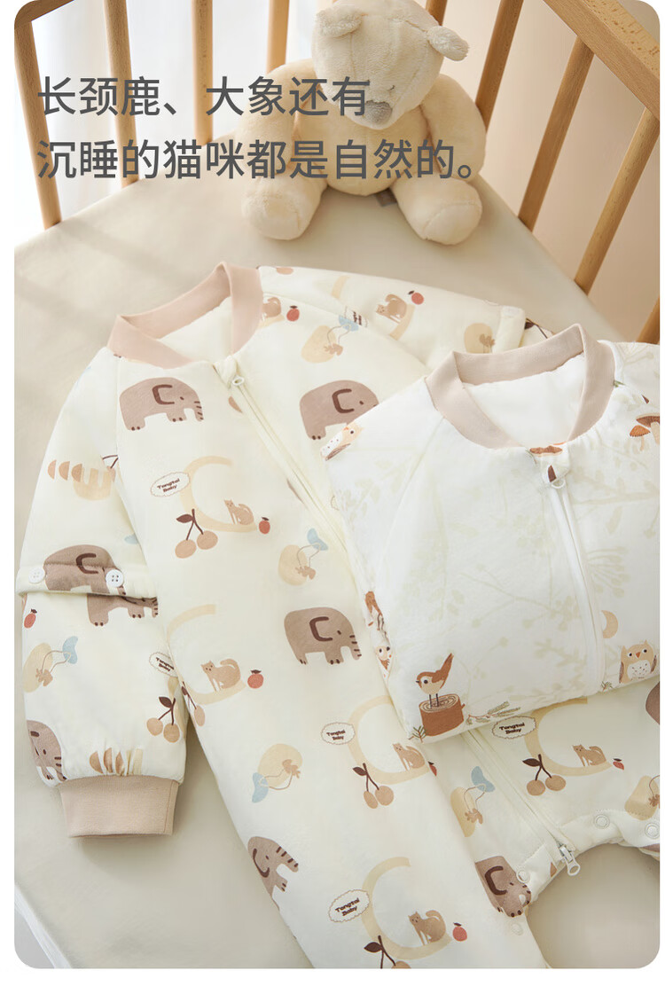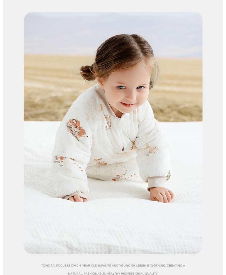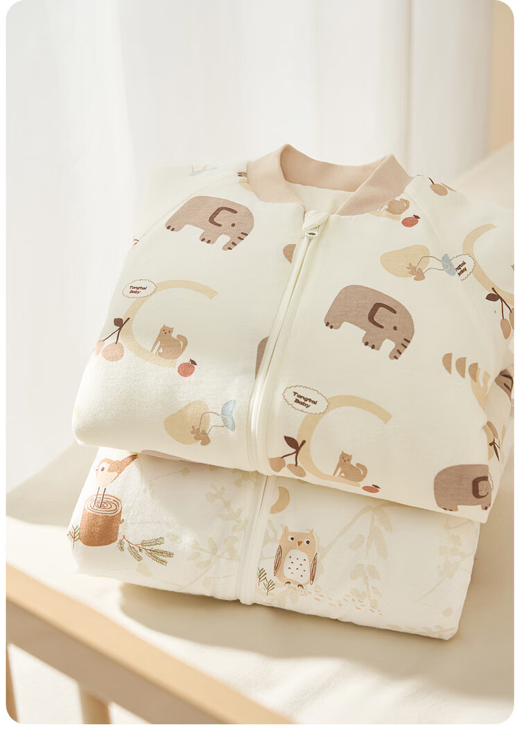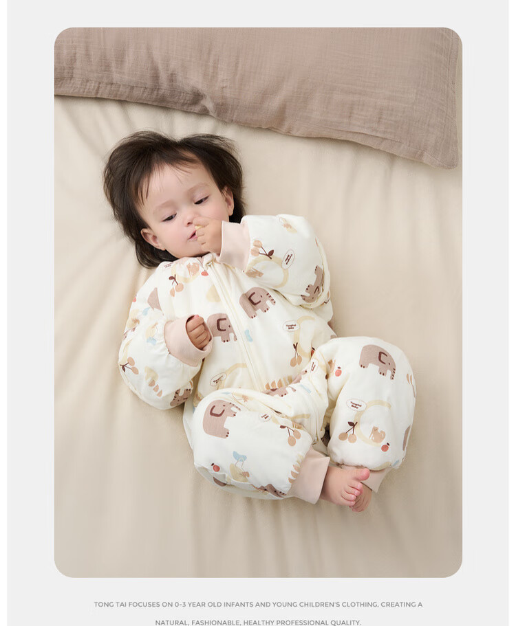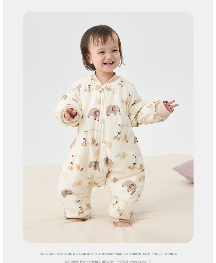 Tongtai baby sleeping bag autumn and winter baby anti-jump children constant temperature pure cotton anti-kicking quilt thin cotton one-piece pajamas brown 90cm