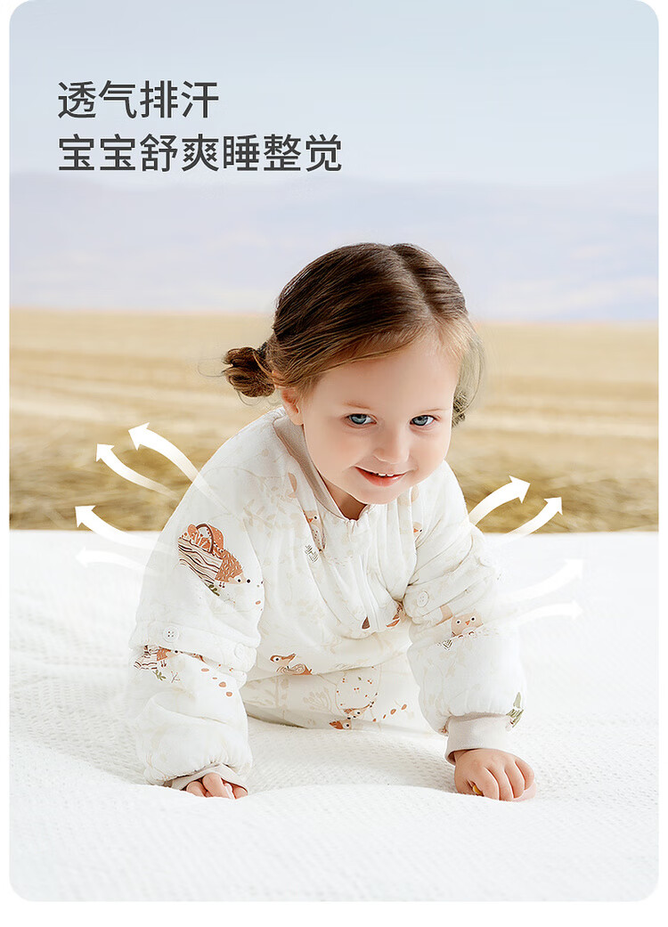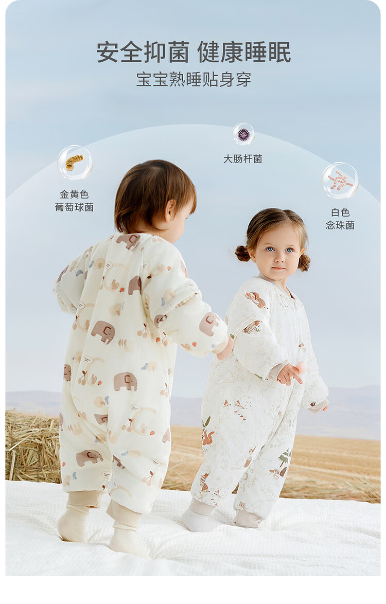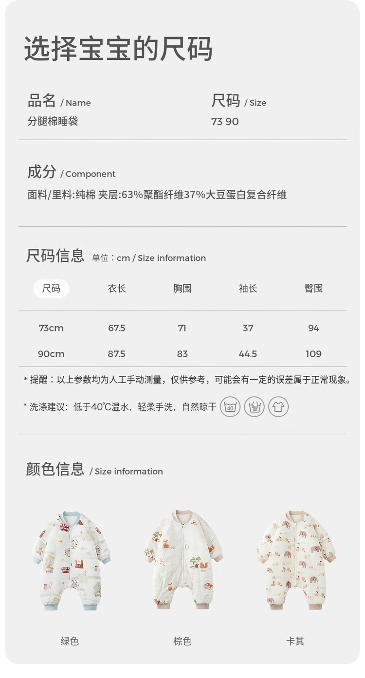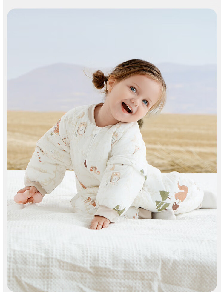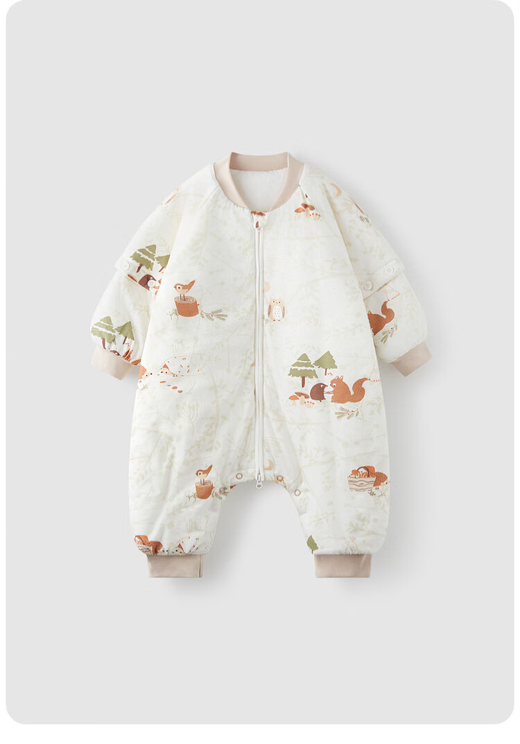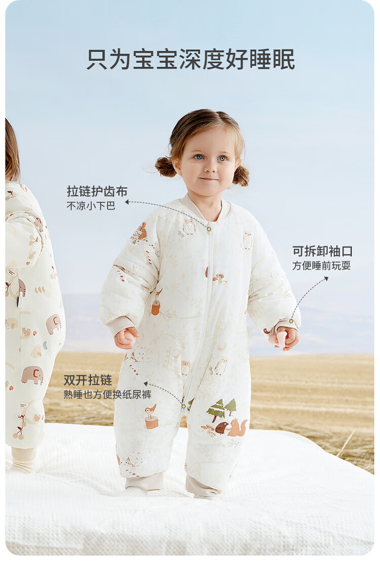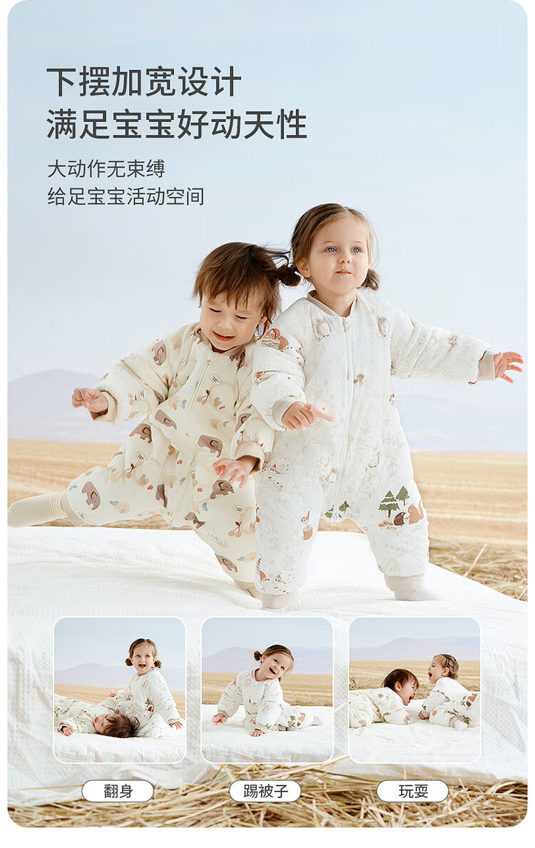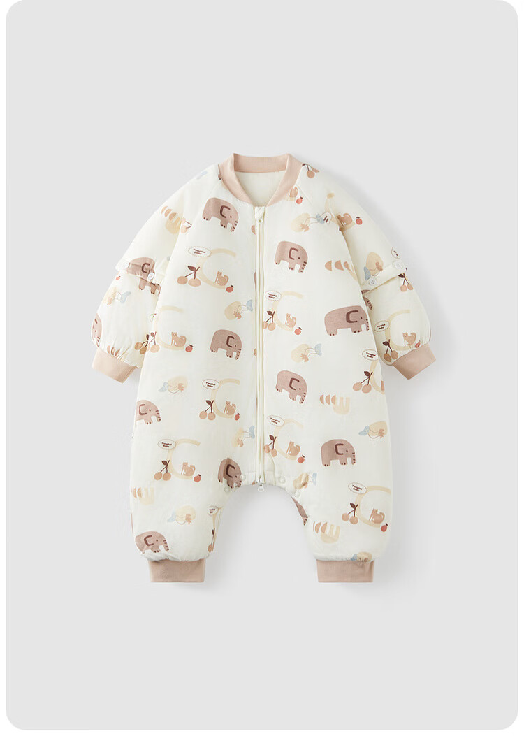 Tongtai baby sleeping bag autumn and winter baby anti-jump children constant temperature pure cotton anti-kicking quilt thin cotton one-piece pajamas brown 90cm