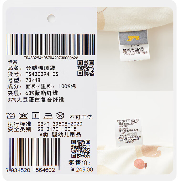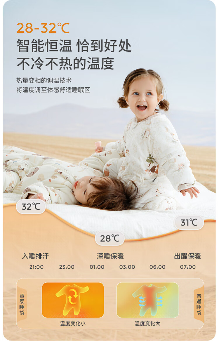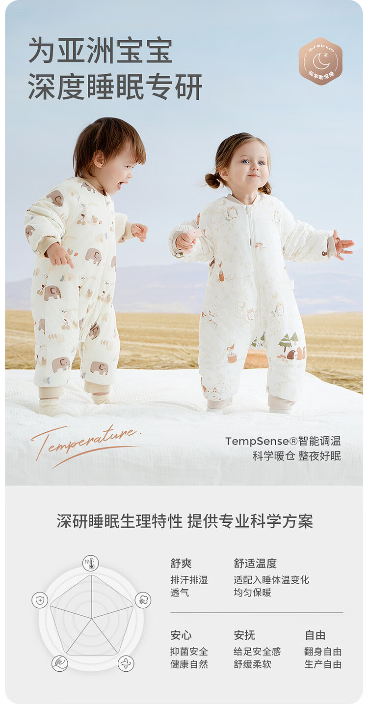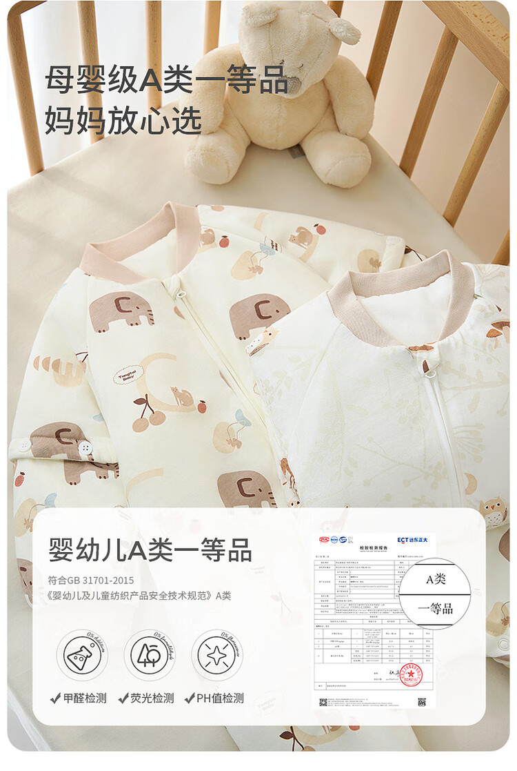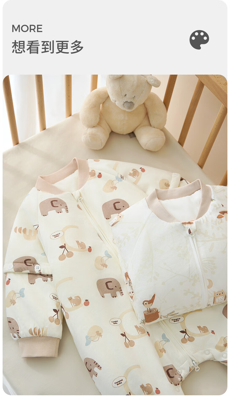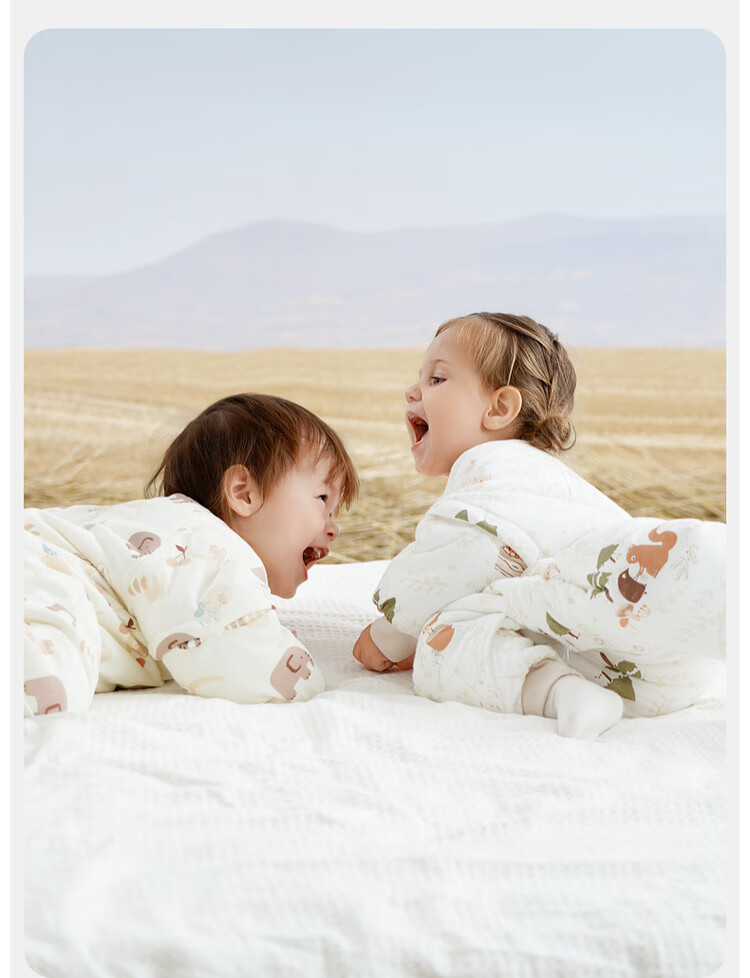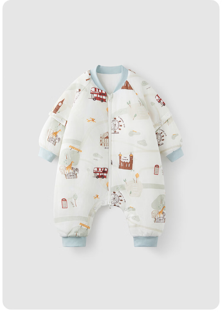 Tongtai baby sleeping bag autumn and winter baby anti-jump children constant temperature pure cotton anti-kicking quilt thin cotton one-piece pajamas brown 90cm