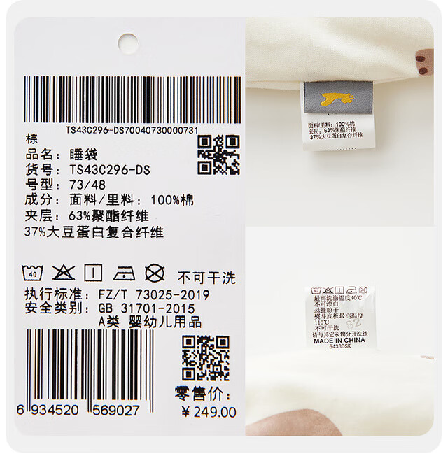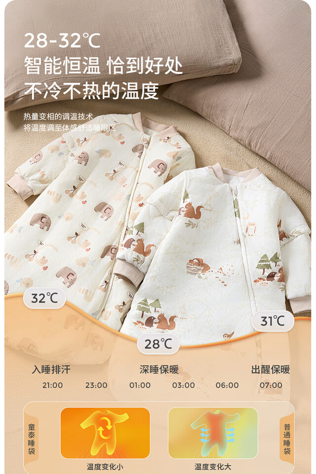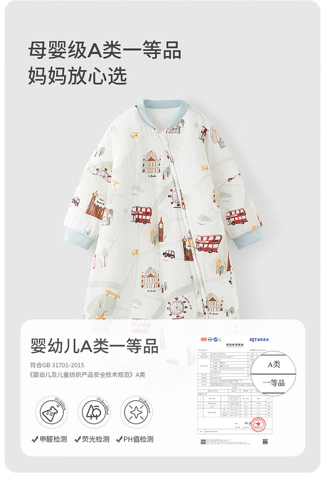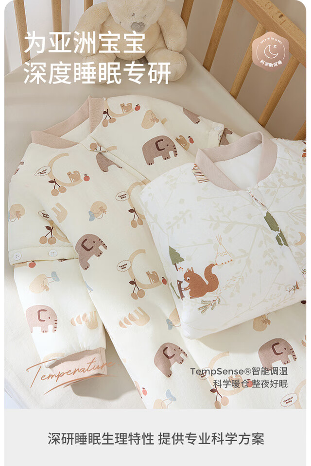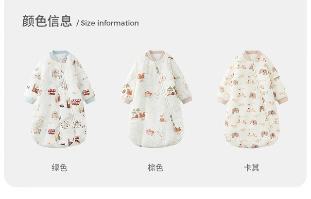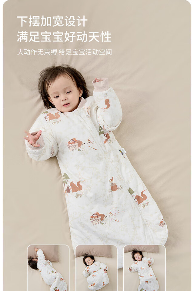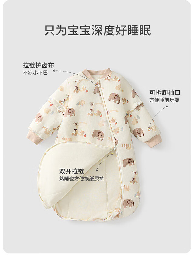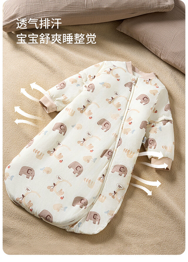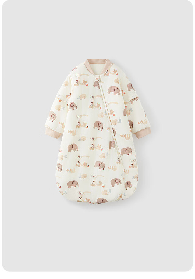Tongtai baby sleeping bag autumn and winter pure cotton quilted baby one-piece pajamas constant temperature antibacterial anti-jumping anti-kicking quilt brown 73cm