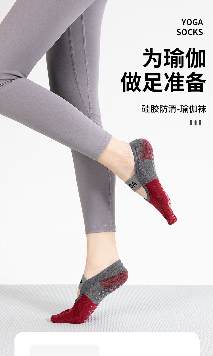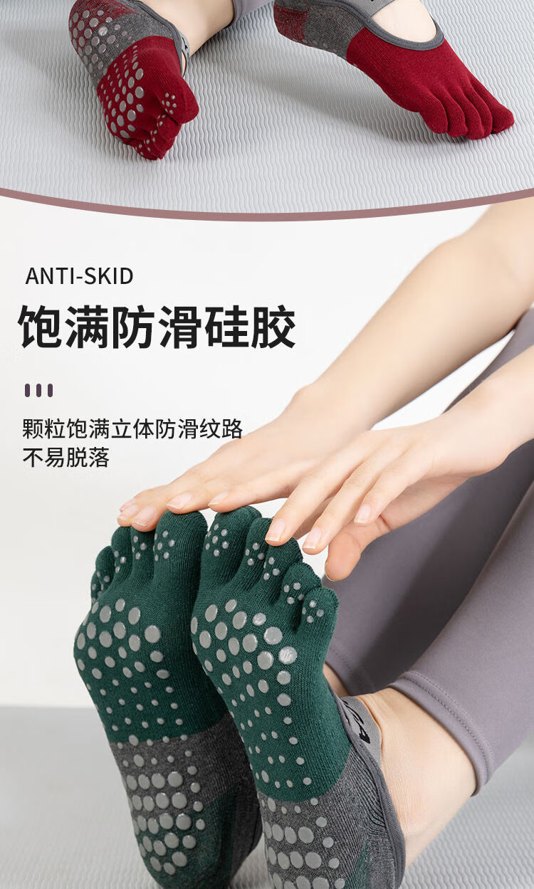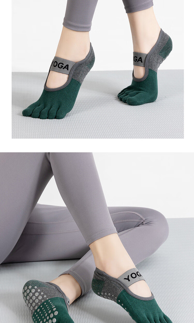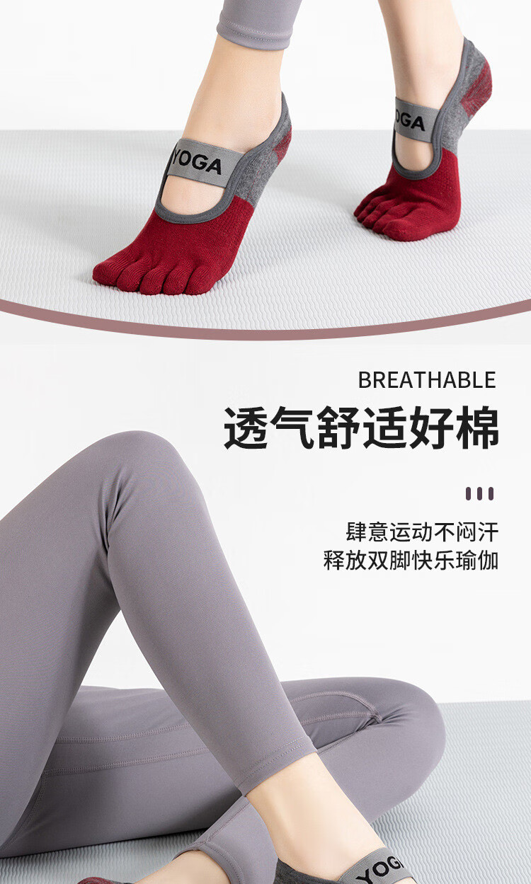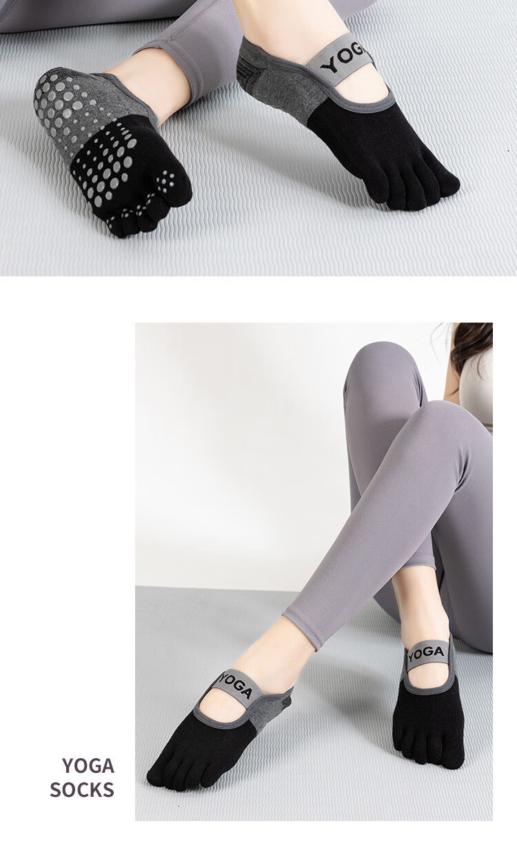 Jincheng five-finger yoga socks professional non-slip indoor sports socks Pilates socks autumn and winter floor socks dance pure cotton split toe gray two pairs -YW001 One size fits all 34-40