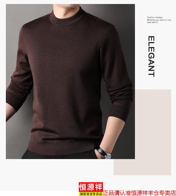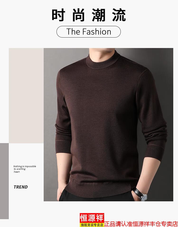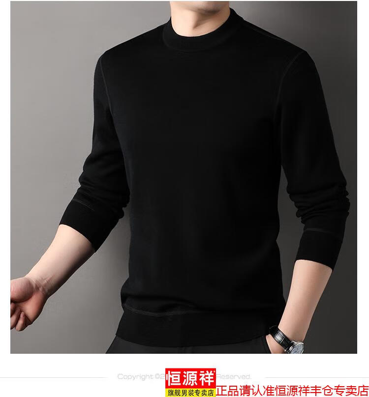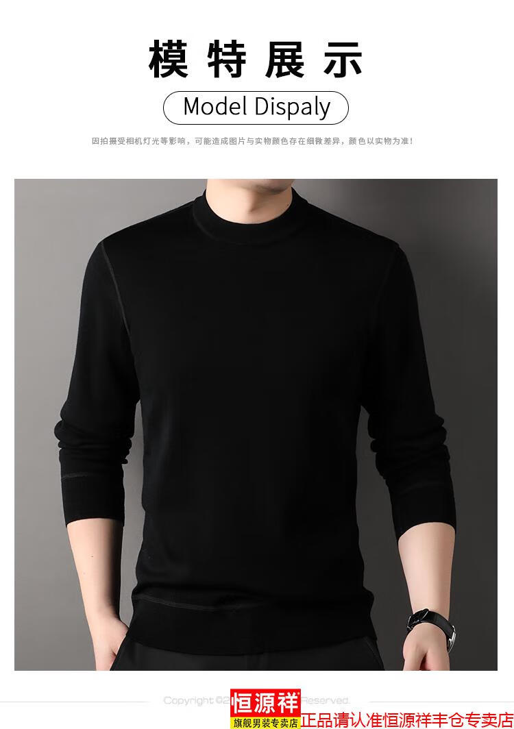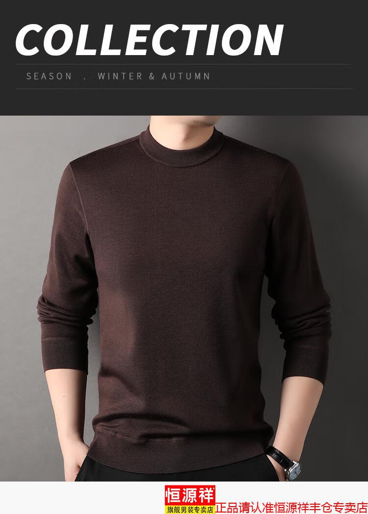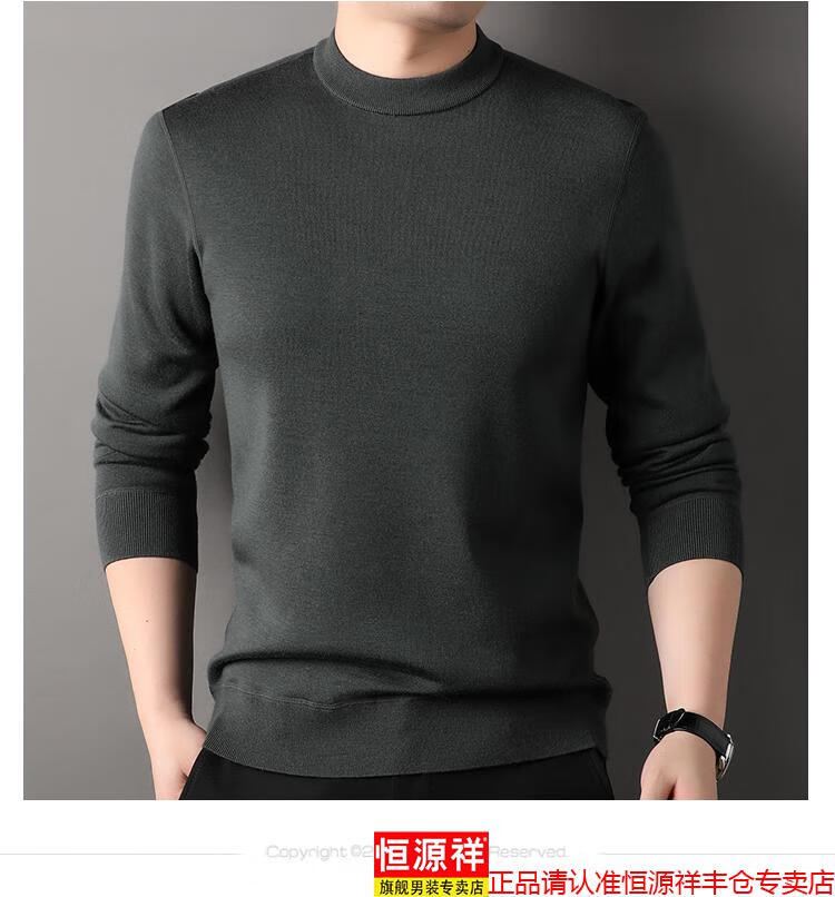Hengyuanxiang light luxury high-end winter velvet thickened woolen sweater for men solid color half turtleneck pure wool machine washable men's sweater 170/88A
