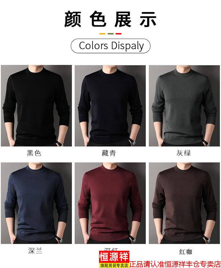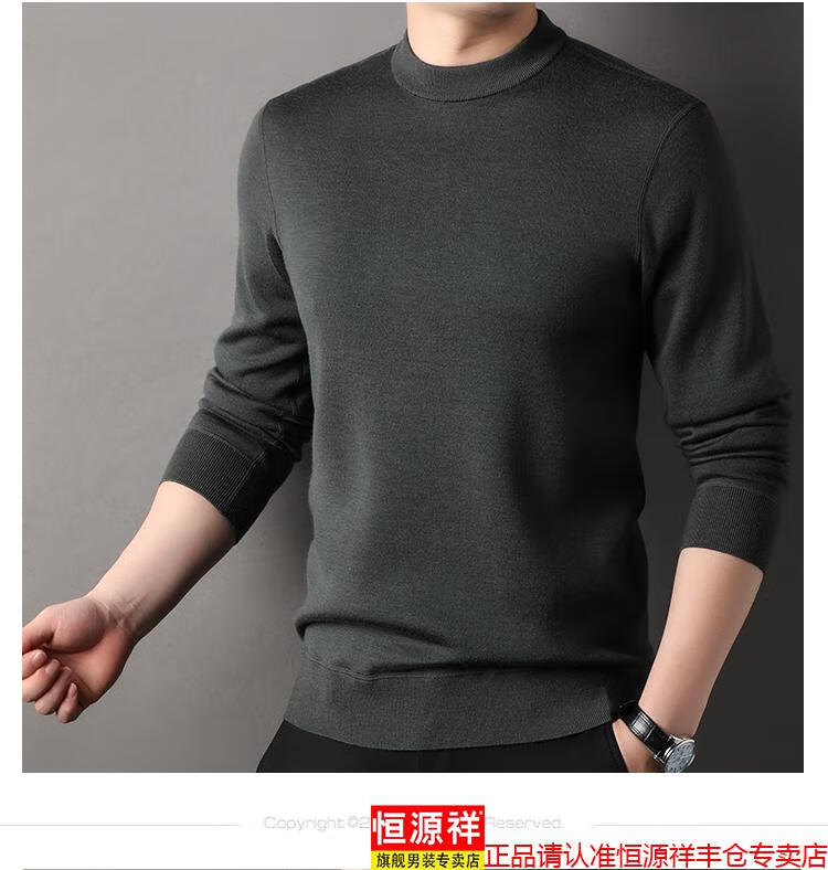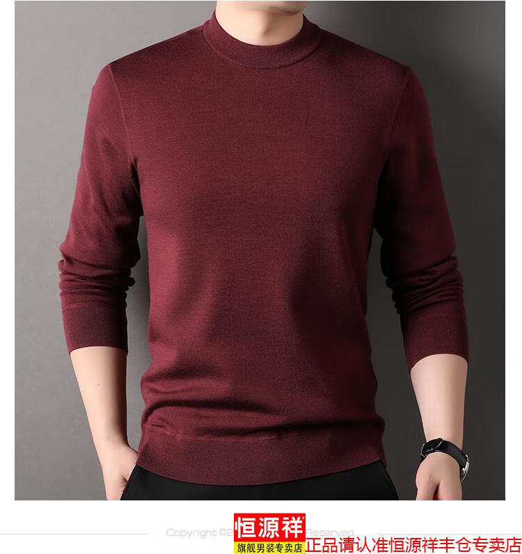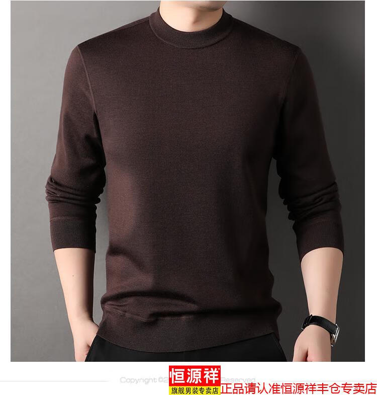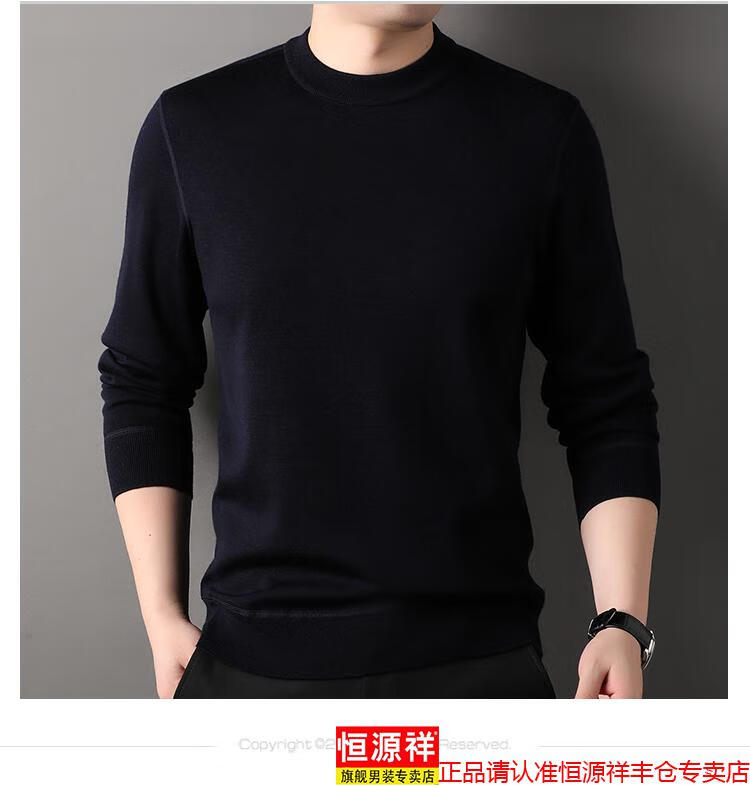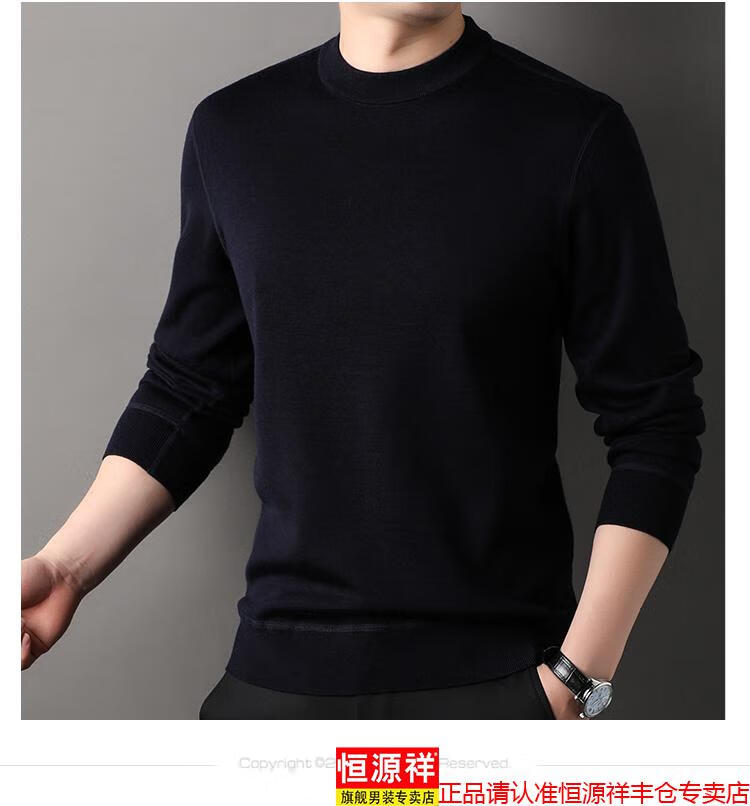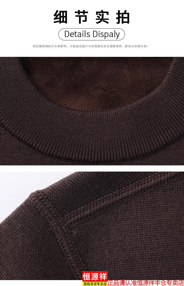 Hengyuanxiang light luxury high-end winter velvet thickened woolen sweater for men solid color half turtleneck pure wool machine washable men's sweater 170/88A