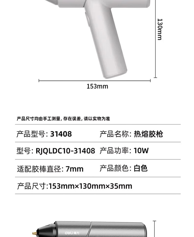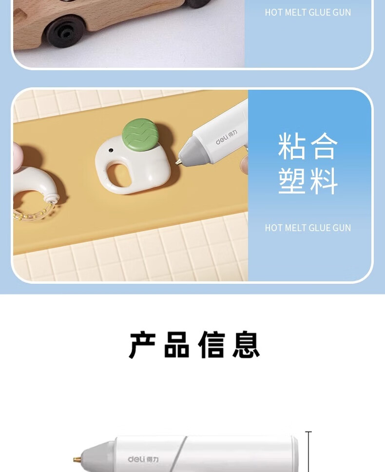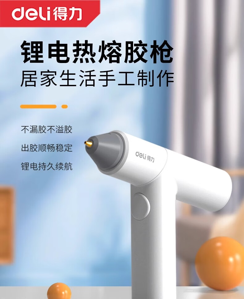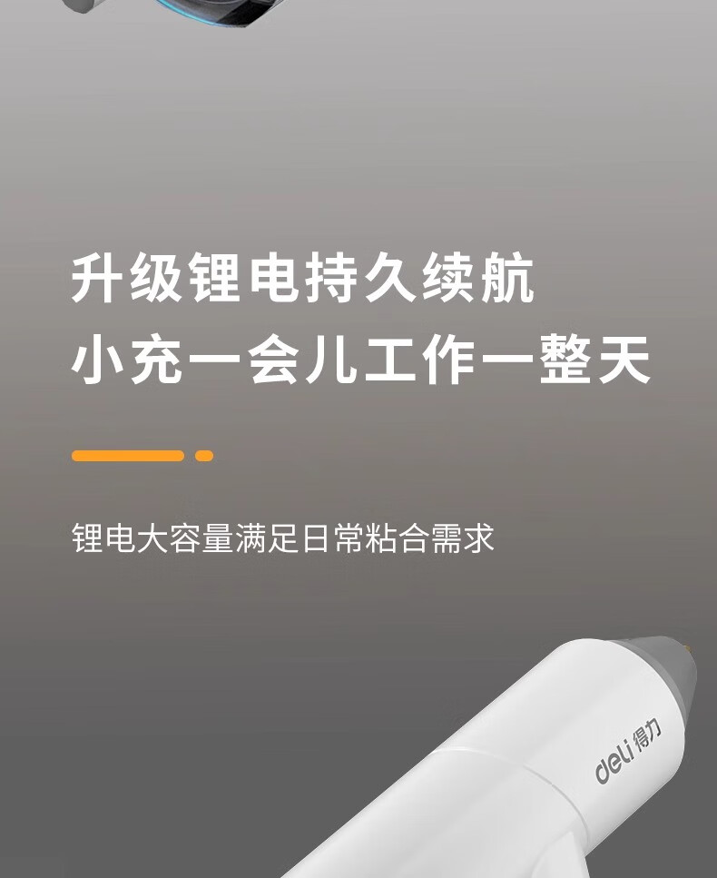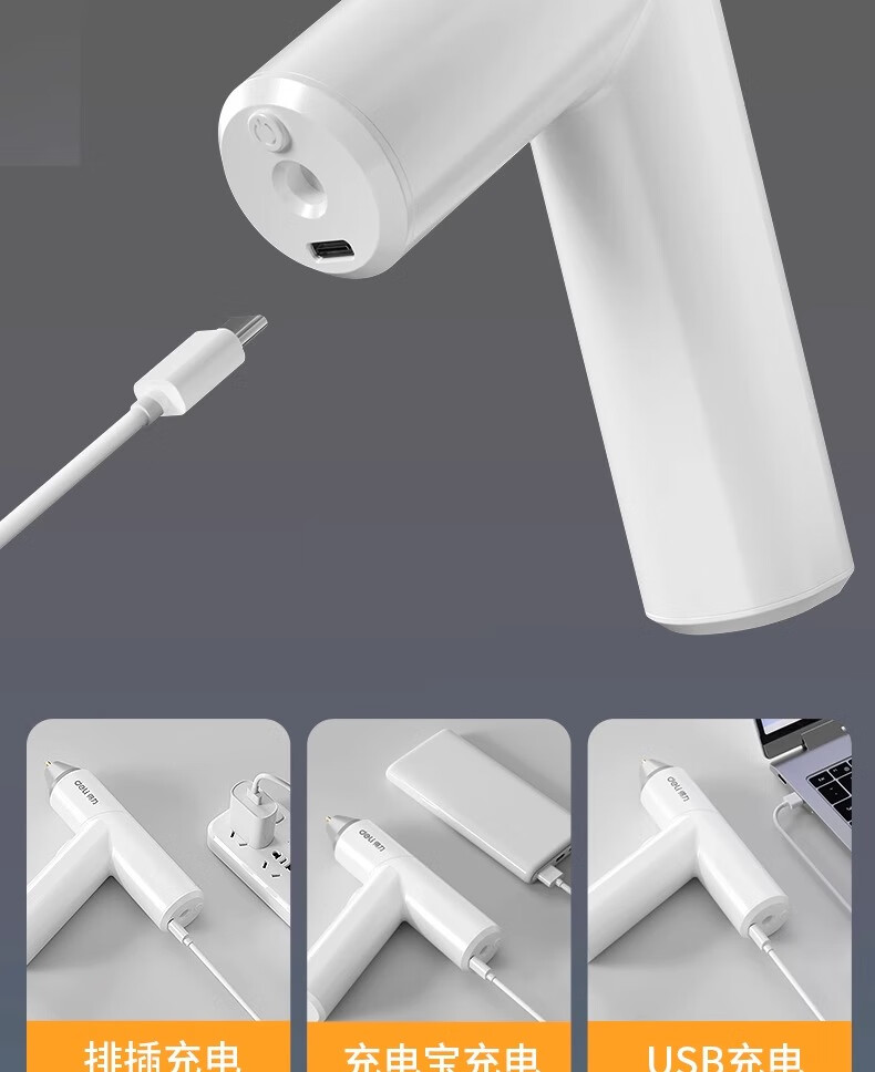 Deli hot melt glue gun wireless children's handmade diy household hot melt glue stick rechargeable small electric hot melt gun lithium battery wireless model white + 60 glue sticks + powder pack