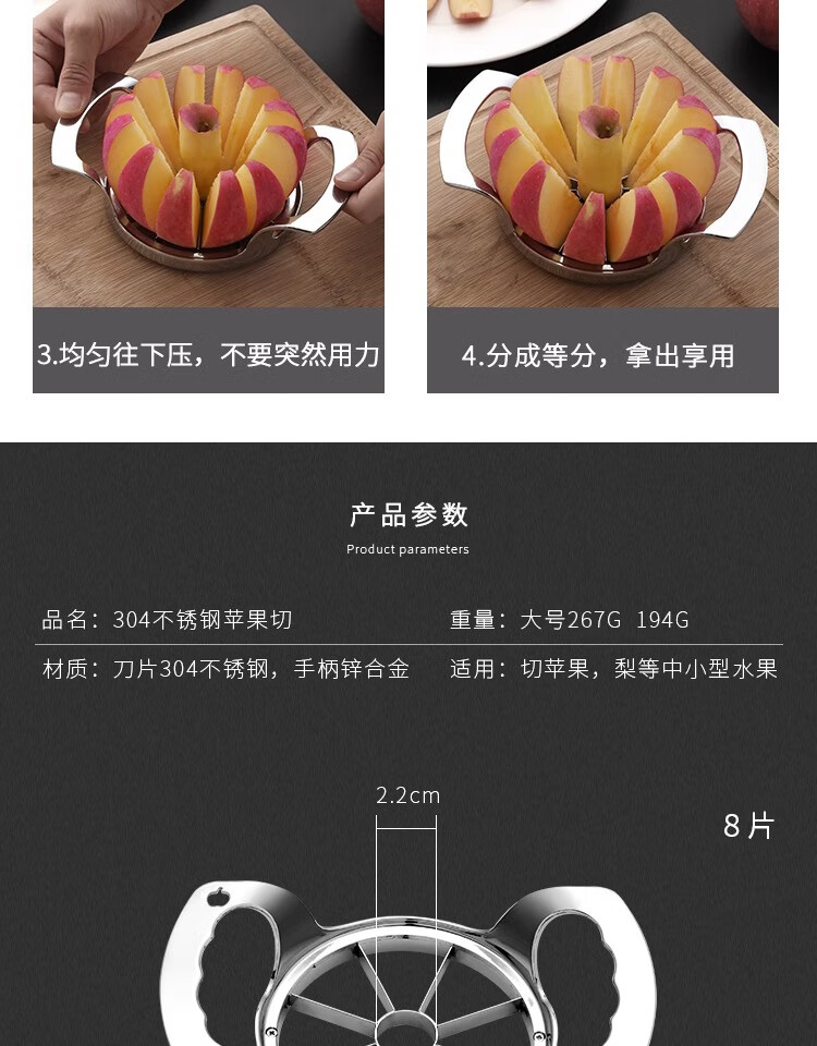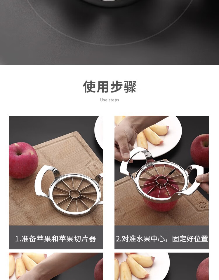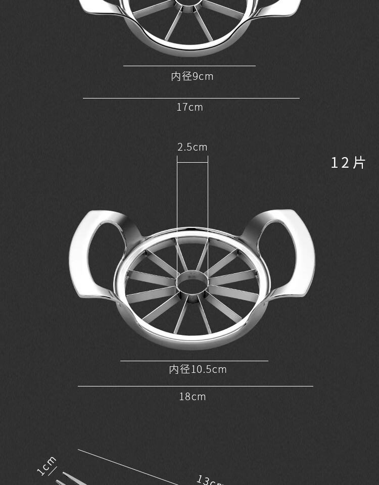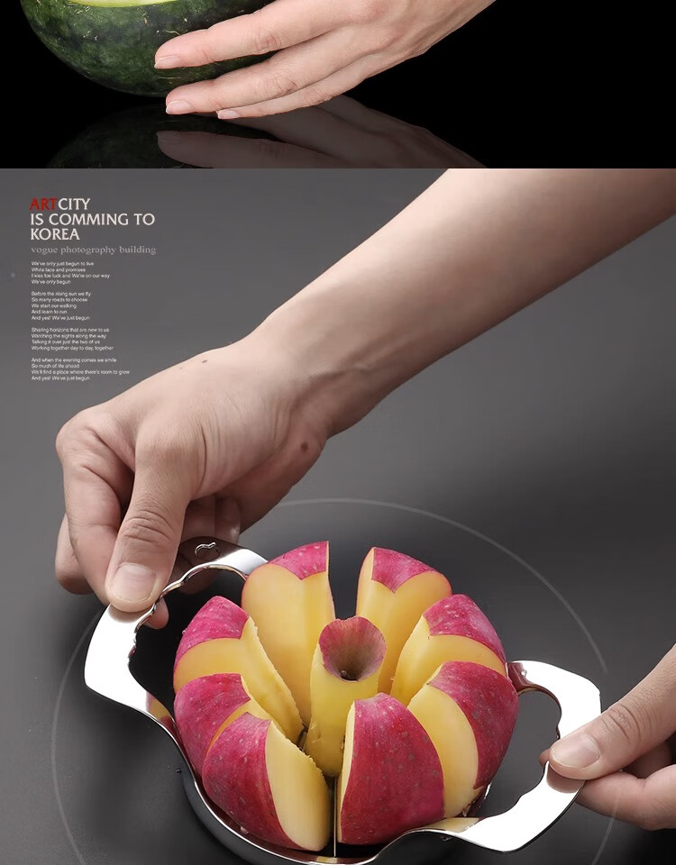 Tongnian 304 stainless steel apple cutting tool, orange fruit cutting tool, watermelon fruit cutting tool, fruit splitting, slicing and corer, German style reinforced/12 petals + 5 fruit forks + open