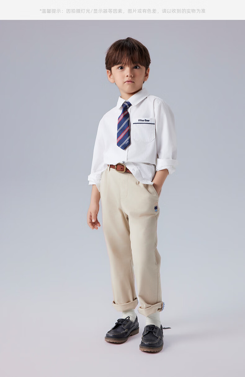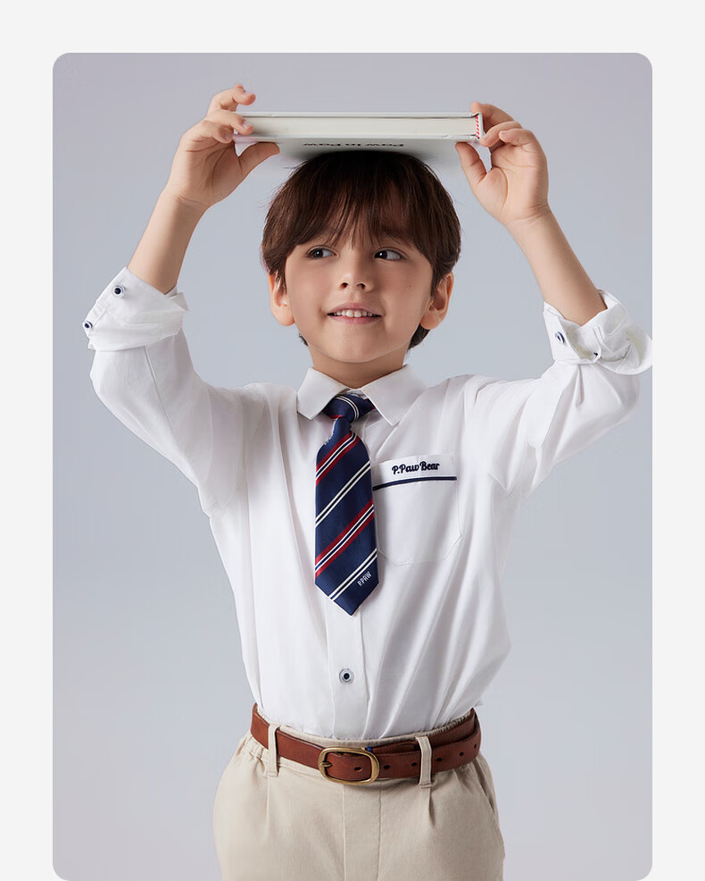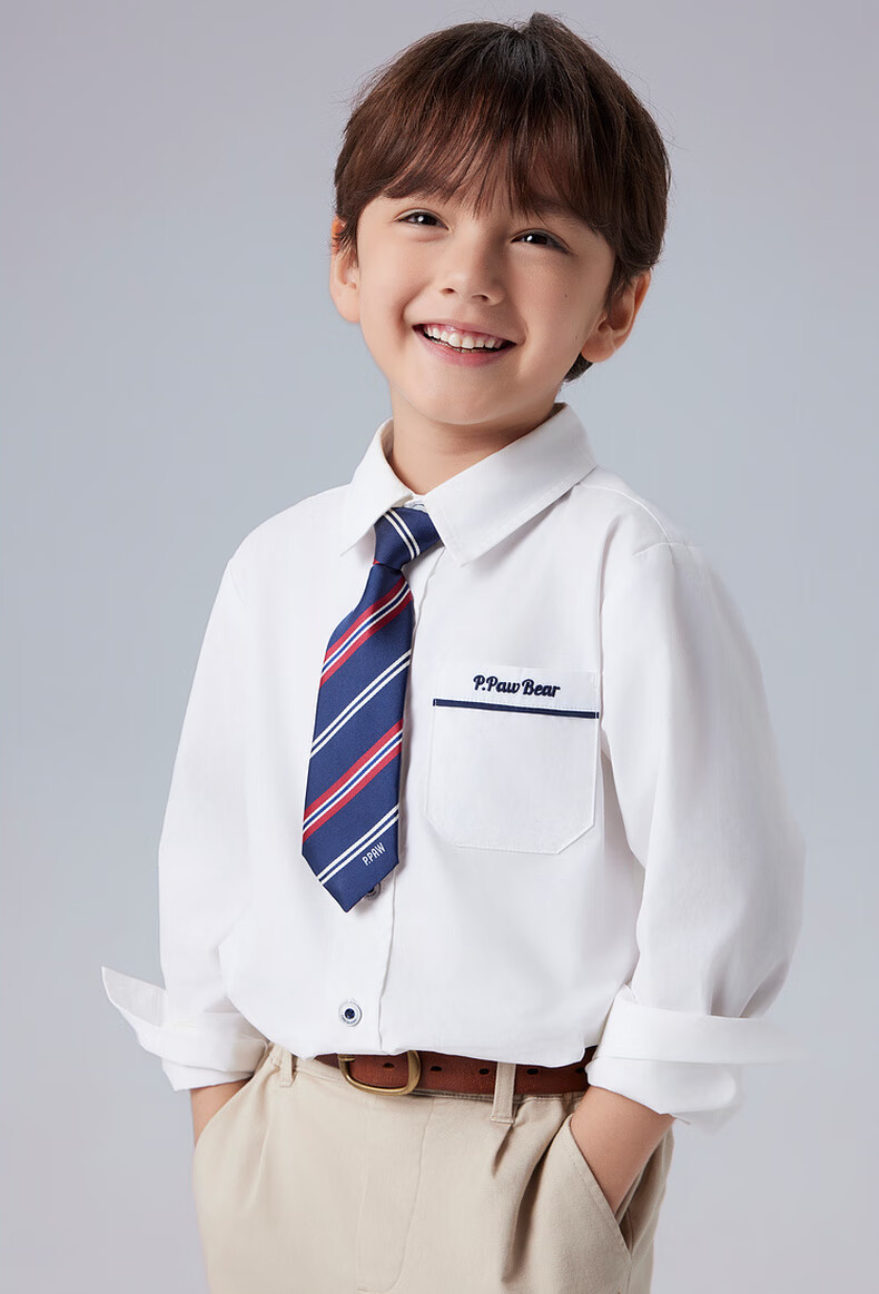 PawinPaw Shopping Mall Bear Children's Clothing 25 Spring and Autumn New Boys' Tie Cotton Shirt Dress Ivory/39 110 cm