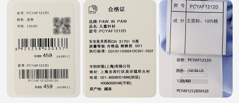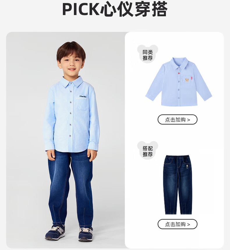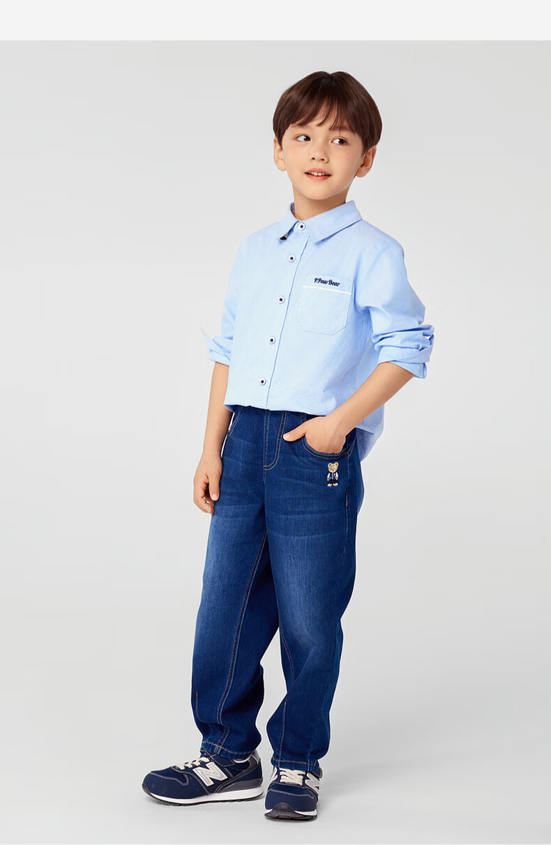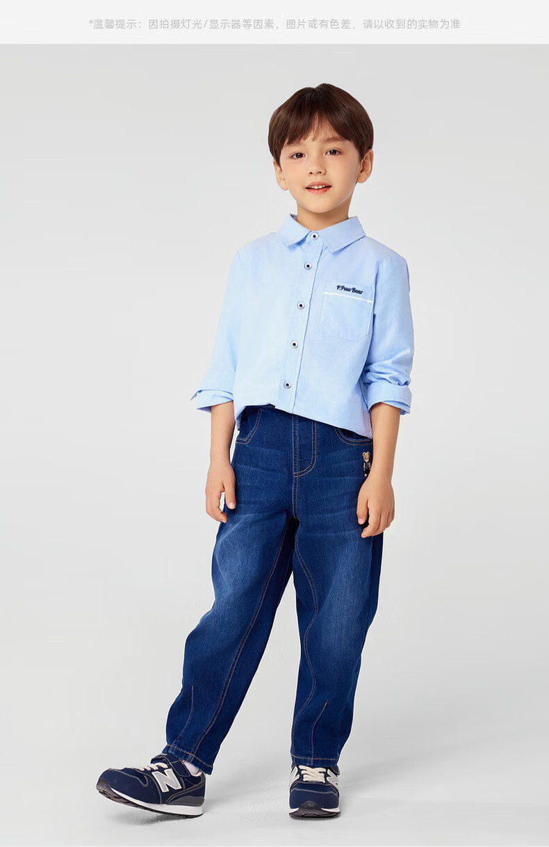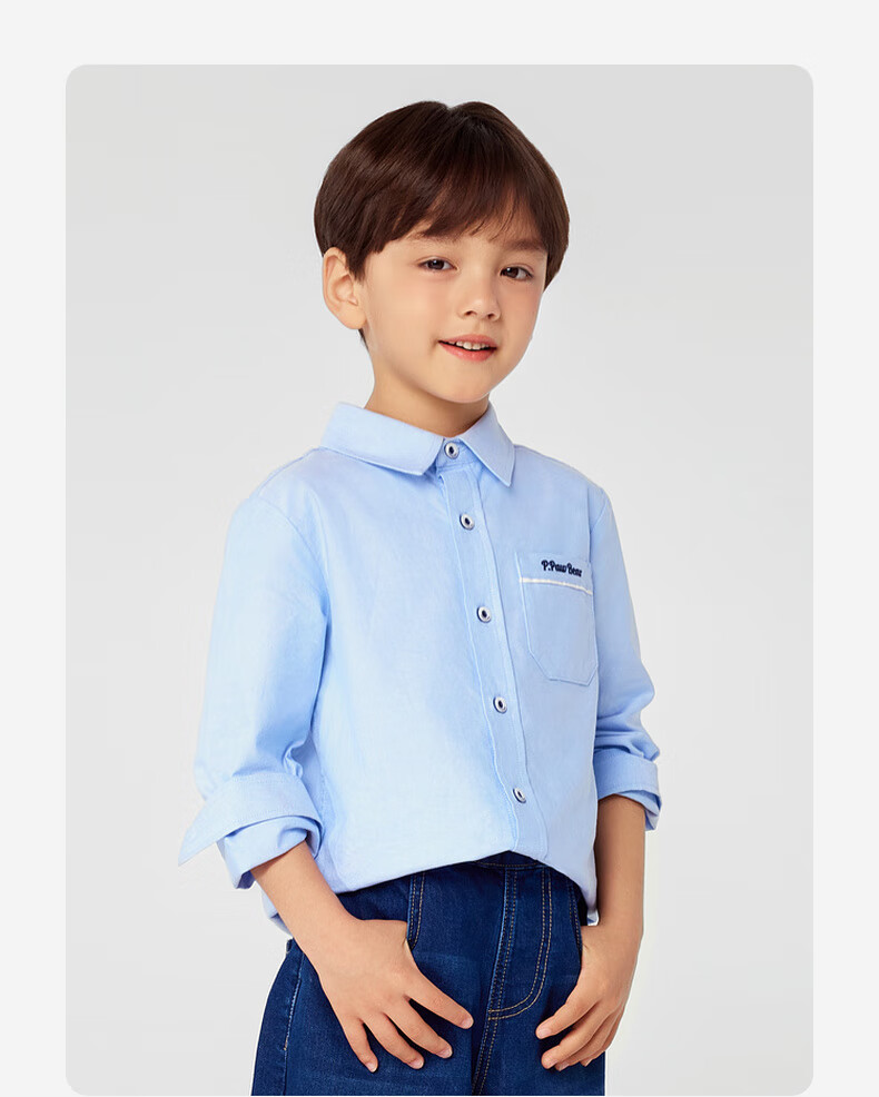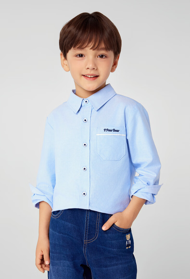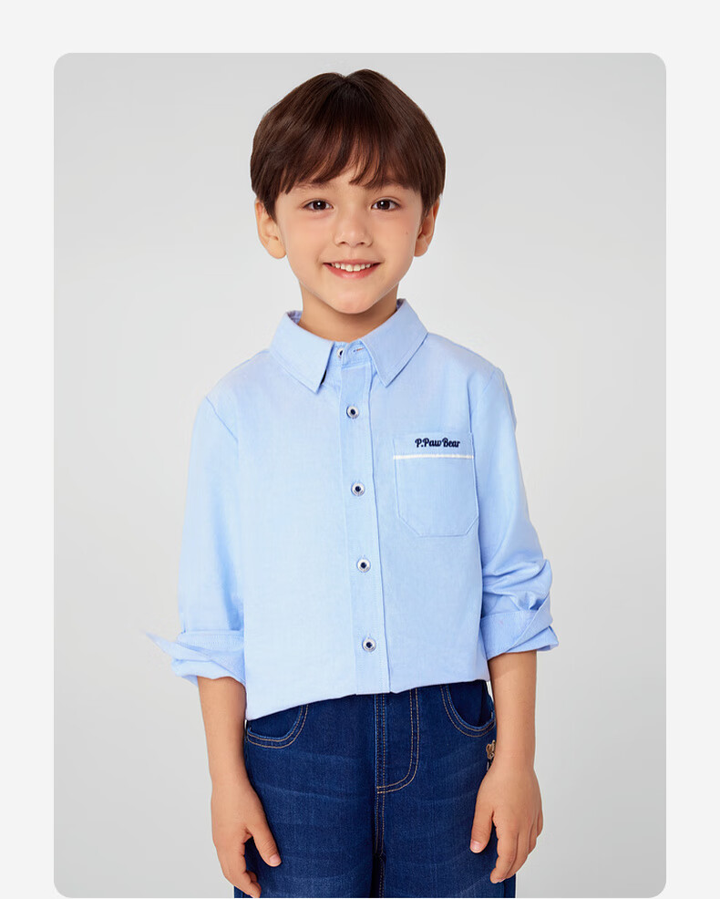PawinPaw Shopping Mall Bear Children's Clothing 25th Spring and Autumn New Boys' Shirt Pure Cotton Blue Blue/50 110