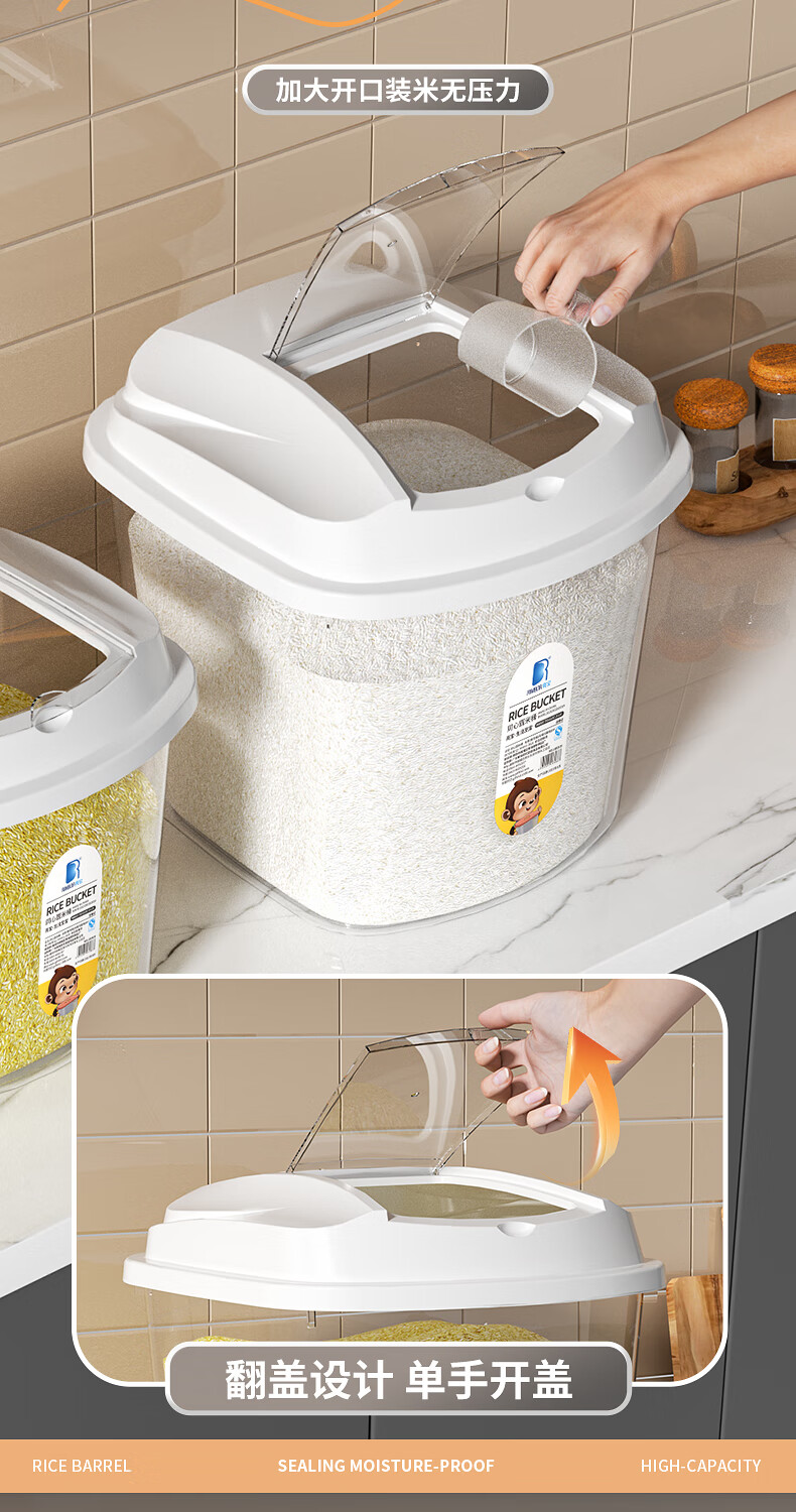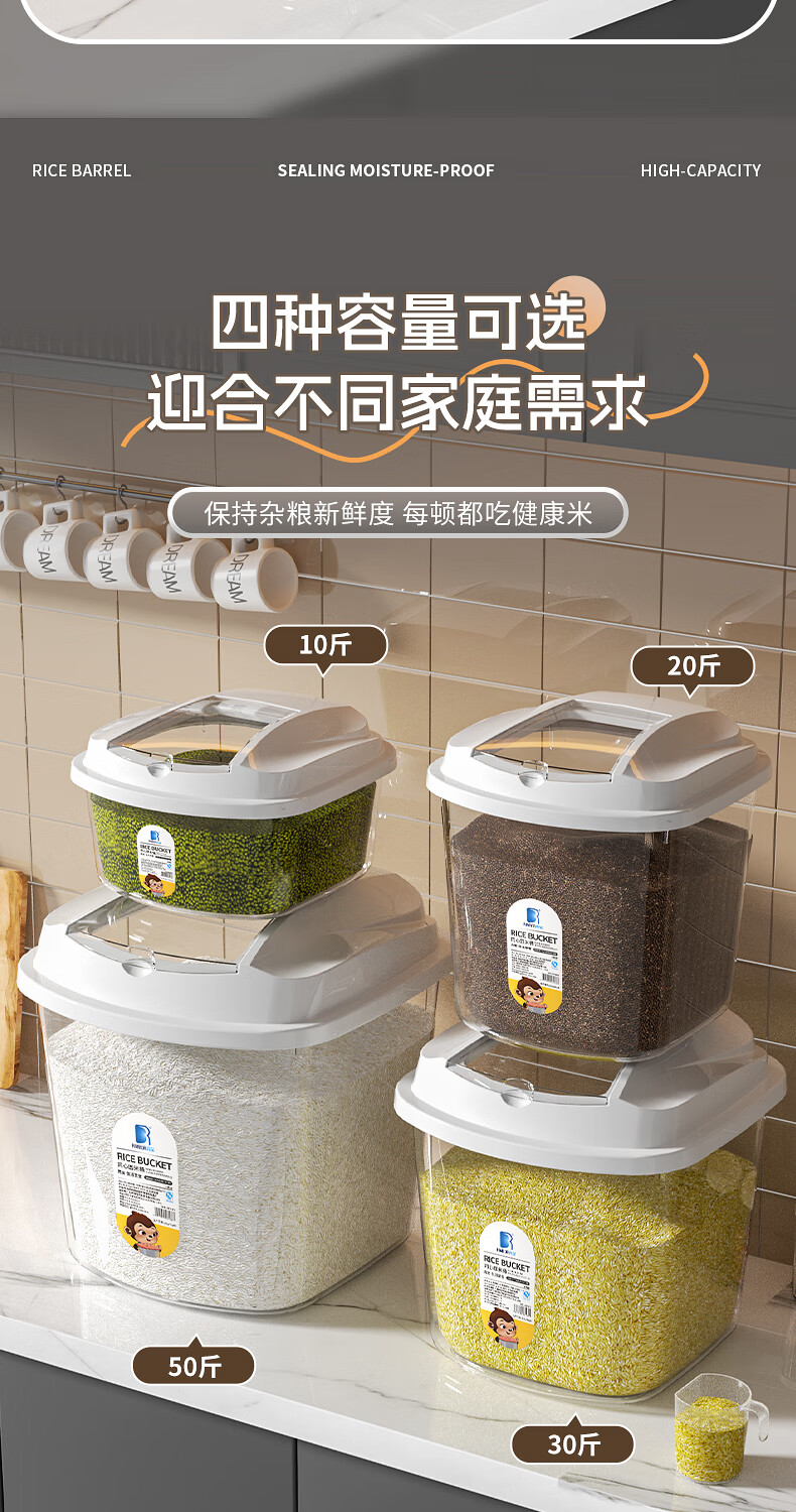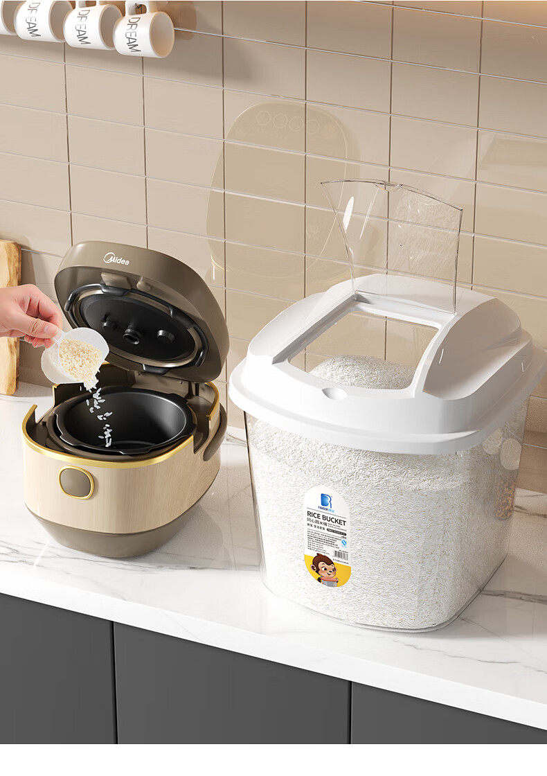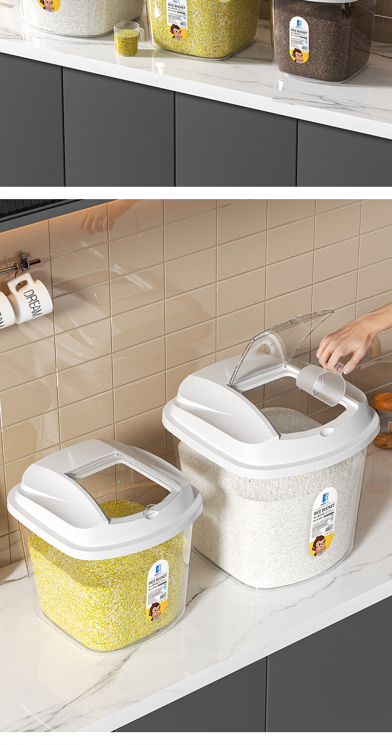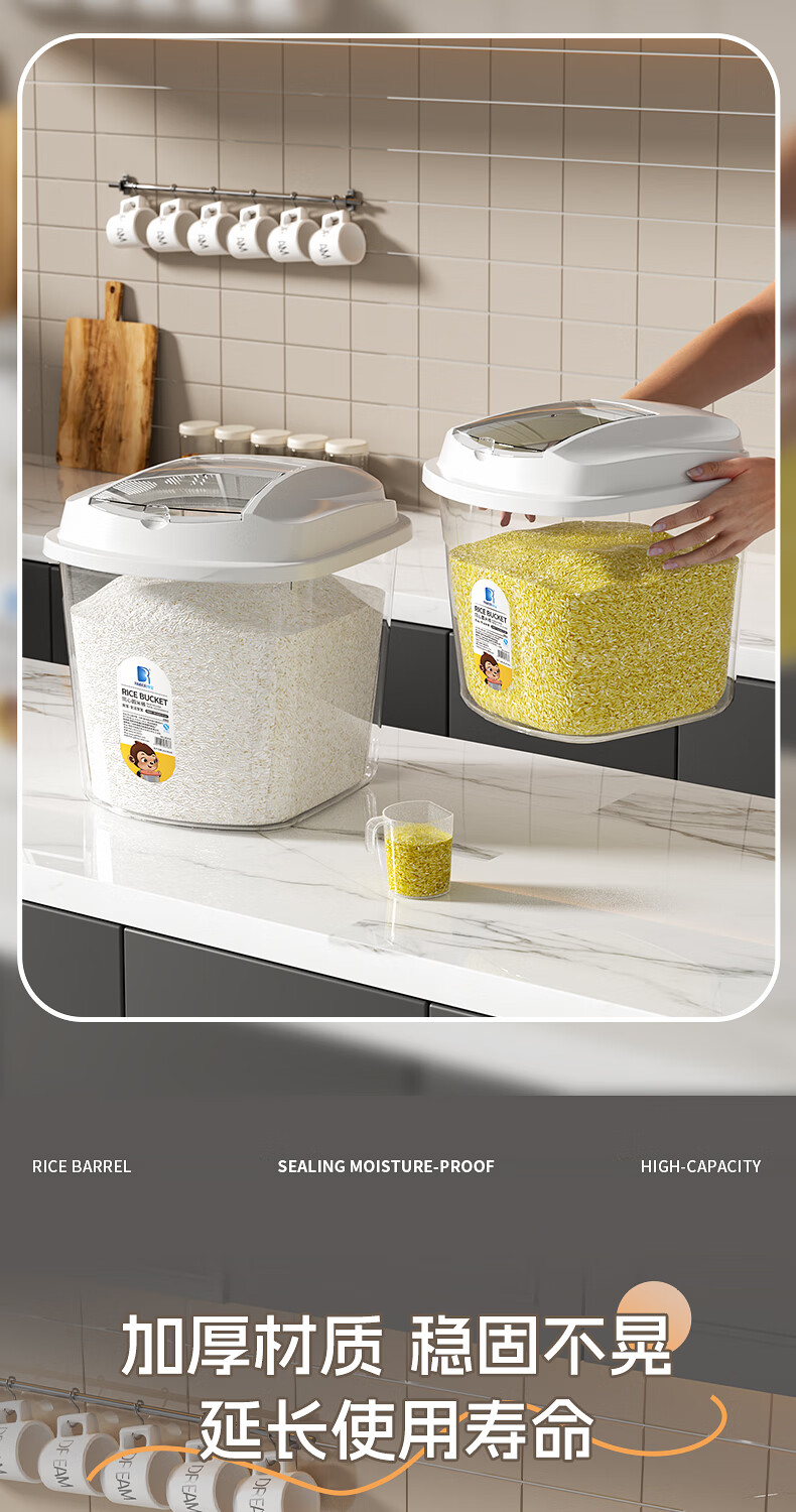Liangbao household rice bucket 50 Jin Jin equals 0.5 kg, thickened 30 Jin Jin equals 0.5 kg, moisture-proof and insect-proof sealed storage box 10 Jin Jin equals 0.5 kg, rice storage box rice tank flour, white blue lid - free rice scooping cup 10 Jin Jin equals 0.5 kg