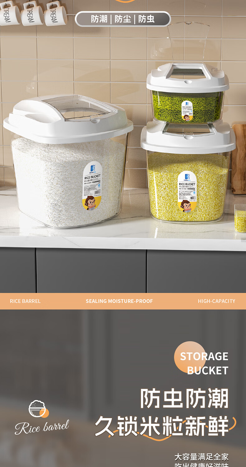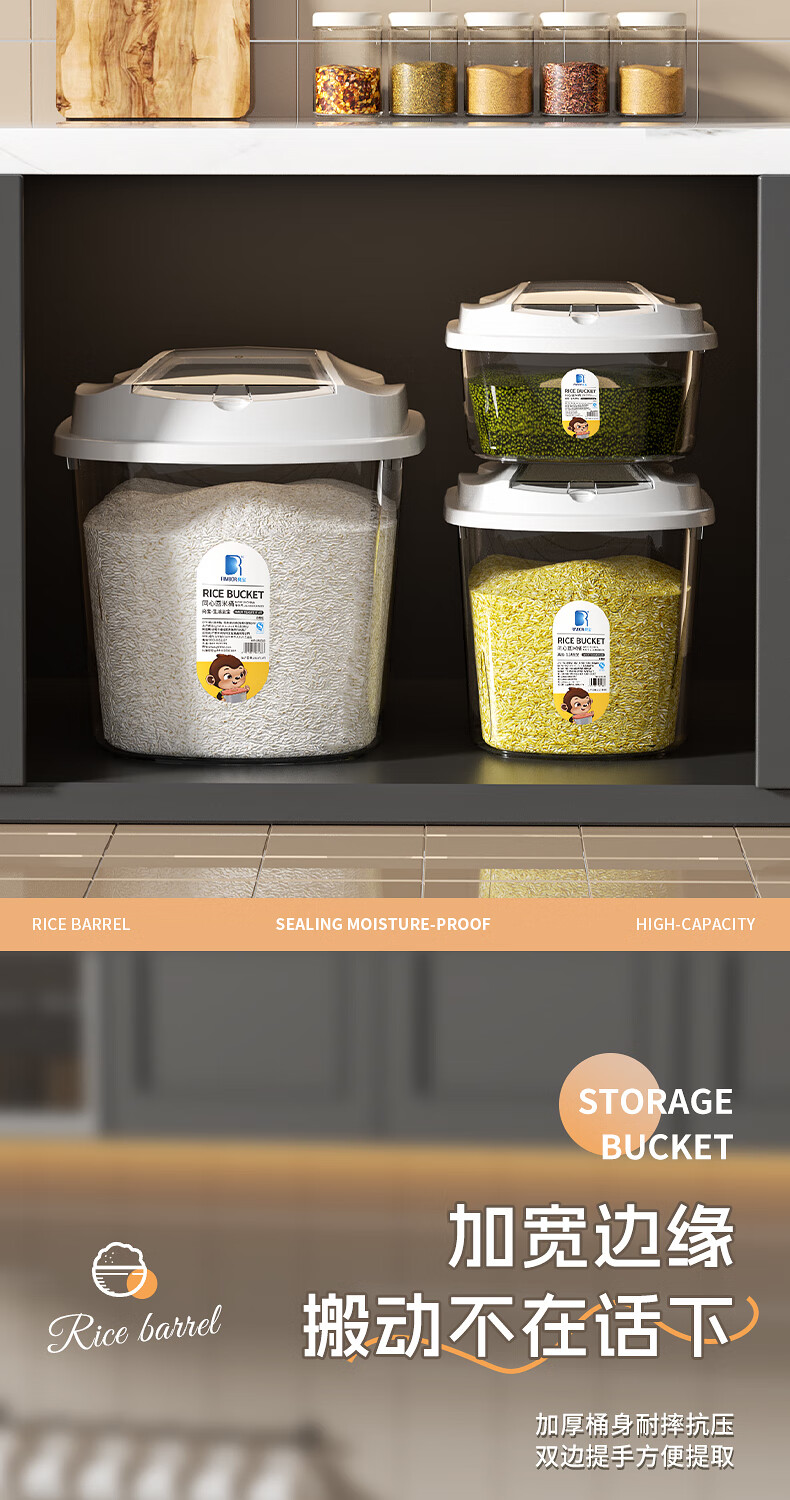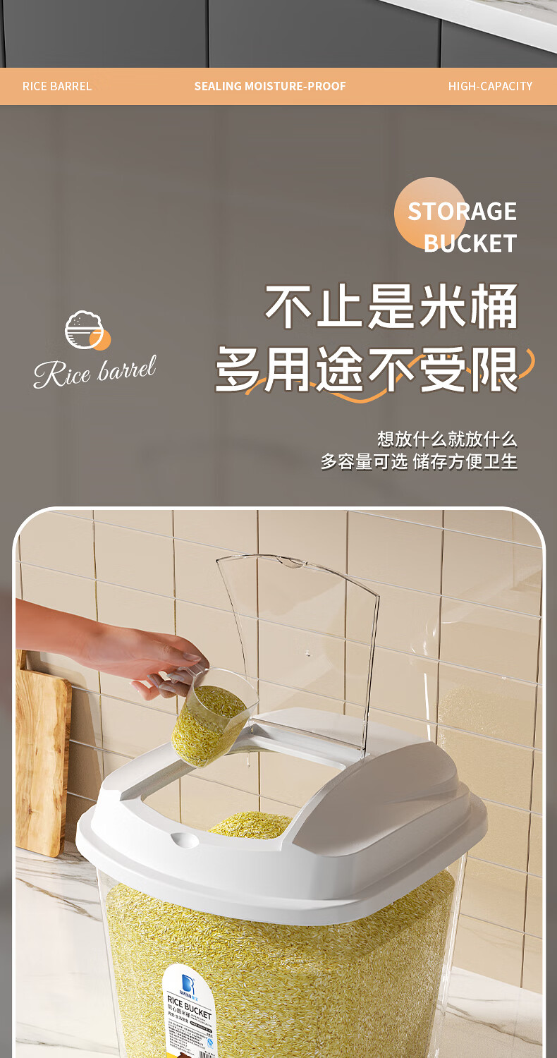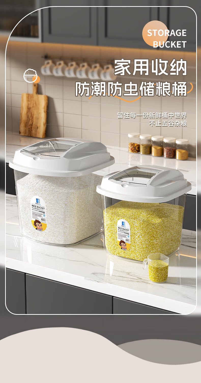 Liangbao household rice bucket 50 Jin Jin equals 0.5 kg, thickened 30 Jin Jin equals 0.5 kg, moisture-proof and insect-proof sealed storage box 10 Jin Jin equals 0.5 kg, rice storage box rice tank flour, white blue lid - free rice scooping cup 10 Jin Jin equals 0.5 kg