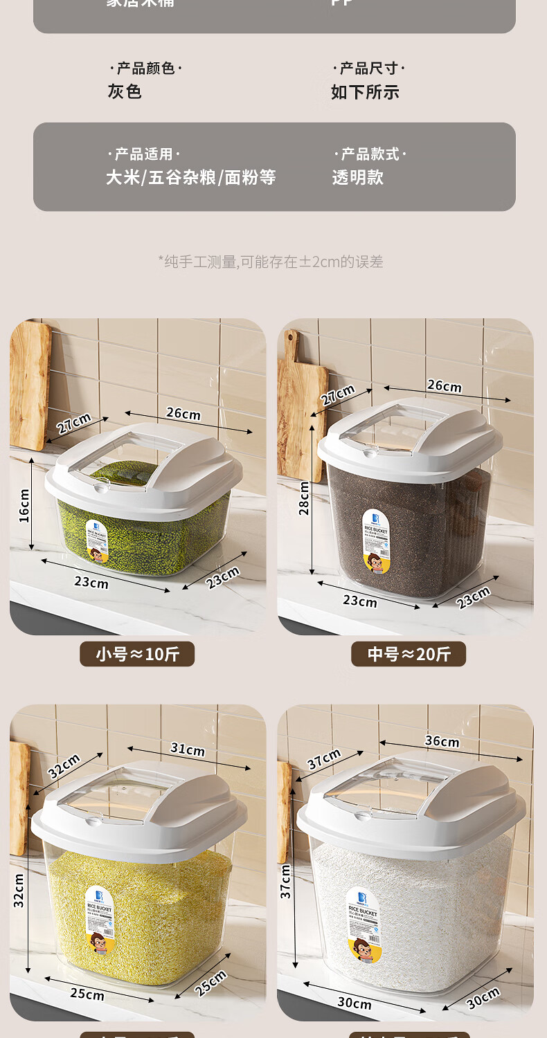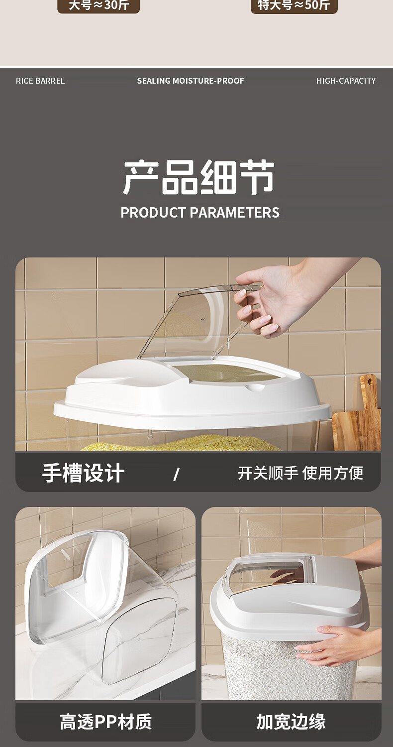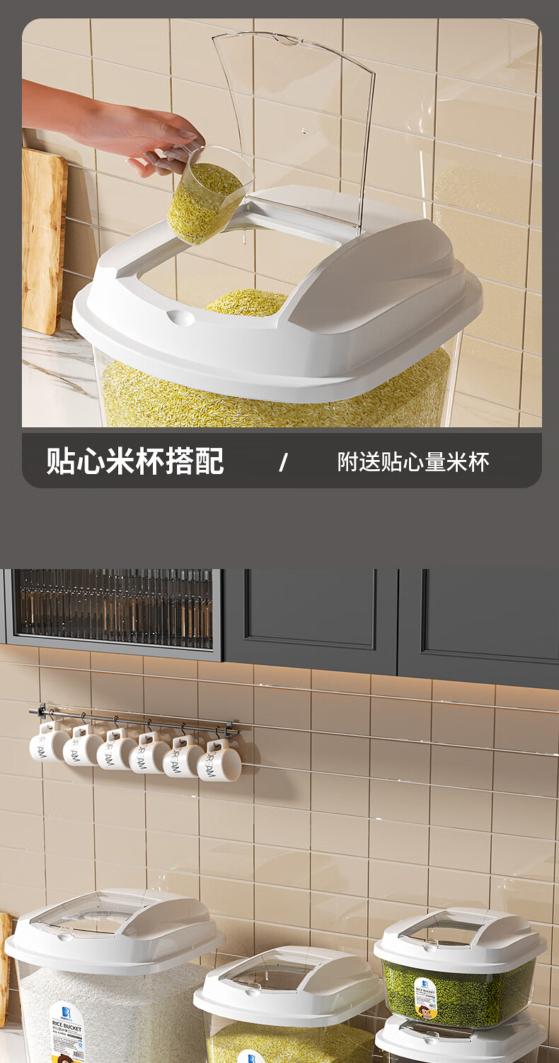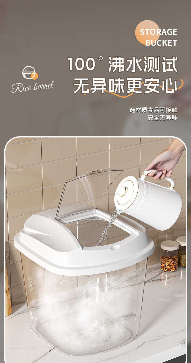 Liangbao household rice bucket 50 Jin Jin equals 0.5 kg, thickened 30 Jin Jin equals 0.5 kg, moisture-proof and insect-proof sealed storage box 10 Jin Jin equals 0.5 kg, rice storage box rice tank flour, white blue lid - free rice scooping cup 10 Jin Jin equals 0.5 kg