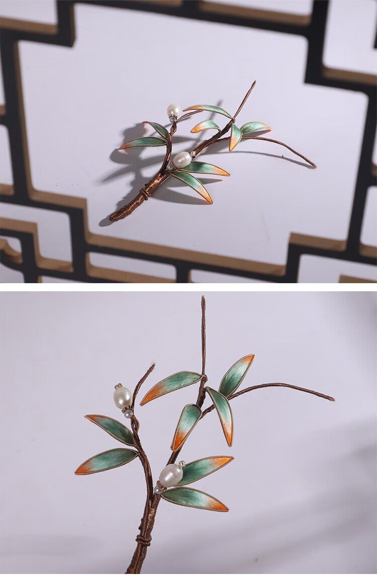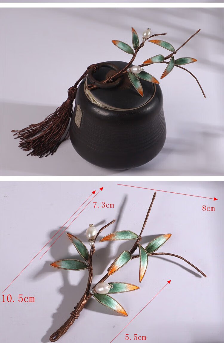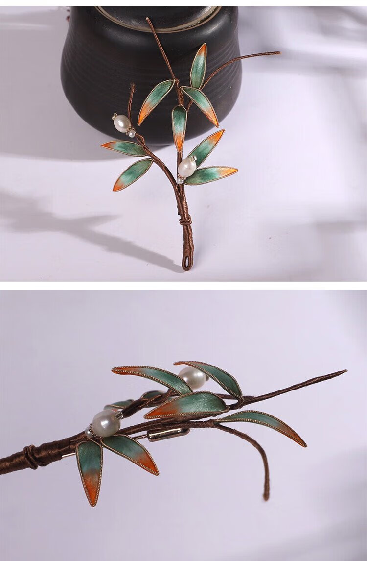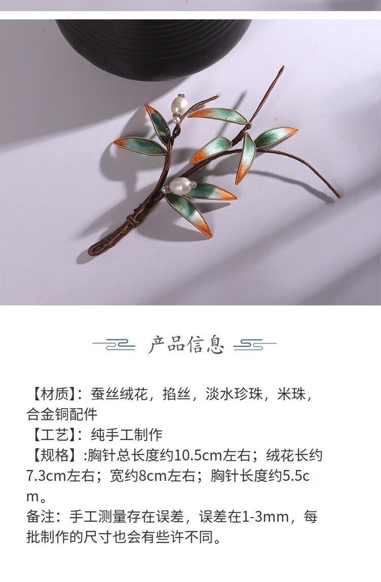 Sang Shang brooch Chinese style elegant bamboo leaf brooch silk cloisonné velvet flower new Chinese style daily wear simple niche jewelry green