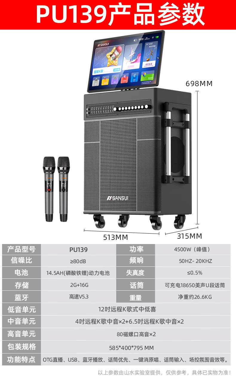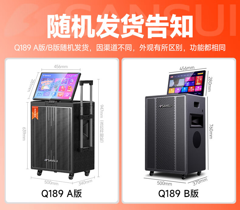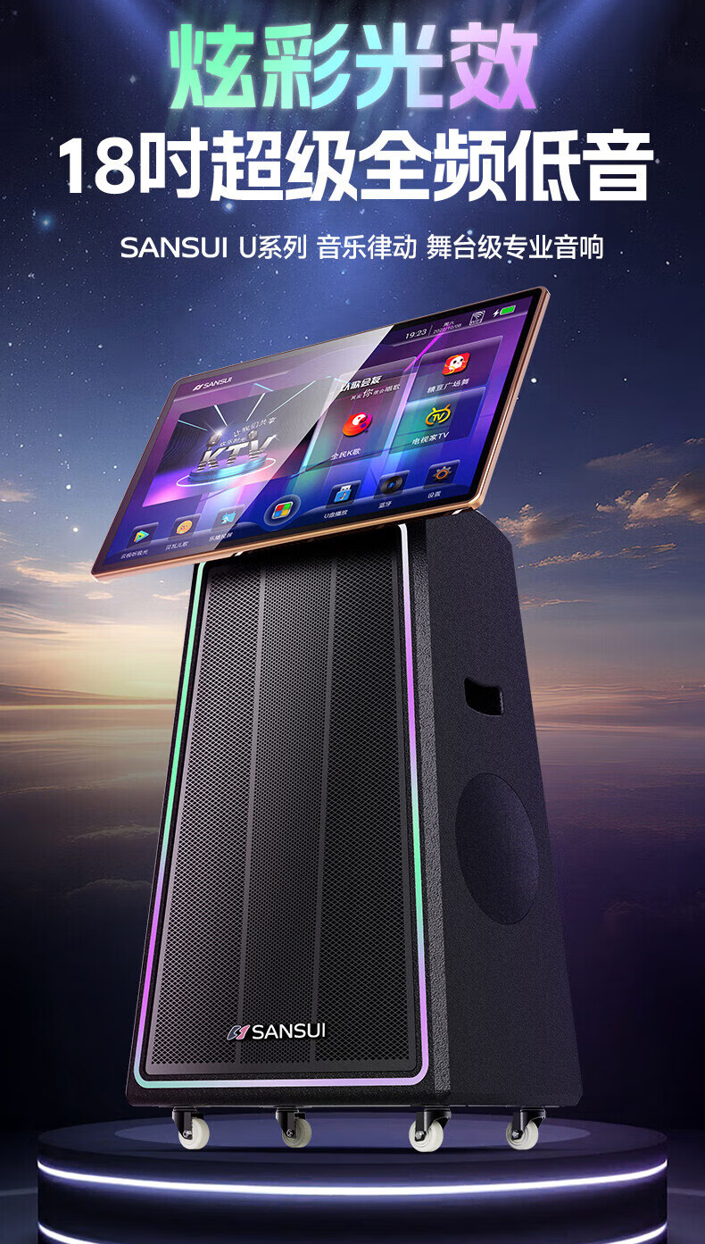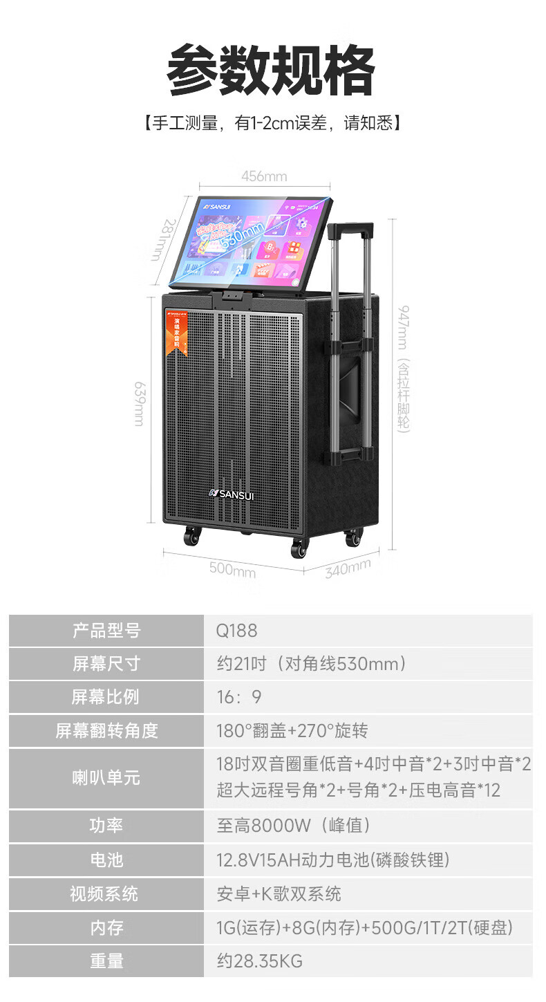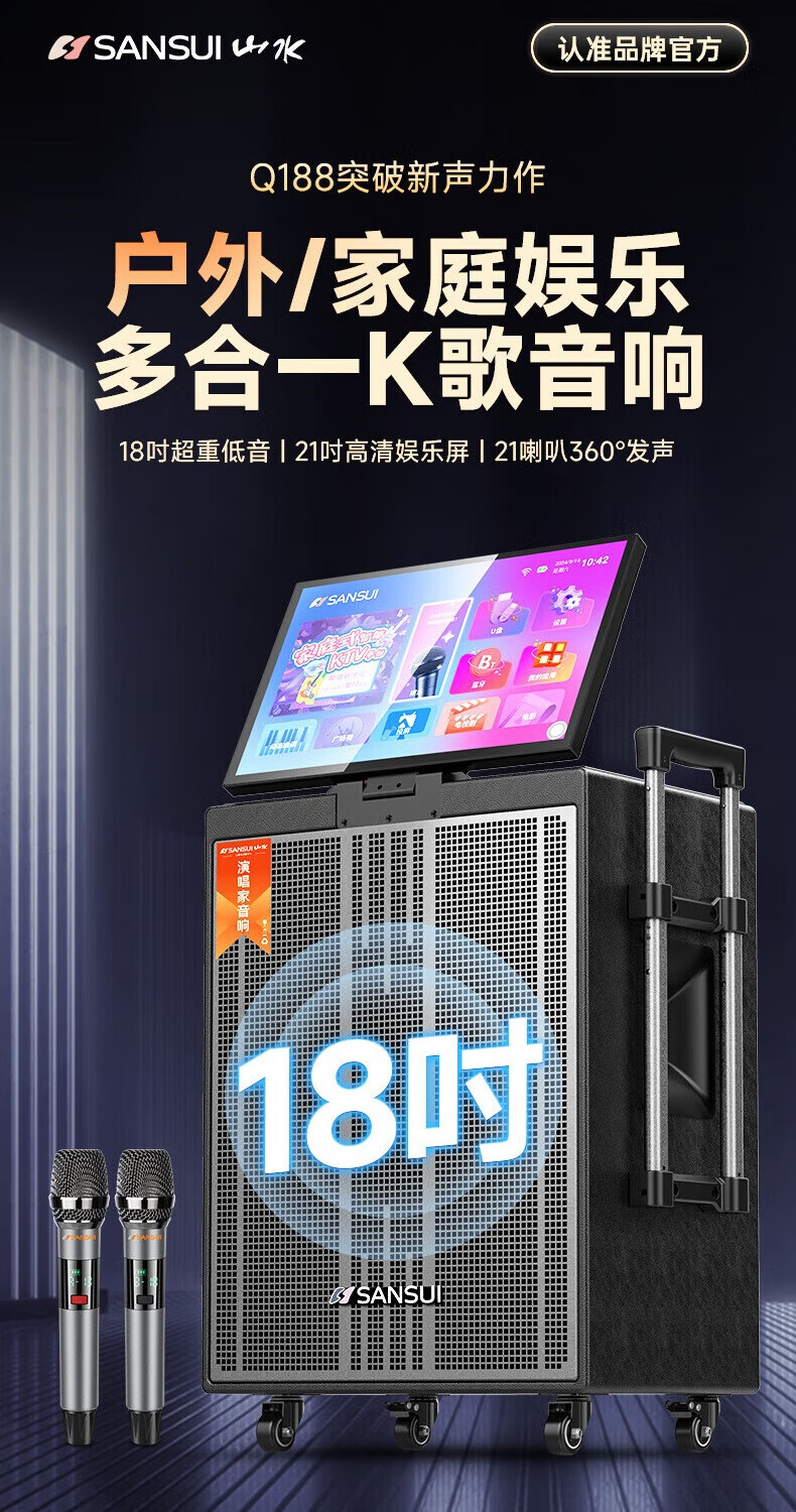 SANSUI Q188 square dance karaoke all-in-one audio Q189 outdoor audio high-power bass performance audio mobile speaker stage performance Bluetooth karaoke singing speaker Q189+18-inch+21-inch screen+500G+free three-year membership