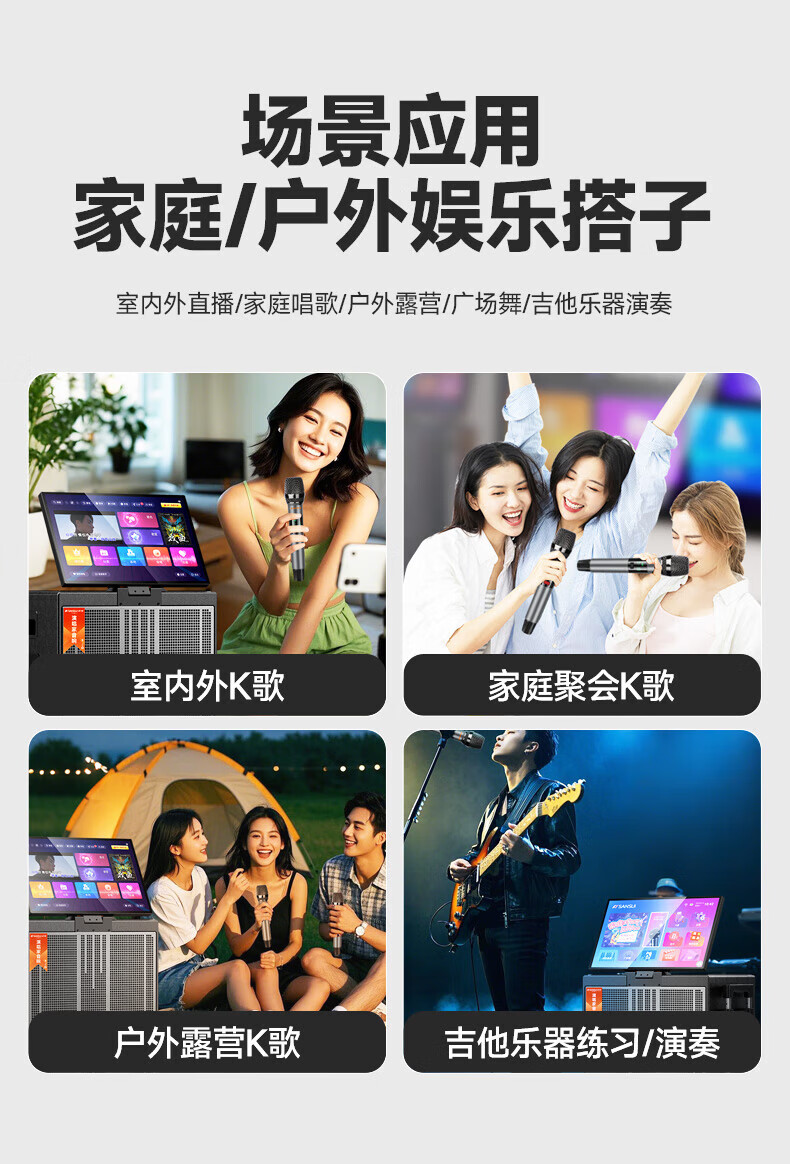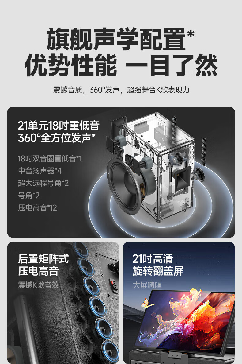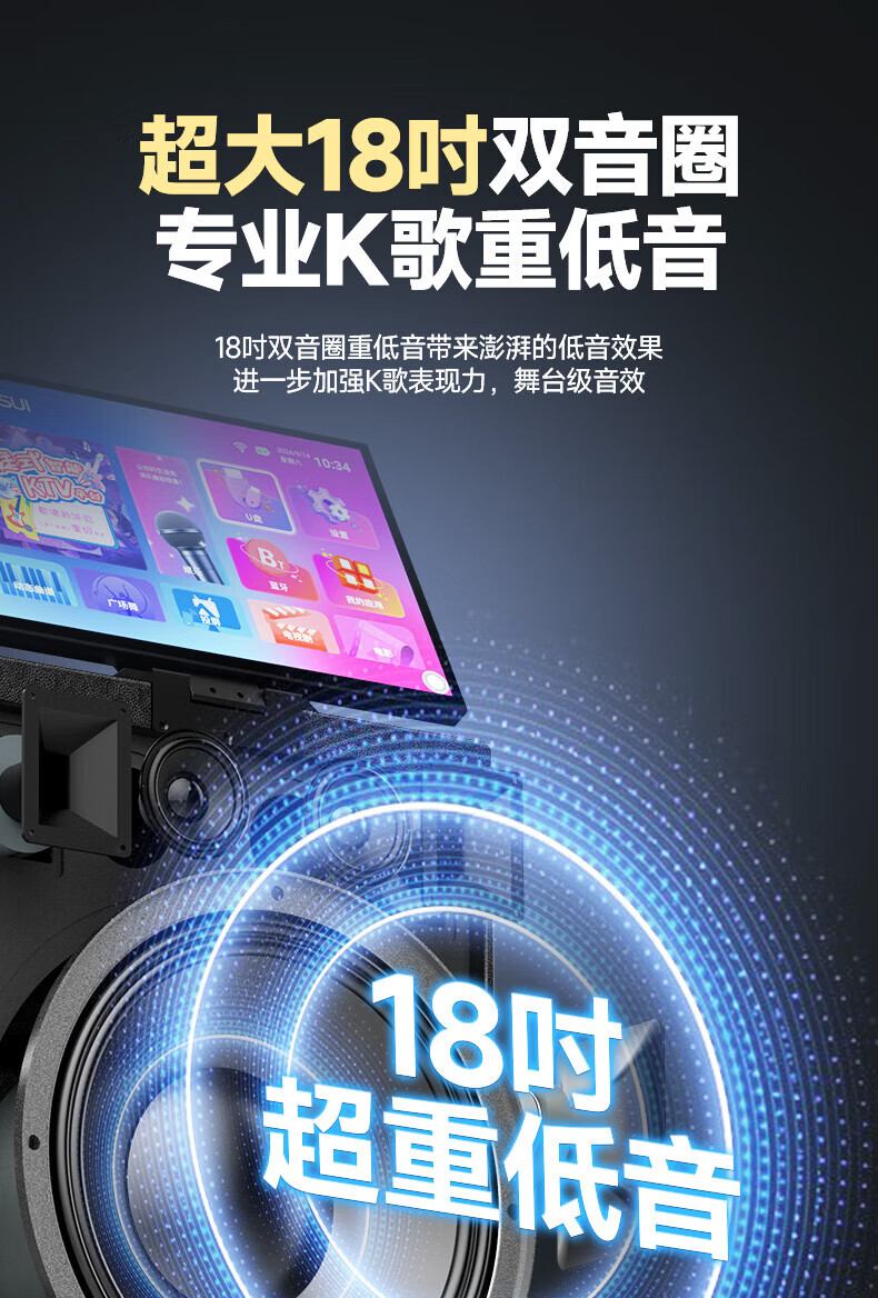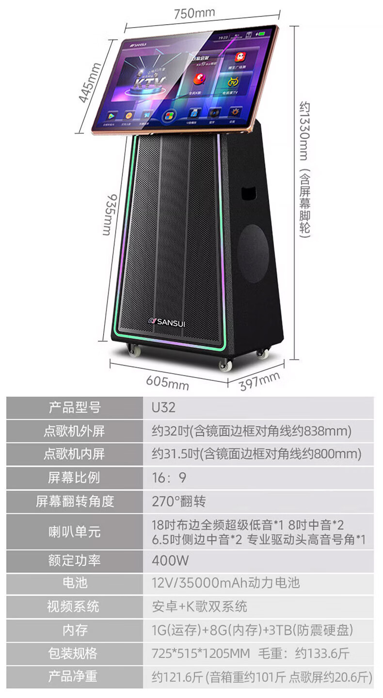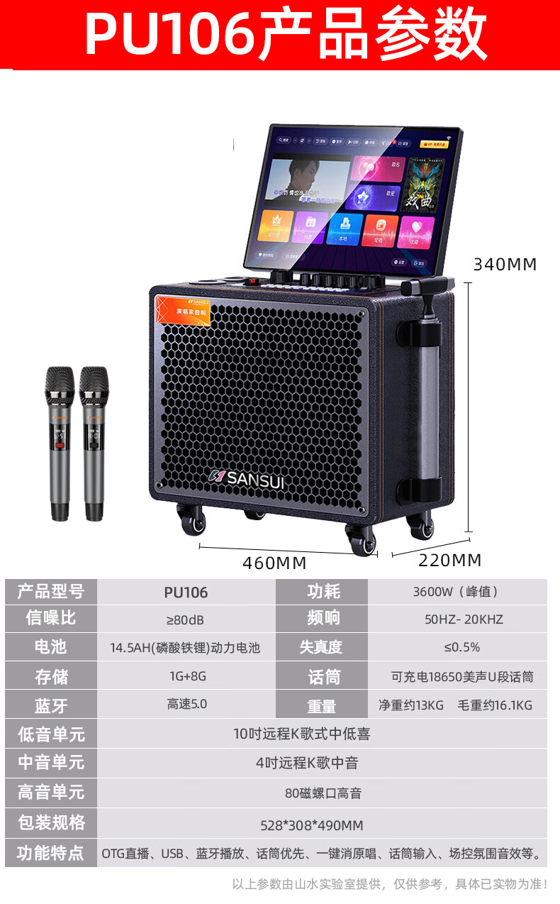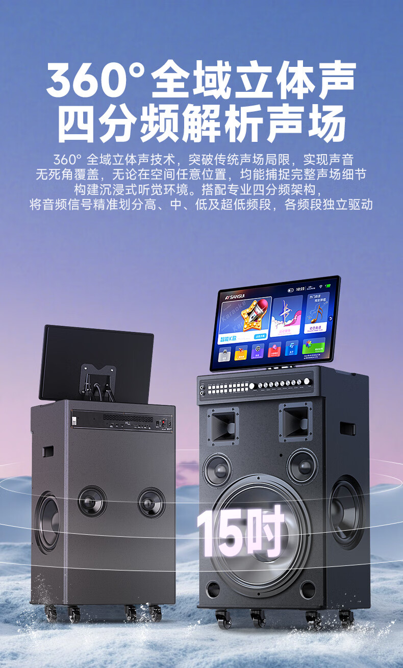 SANSUI Q188 square dance karaoke all-in-one audio Q189 outdoor audio high-power bass performance audio mobile speaker stage performance Bluetooth karaoke singing speaker Q189+18-inch+21-inch screen+500G+free three-year membership