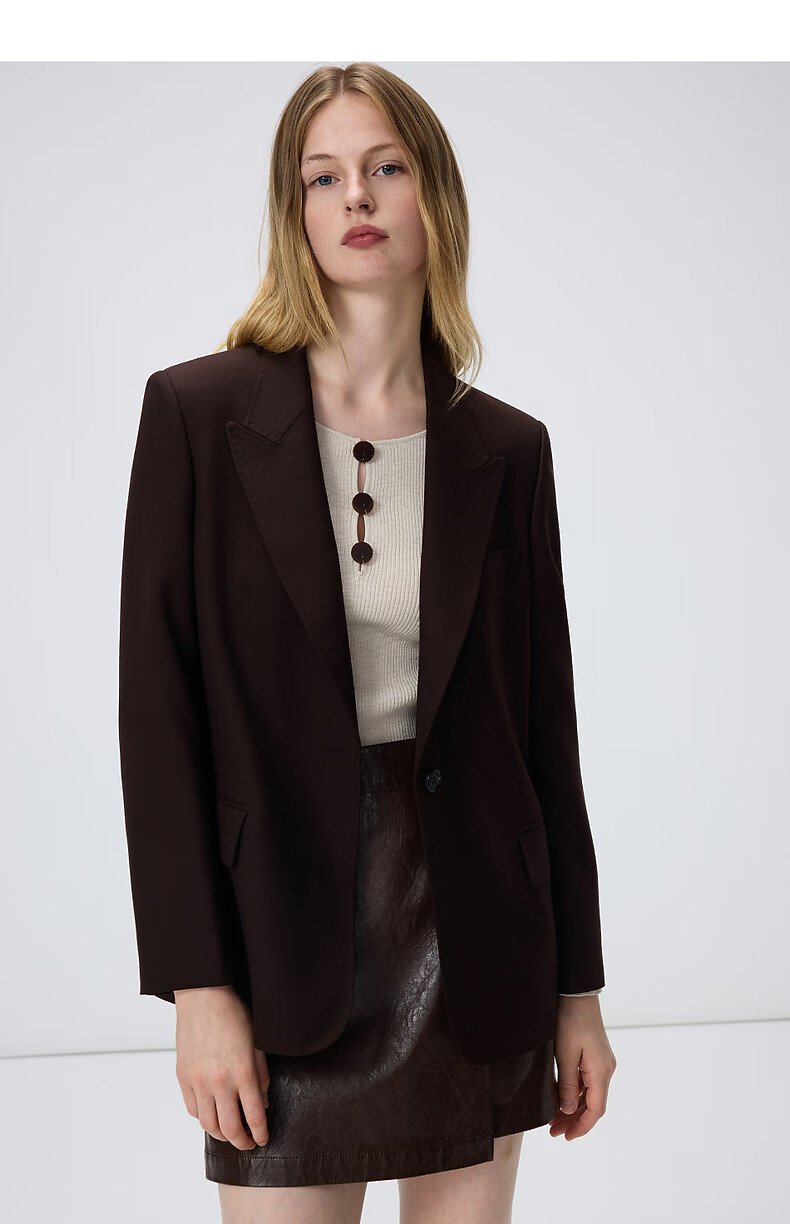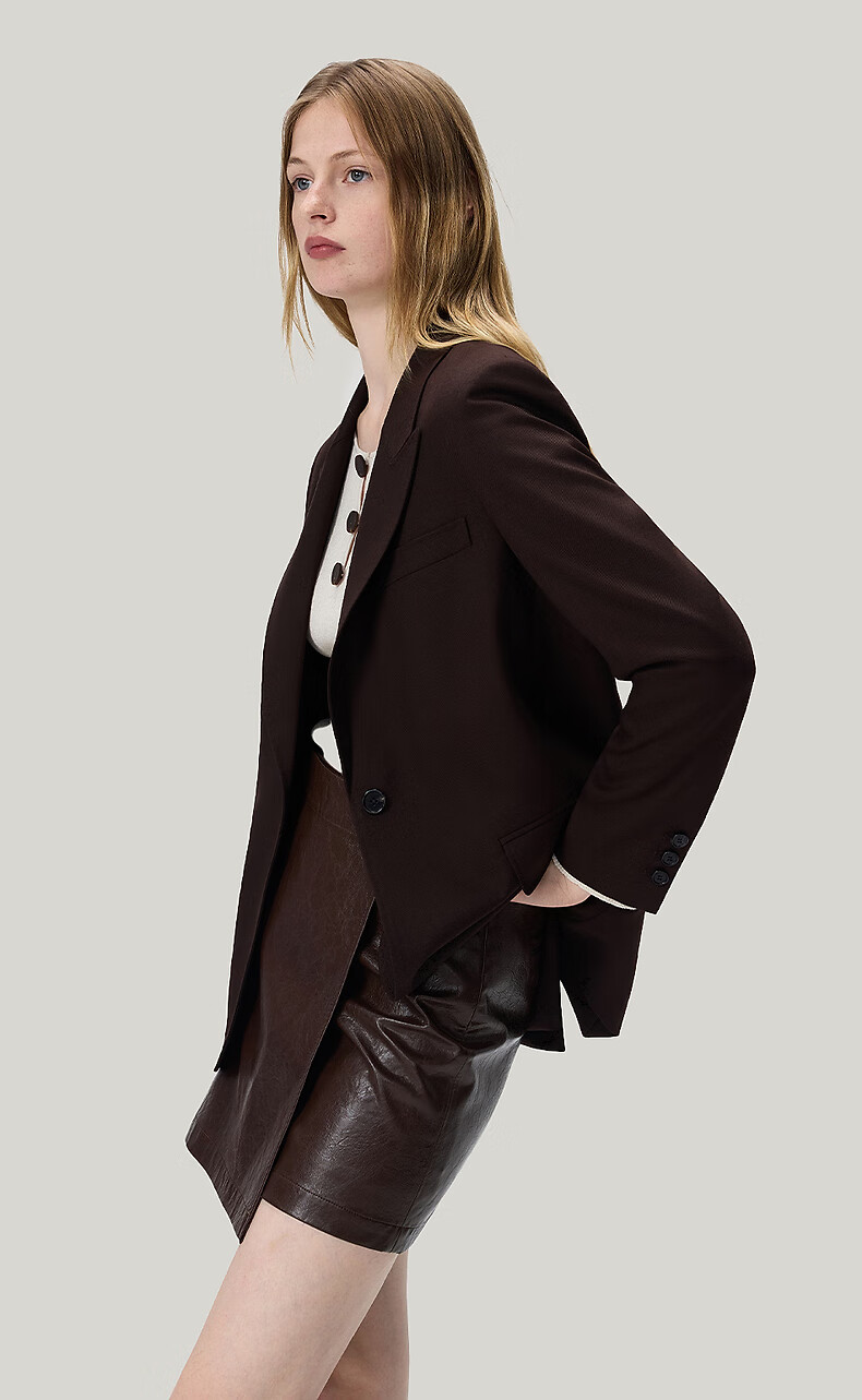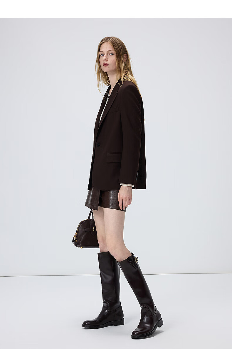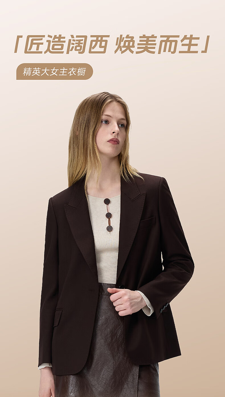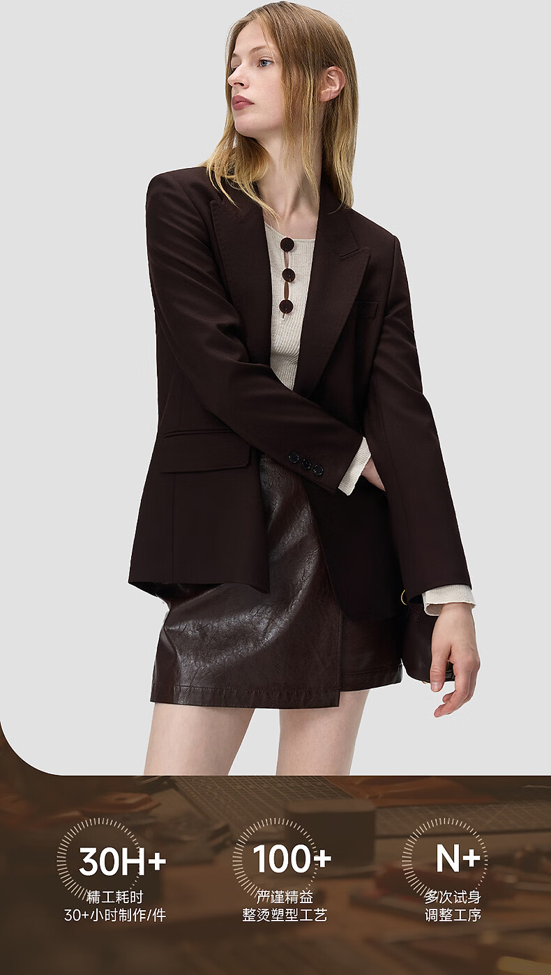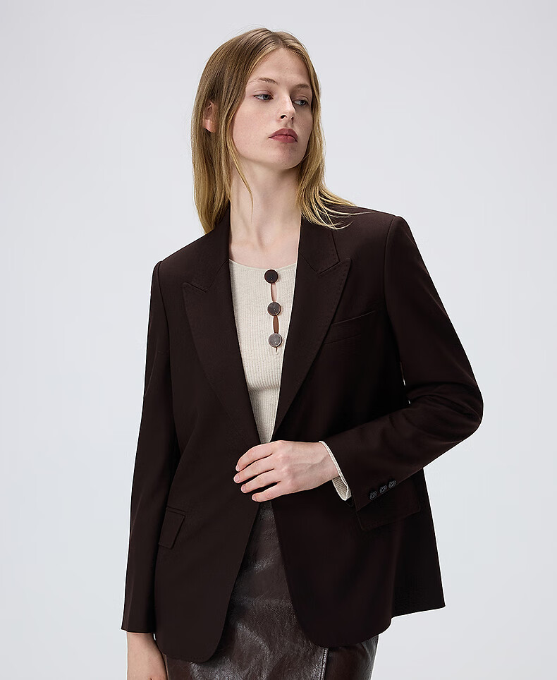 Langzi Elite Wardrobe Wool Gaozhi Suit Commuting Chic Suit Jacket High-end 26th Spring New Style Dark Brown S