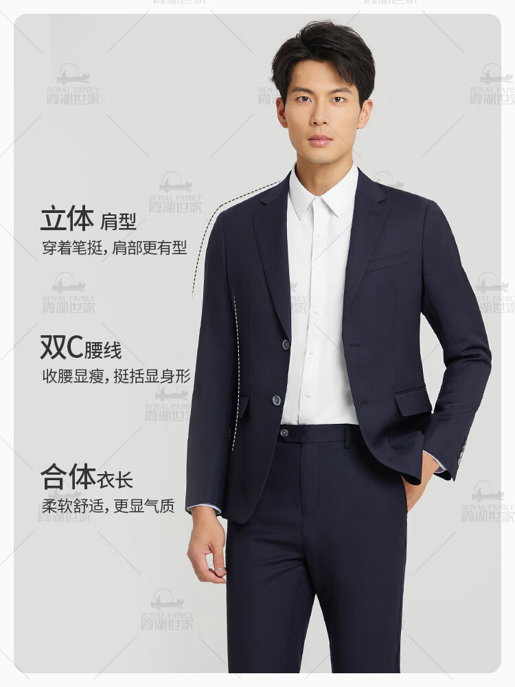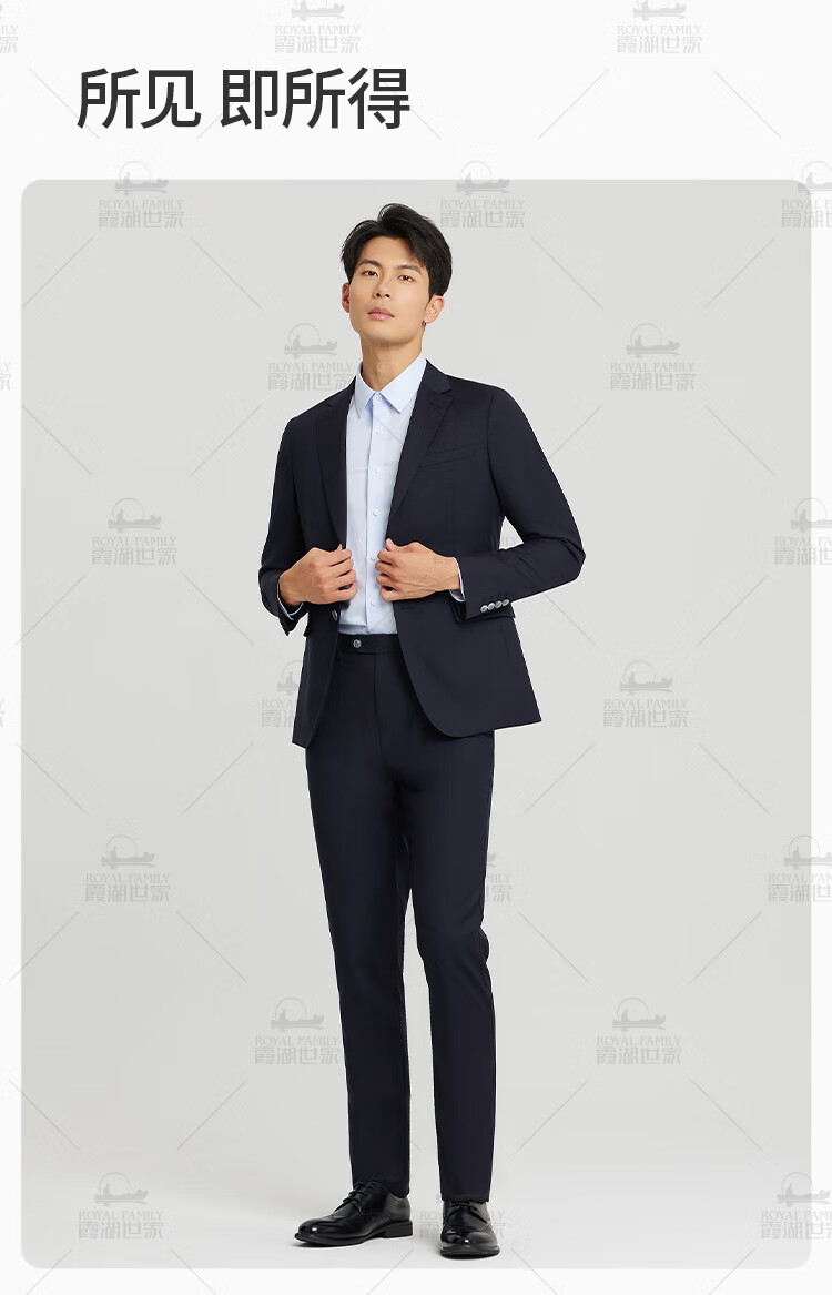 Xiahu Shijia Autumn and Winter New Style Sheep Wool Suit Business Casual Suit Suit X039 Blue Black 52 C (Height 180-189, Weight 170-179 Jin Jin equals 0.5 kg)