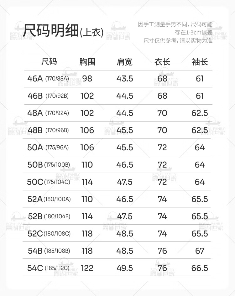 China (cm) 160-165/84-86 165-170 / 88-90 167-172 / 92-96 168-173 / 98-102 170-176 / 106-110